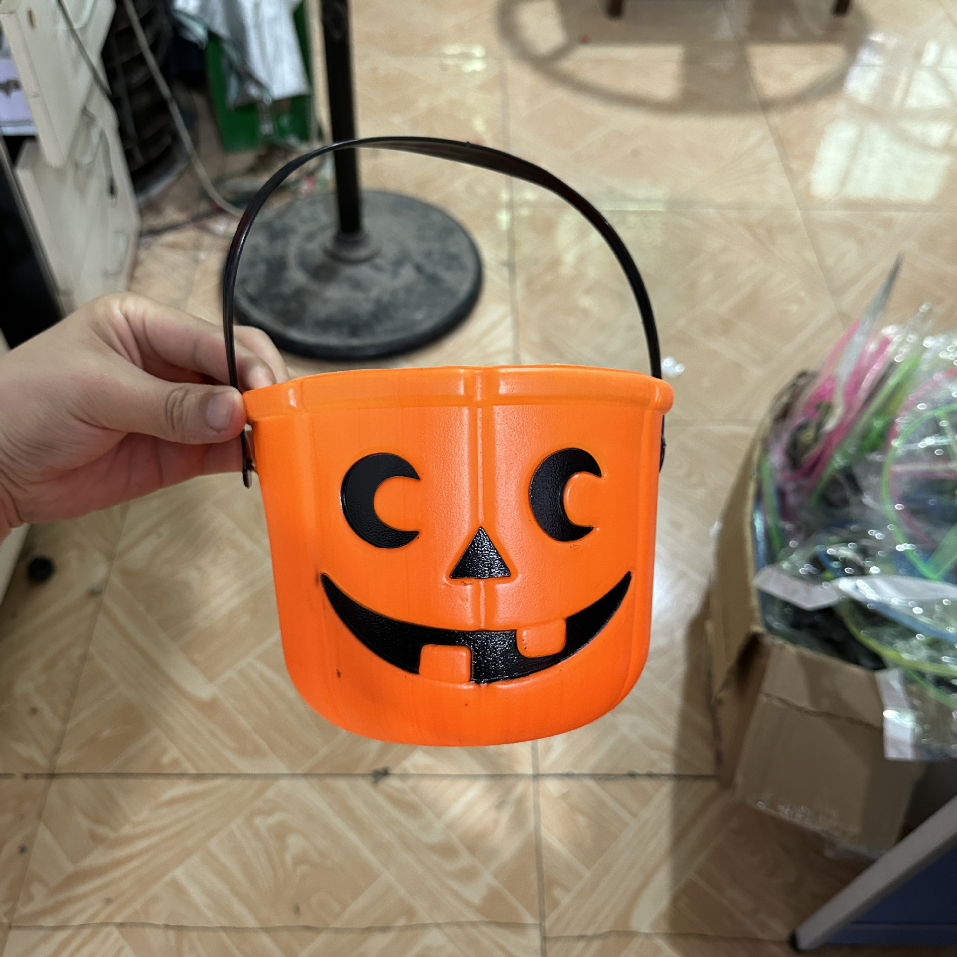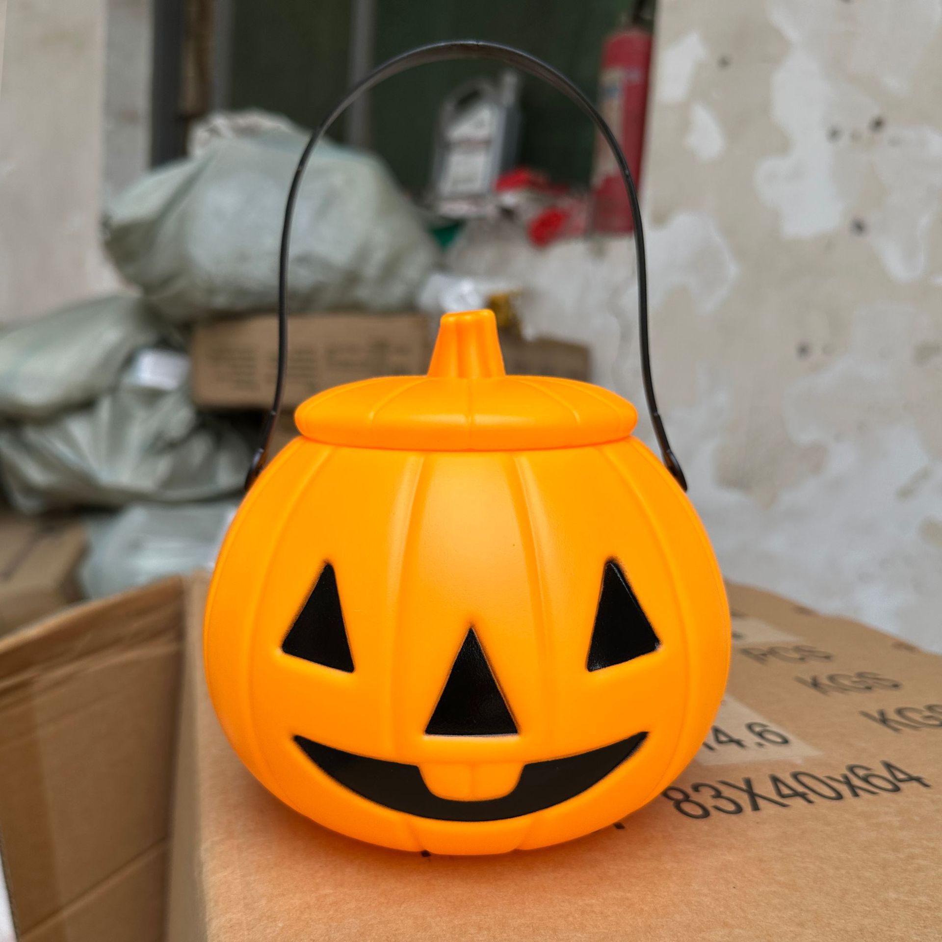 厂家直销万圣节南瓜灯 带盖南瓜桶 儿童手提糖果罐幼儿园装饰用品