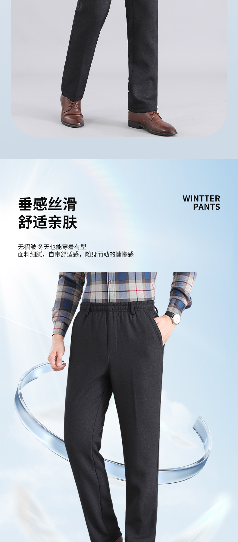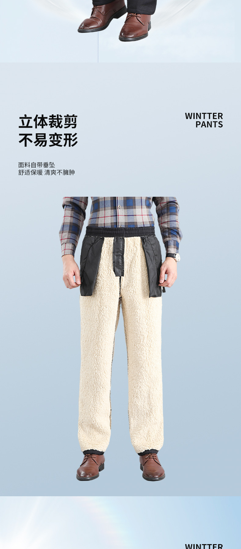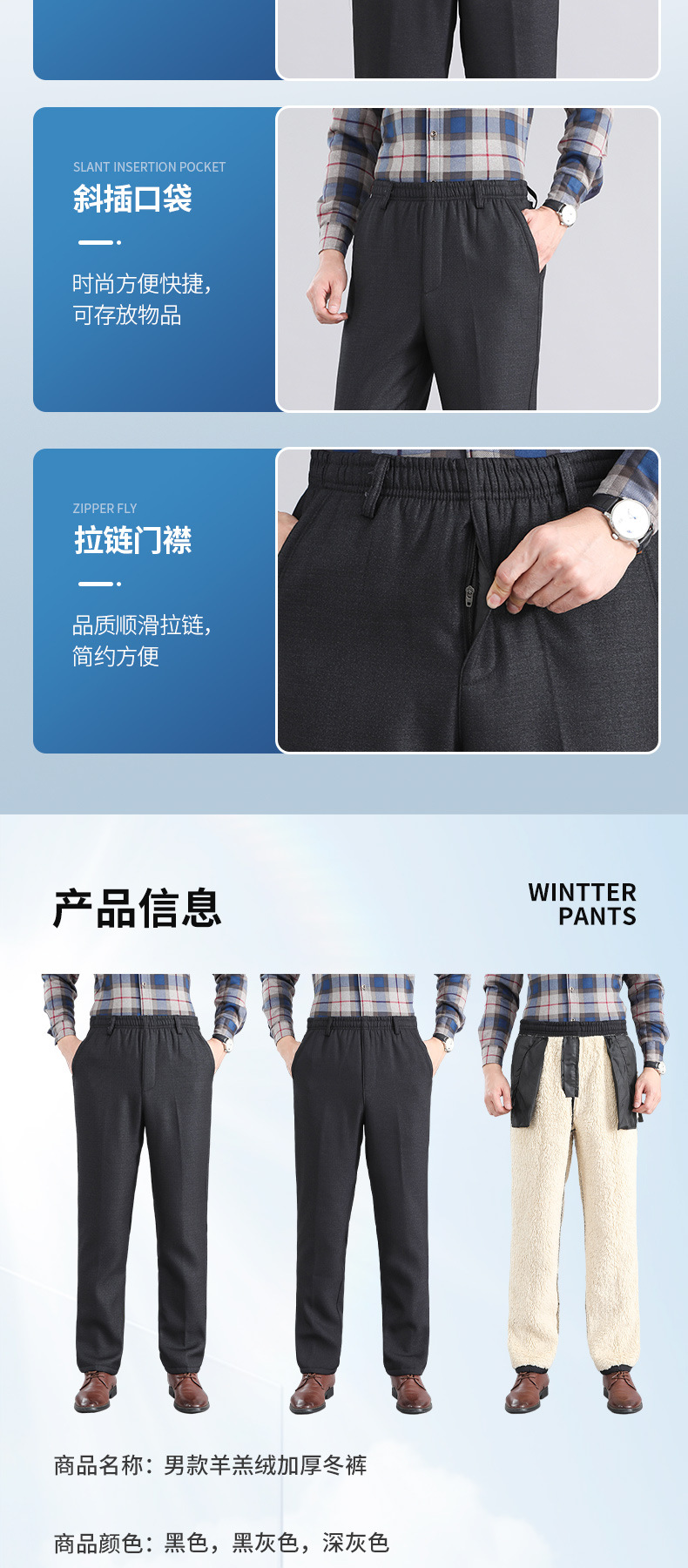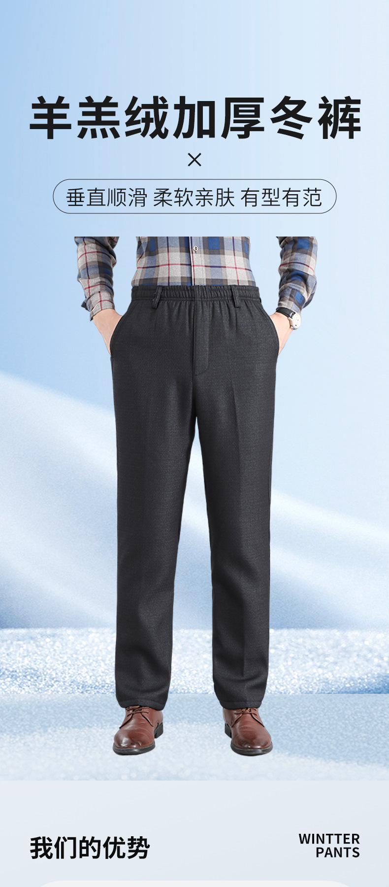 男士直筒休闲裤冬季加绒裤子羊羔绒保暖加厚简约男棉裤冬裤百搭