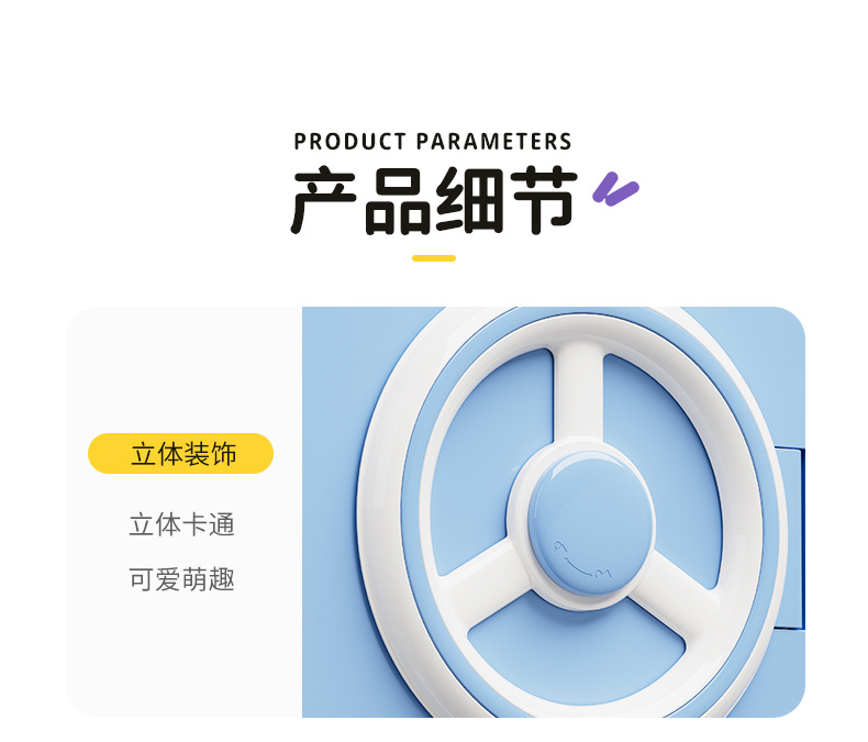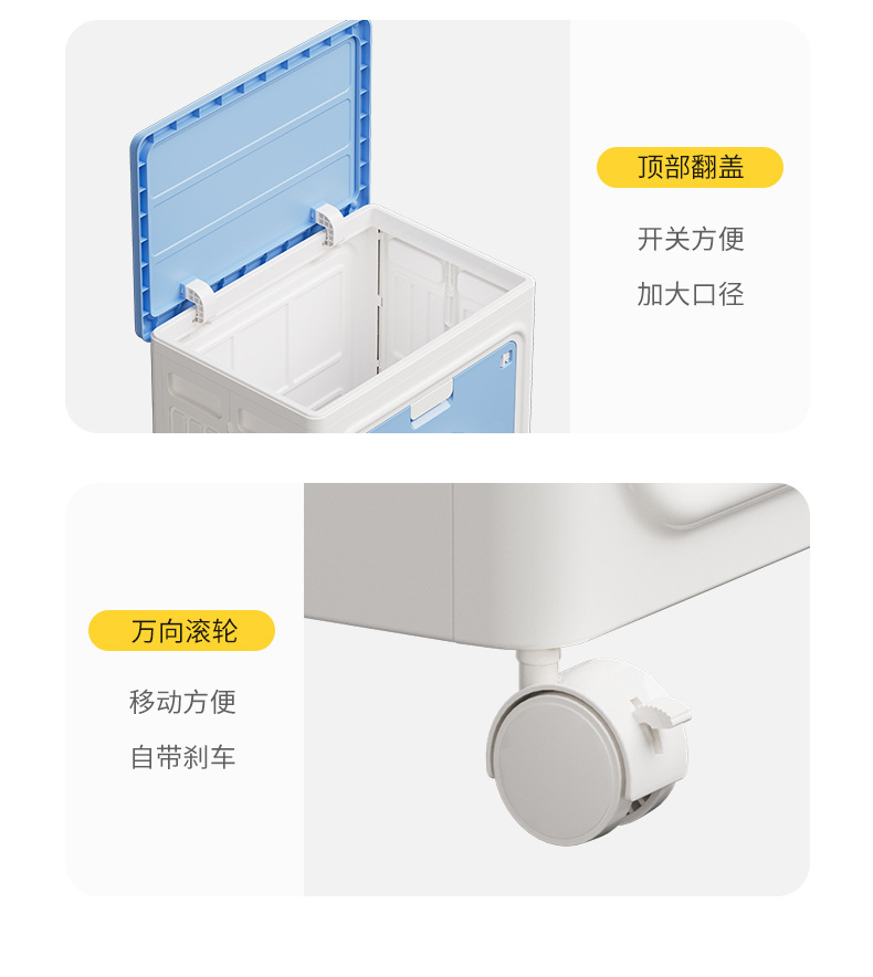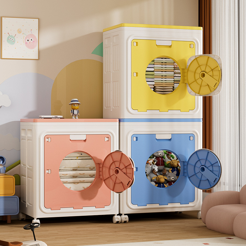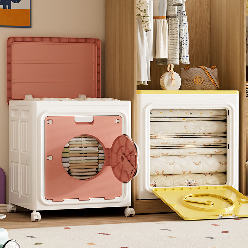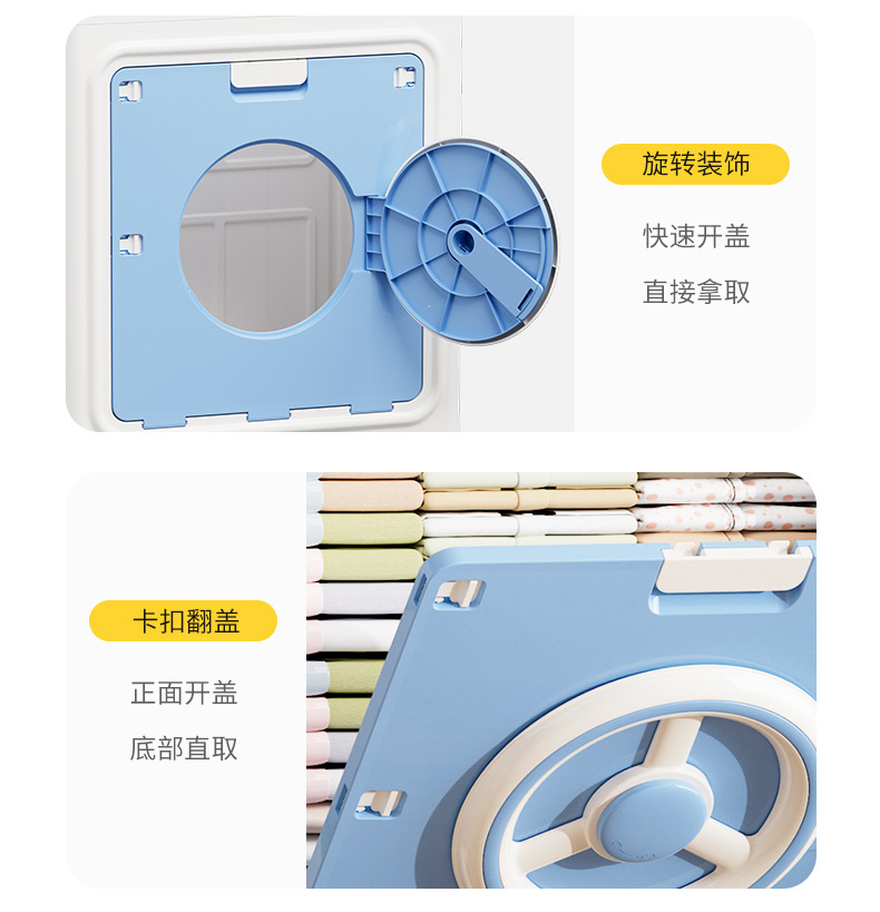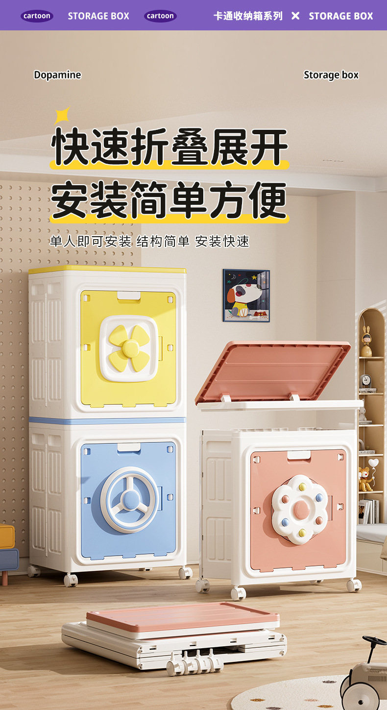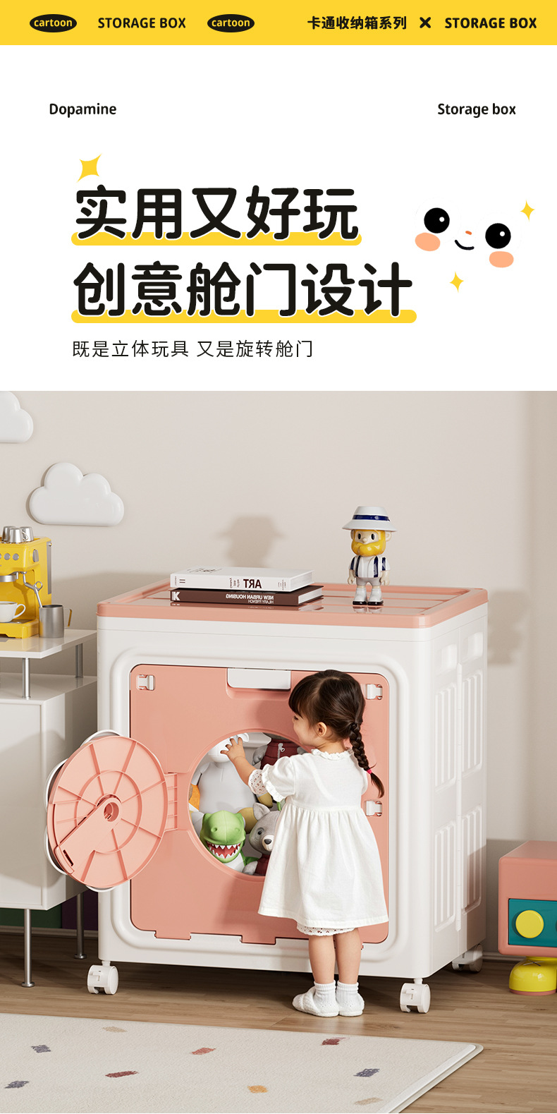 可爱卡通收纳箱正面锁扣开盖可叠加使用底部带轮方便移动超大收纳