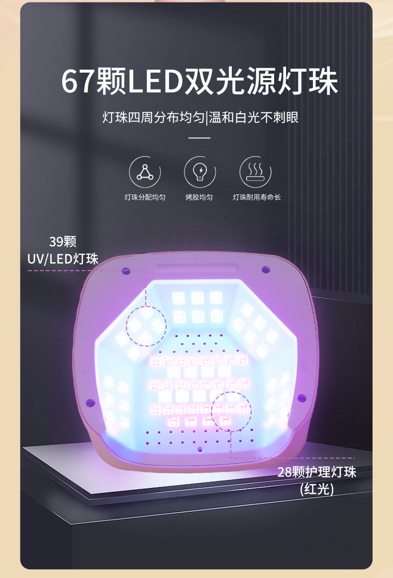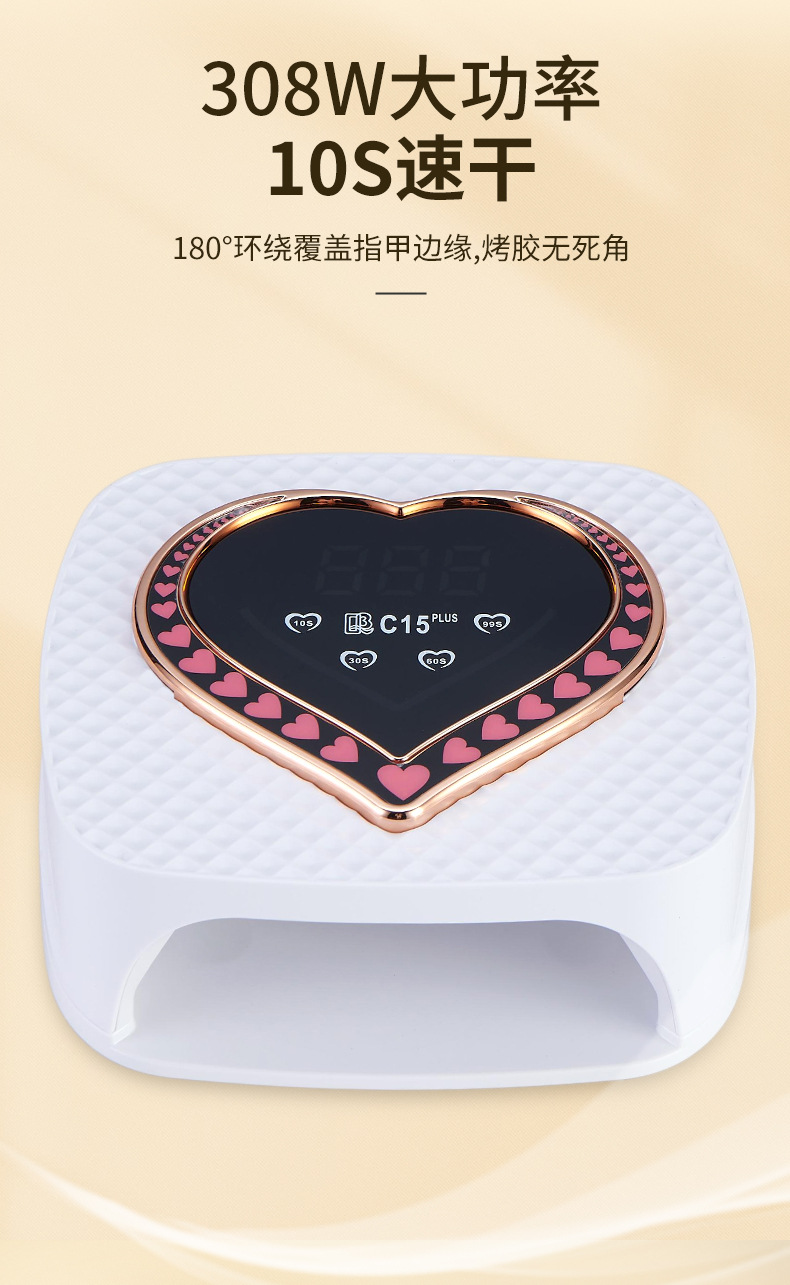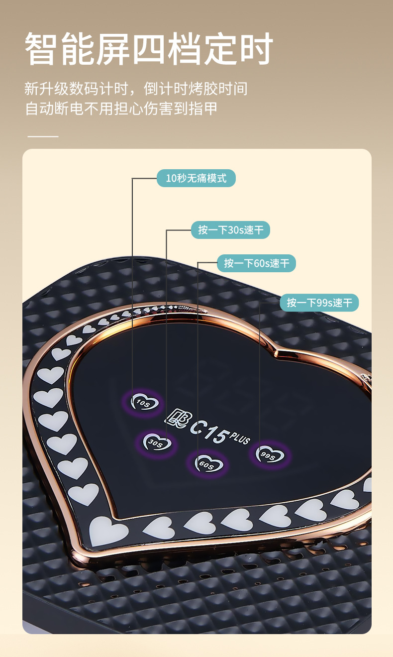方形C15plus美甲灯七彩流线大功率快干UV甲油胶烘甲器多灯珠