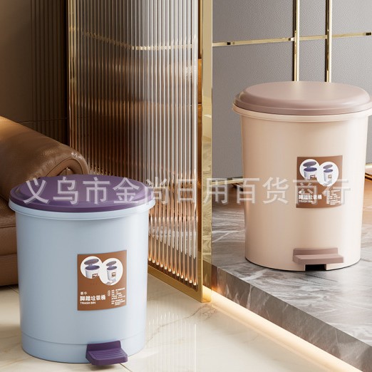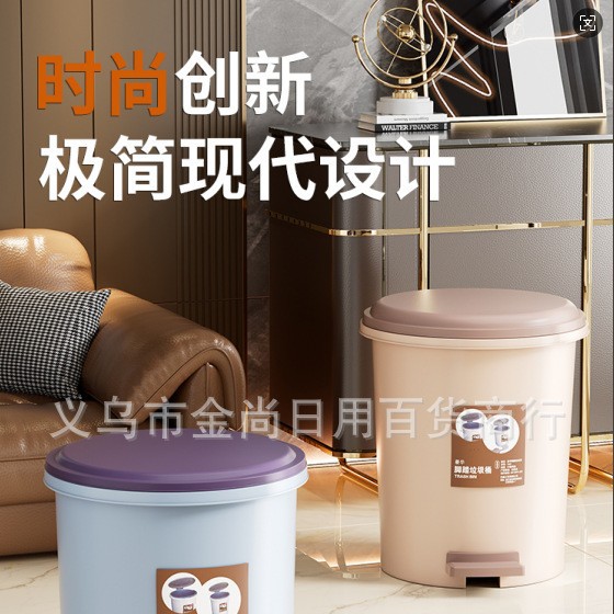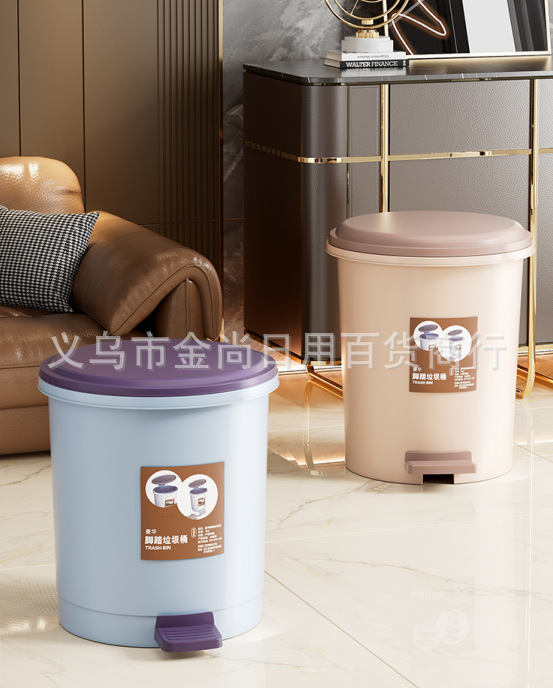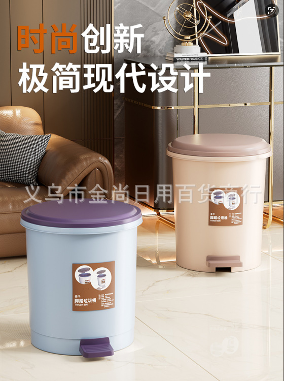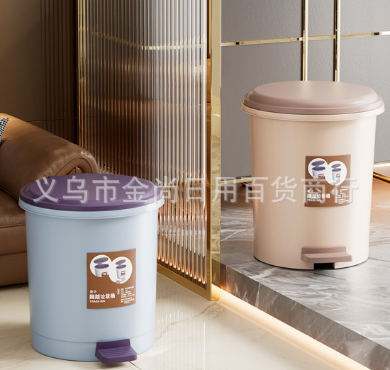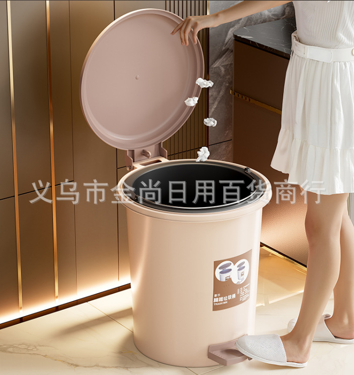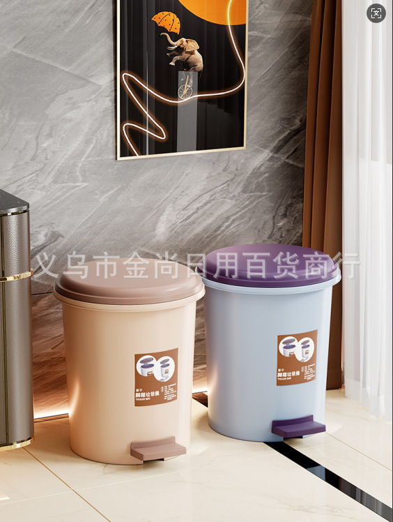 家用圆桶垃圾桶(贴纸款)带盖卫生间客厅创意脚踏圾垃桶厨房拉极桶