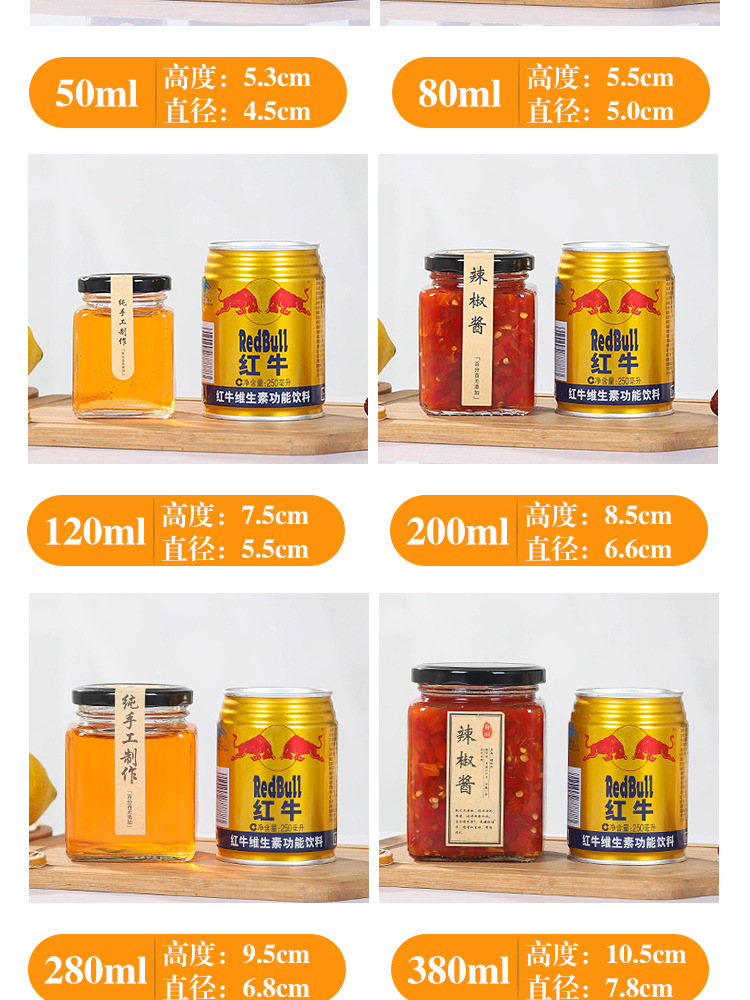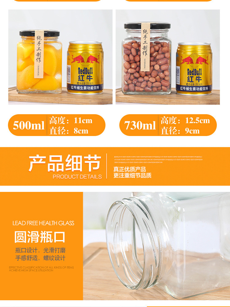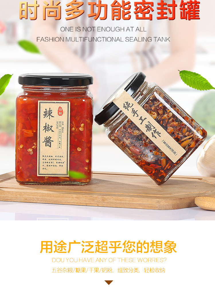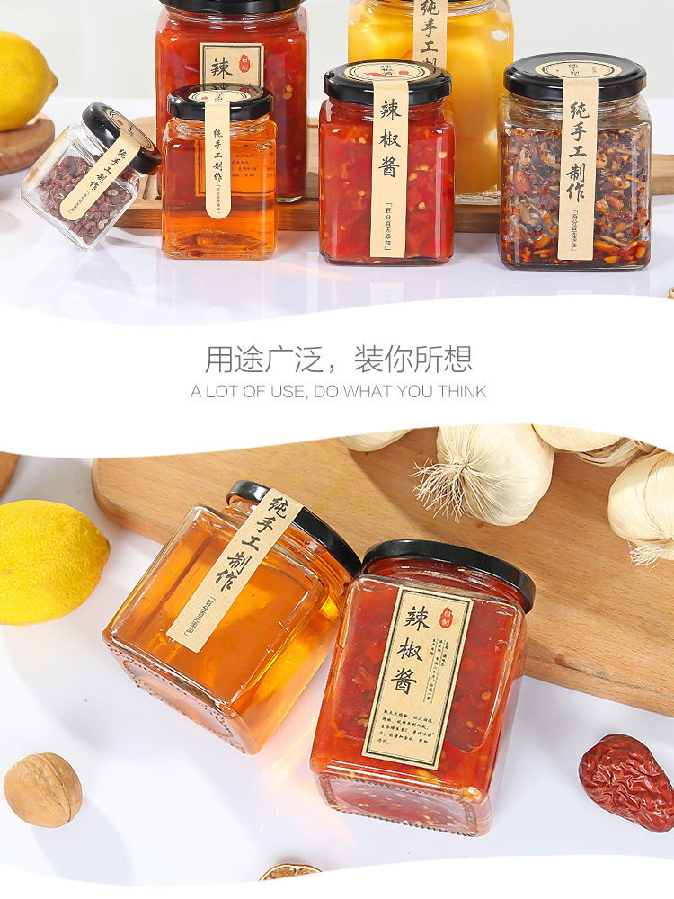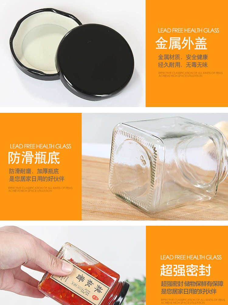 厂家批发280ml玻璃方酱菜瓶200ml方形蜂蜜玻璃瓶果酱瓶500ml玻璃