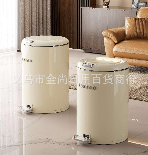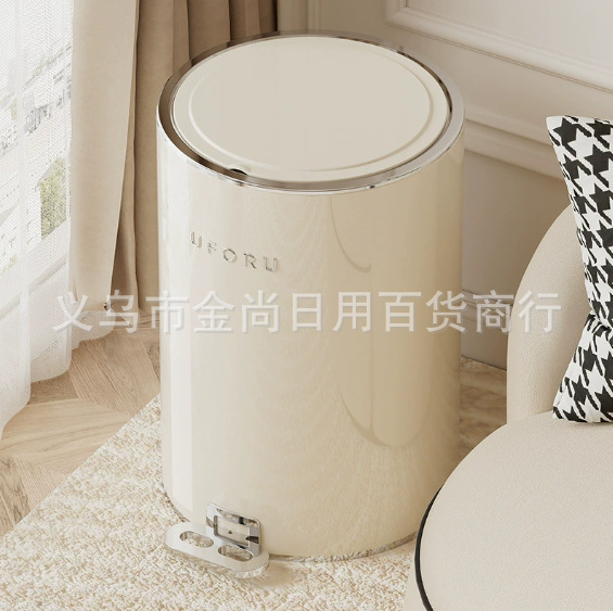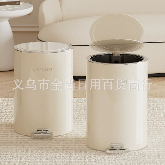 金属圆形双开垃圾桶(上圈电镀)脚踏家用高级感卫生间厕所垃圾筒