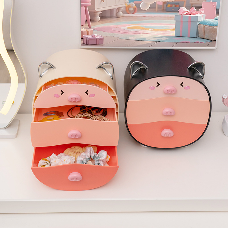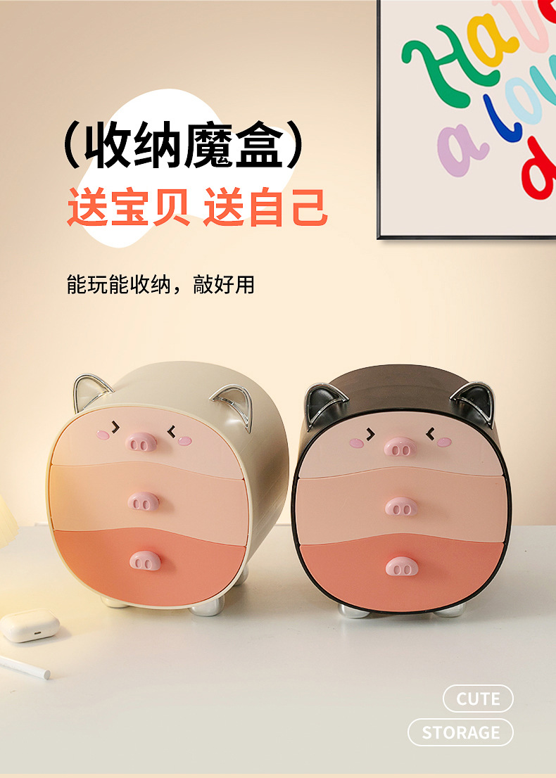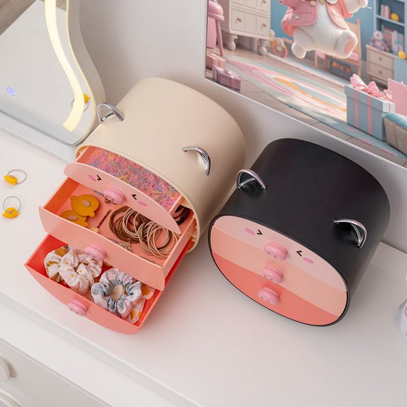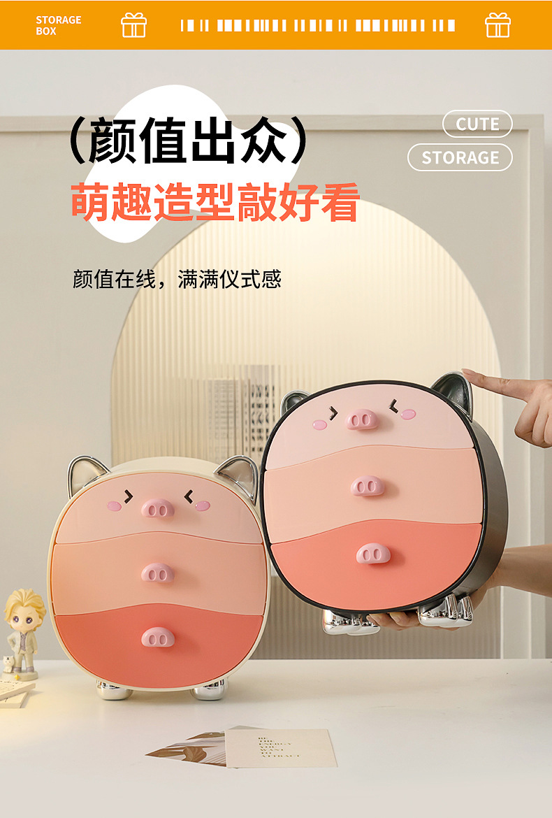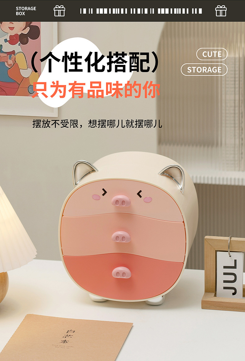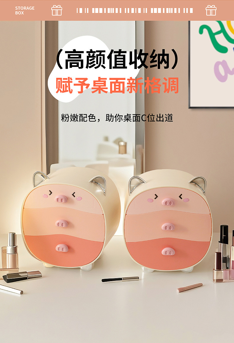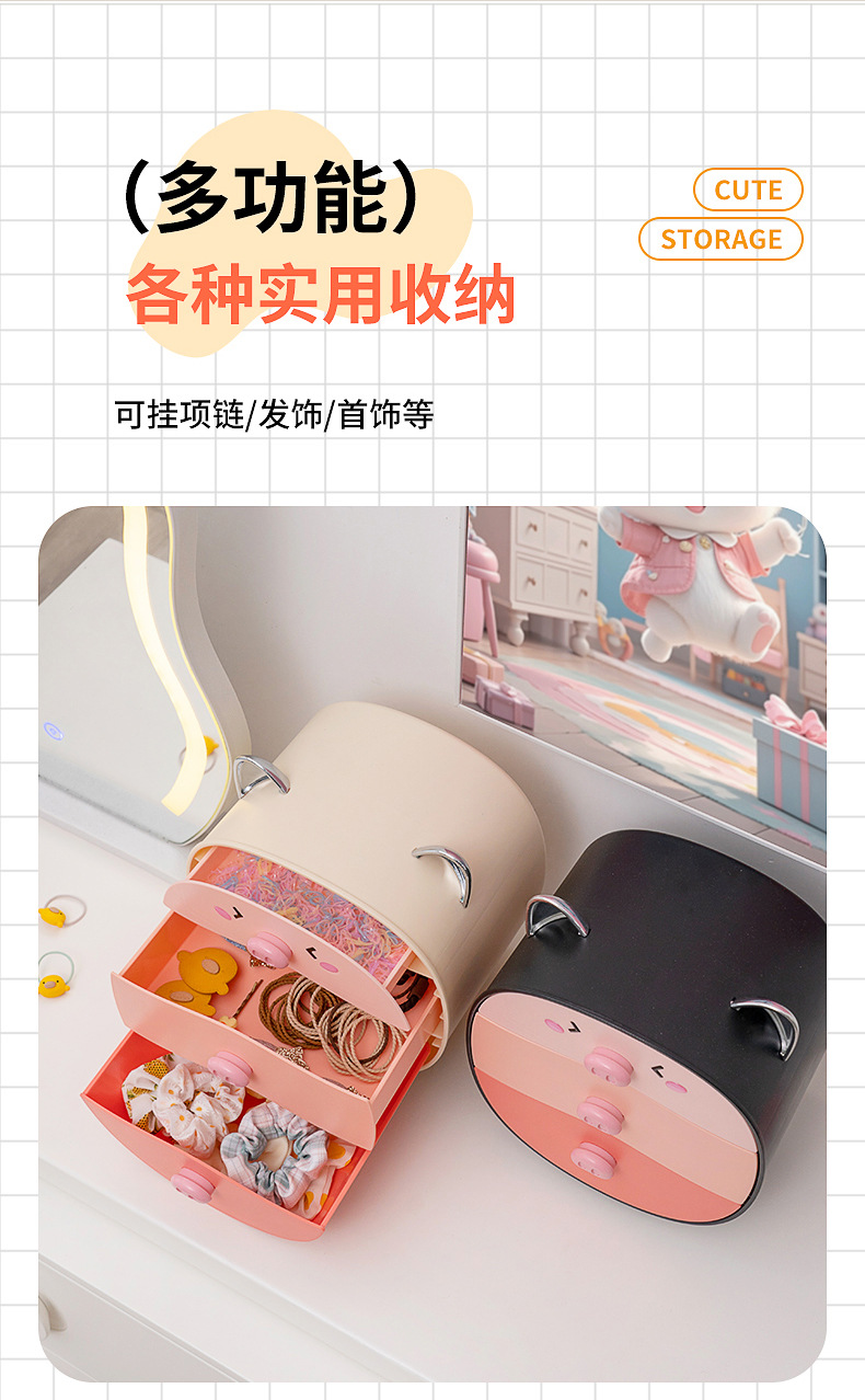 抽屉式化妆品收纳盒防尘桌多功能护肤品首饰收纳盒卡通可爱收纳柜