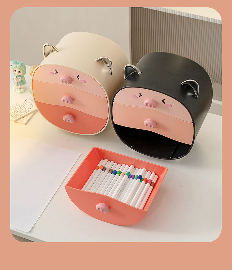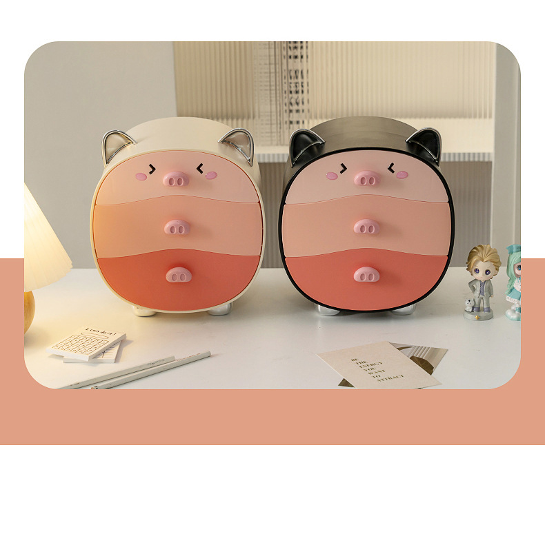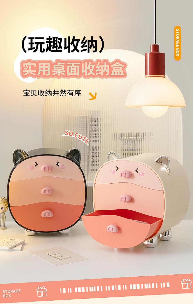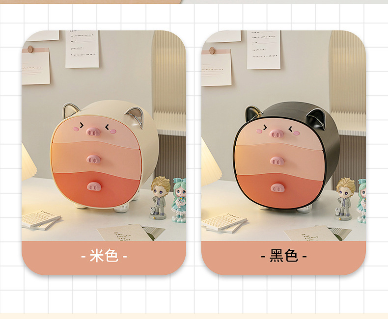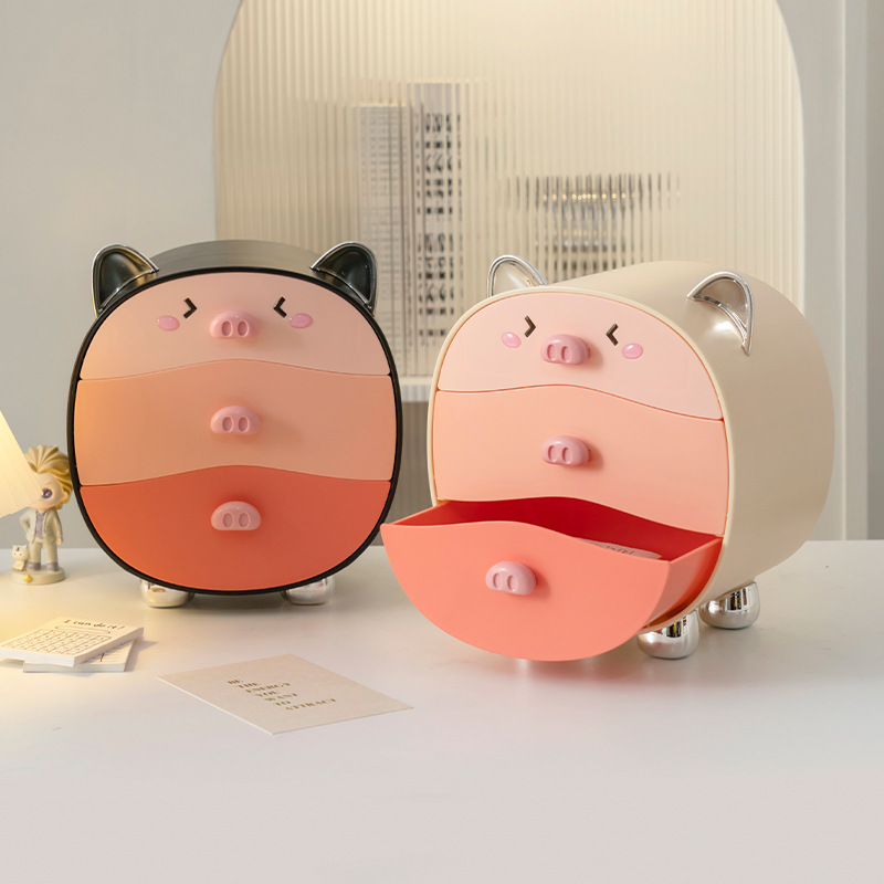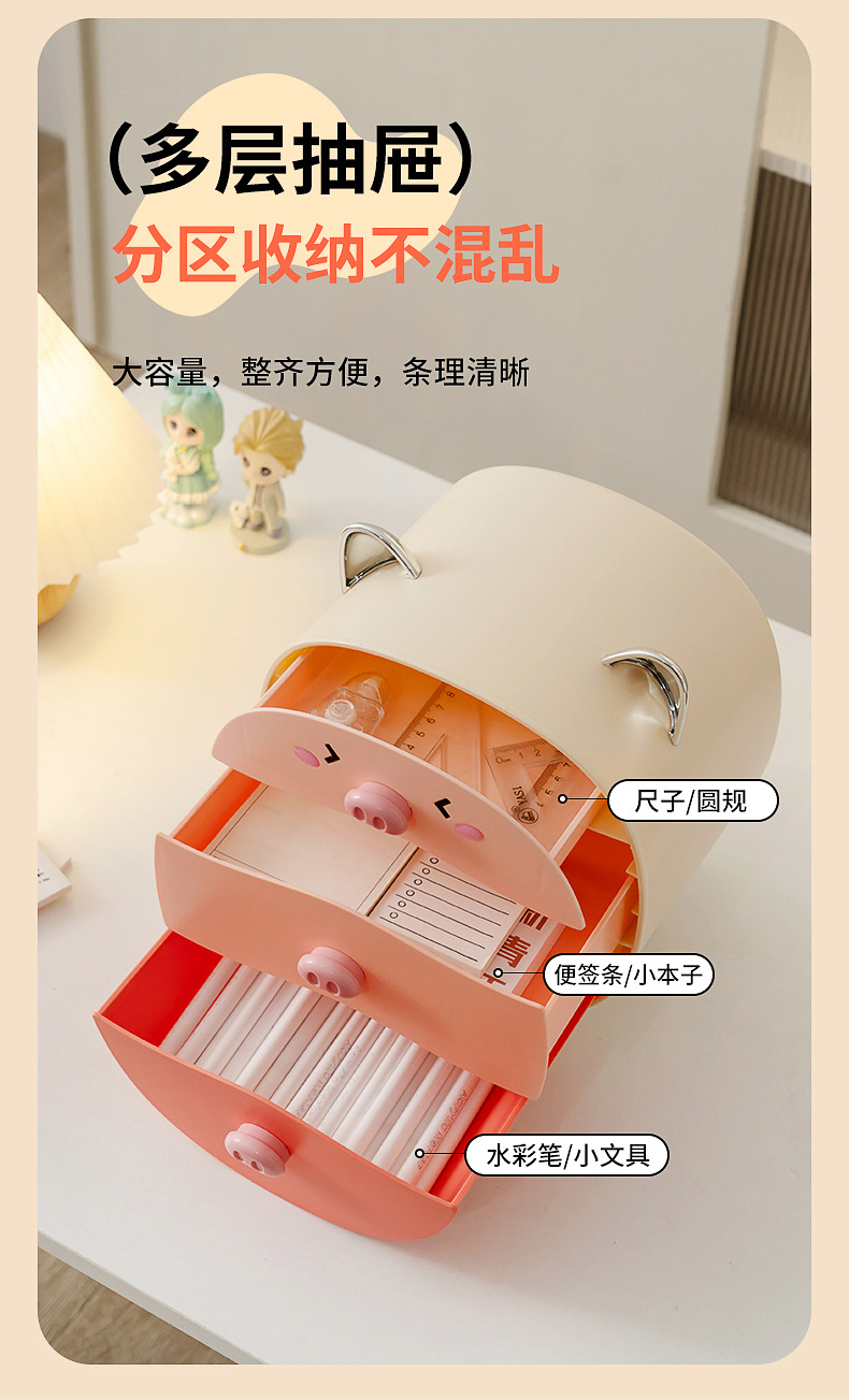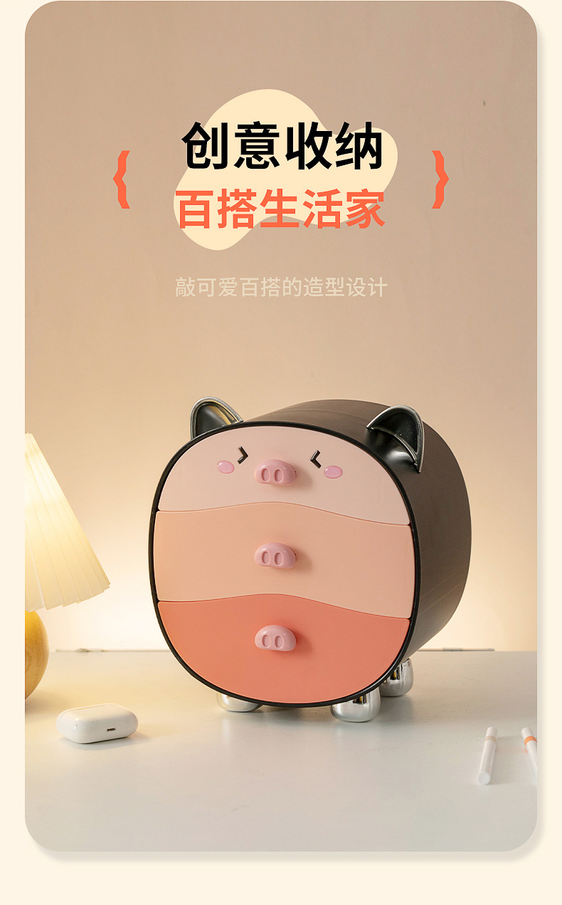 抽屉式化妆品收纳盒防尘桌多功能护肤品首饰收纳盒卡通可爱收纳柜