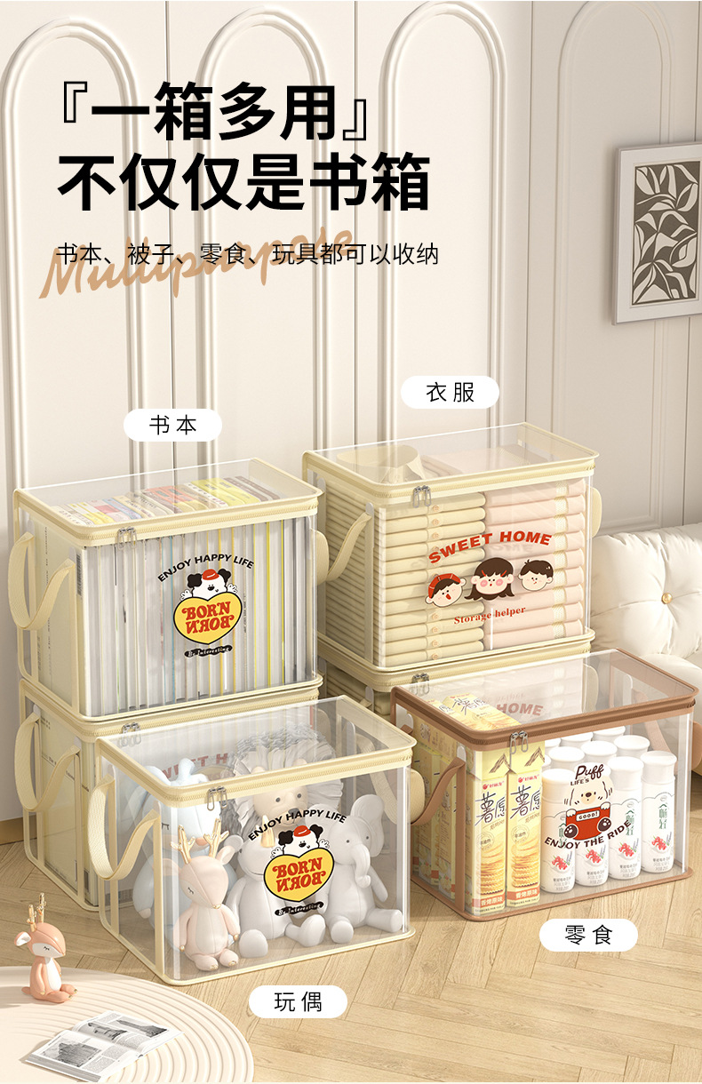 加厚PVC防尘收纳袋可折叠课本整理收纳箱学生宿舍家用卡通新款