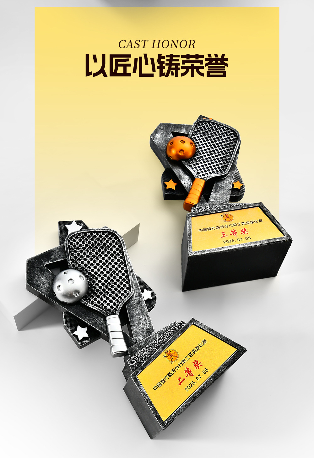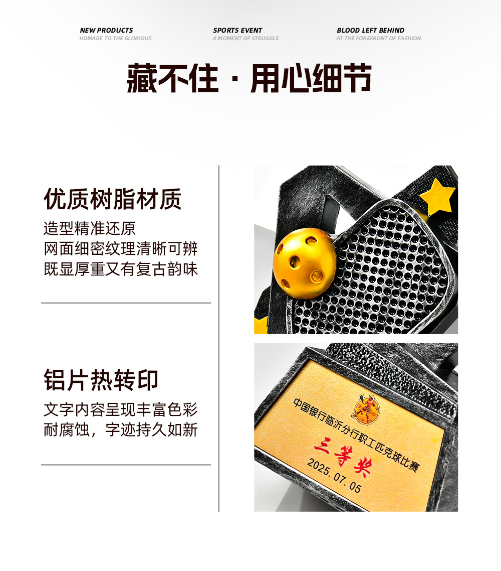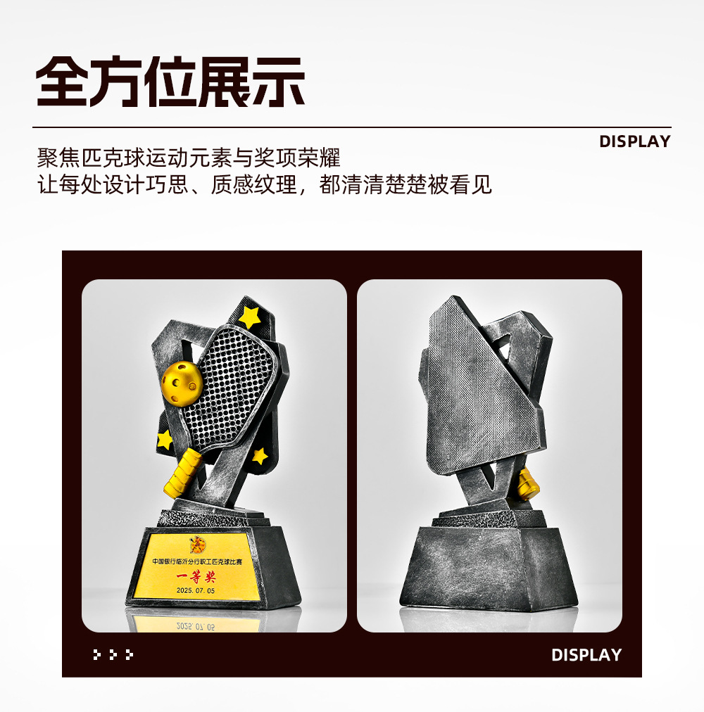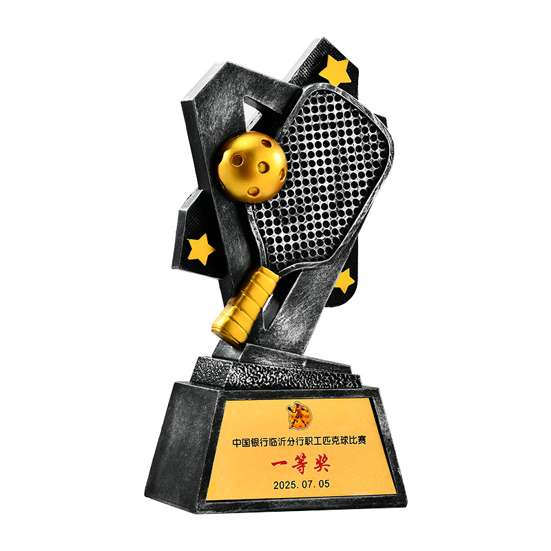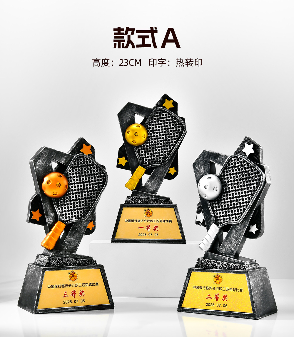 跨境新款创意匹克球比赛运动会奖杯金银铜树脂匹克球工艺刻字定制