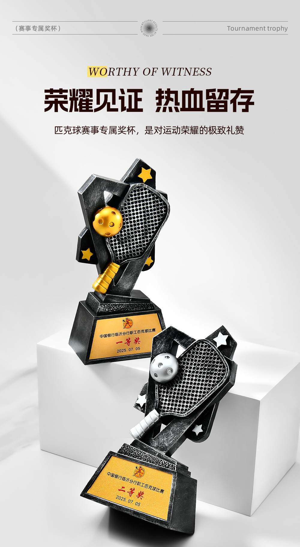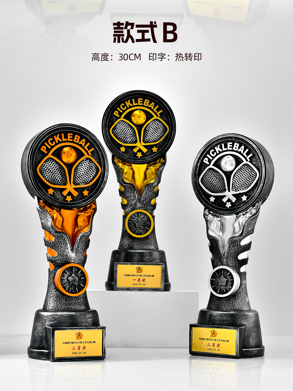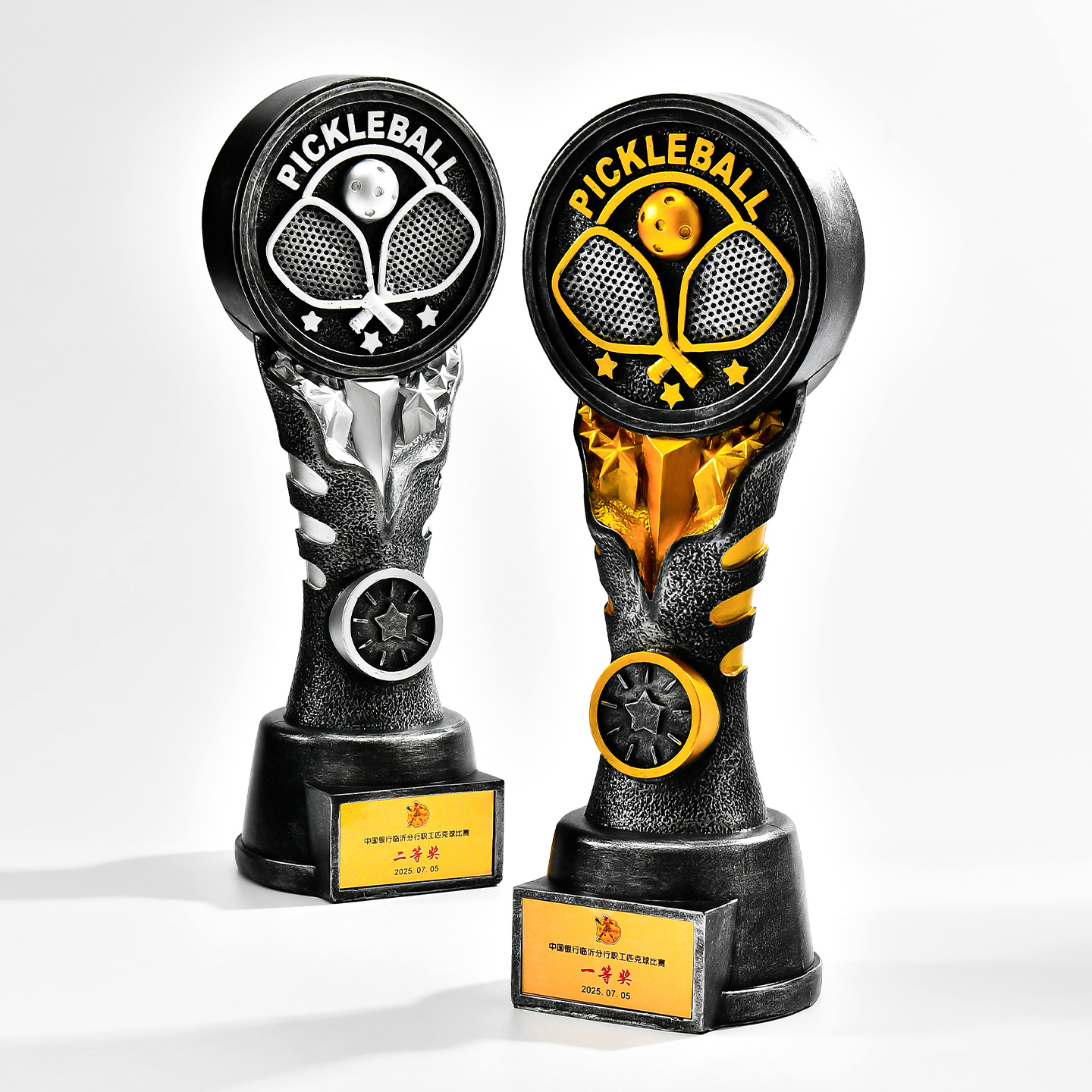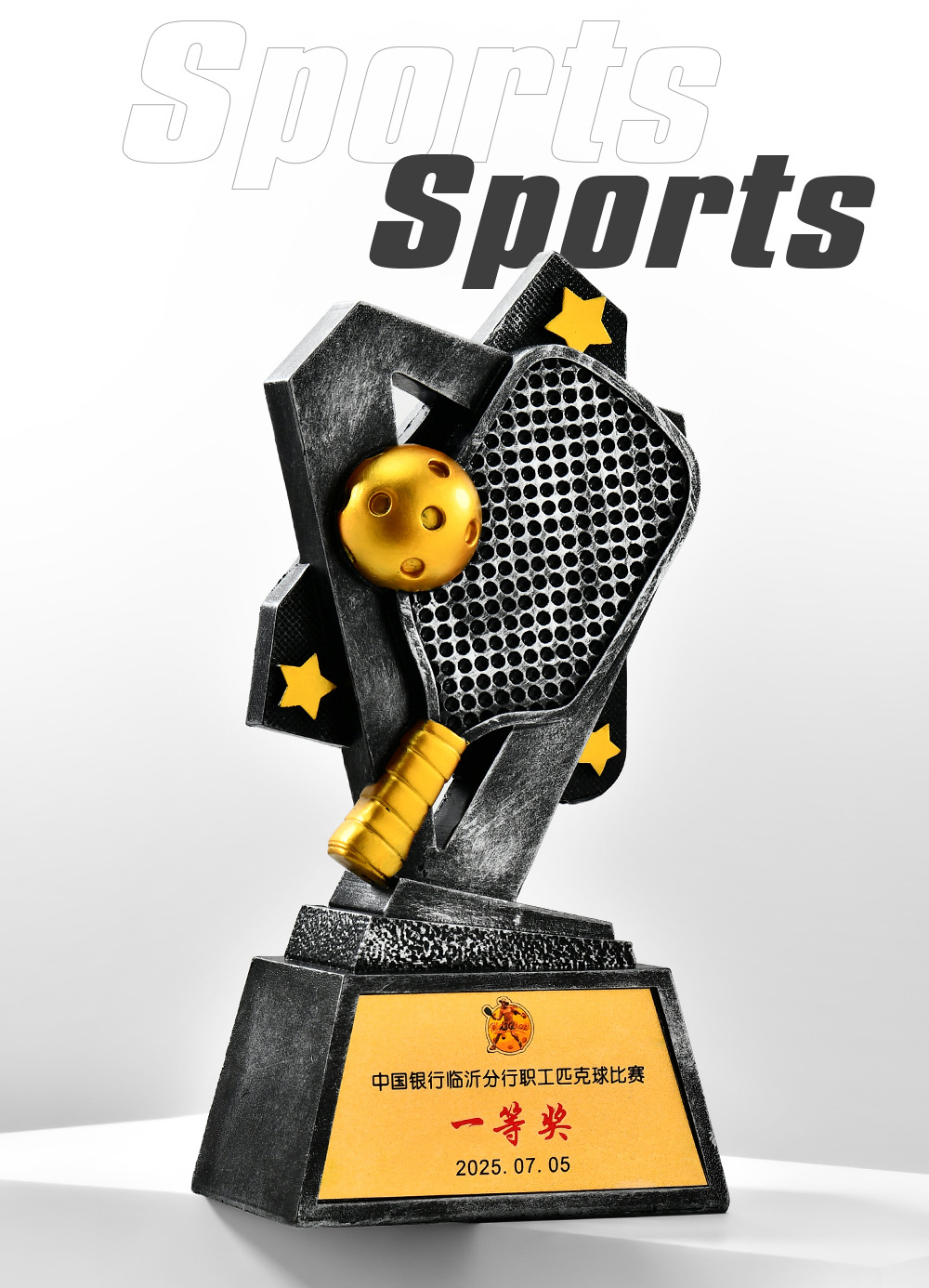 跨境新款创意匹克球比赛运动会奖杯金银铜树脂匹克球工艺刻字定制