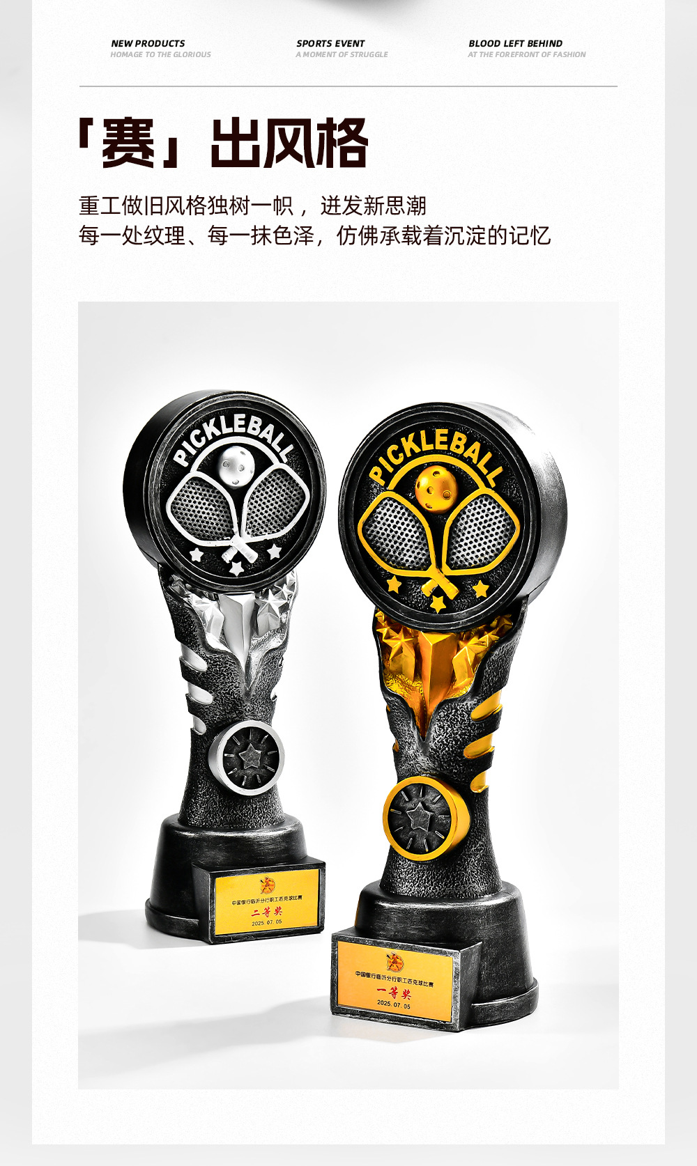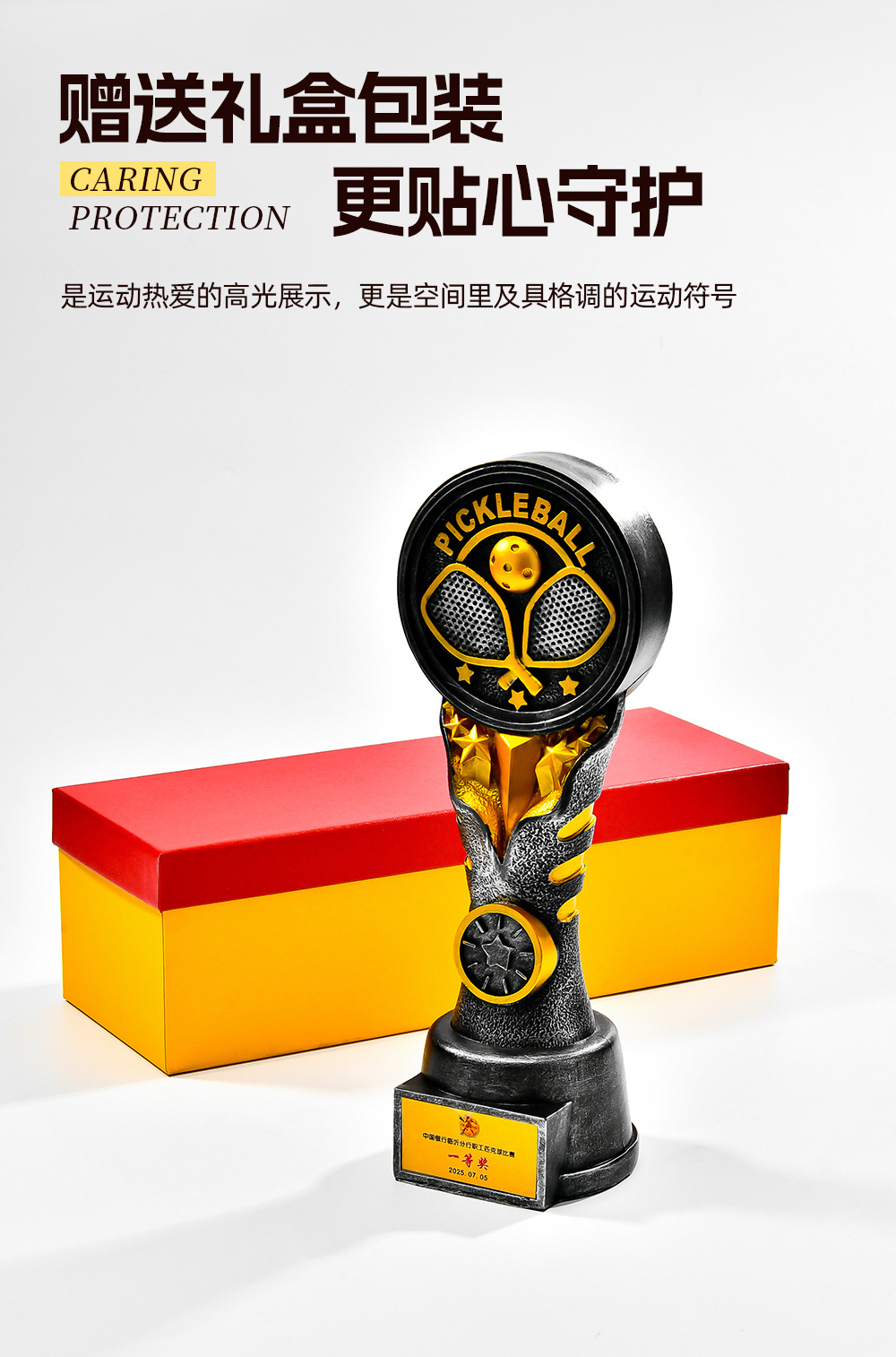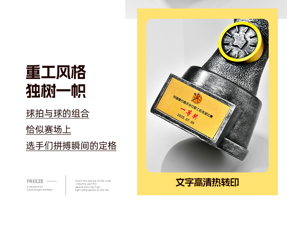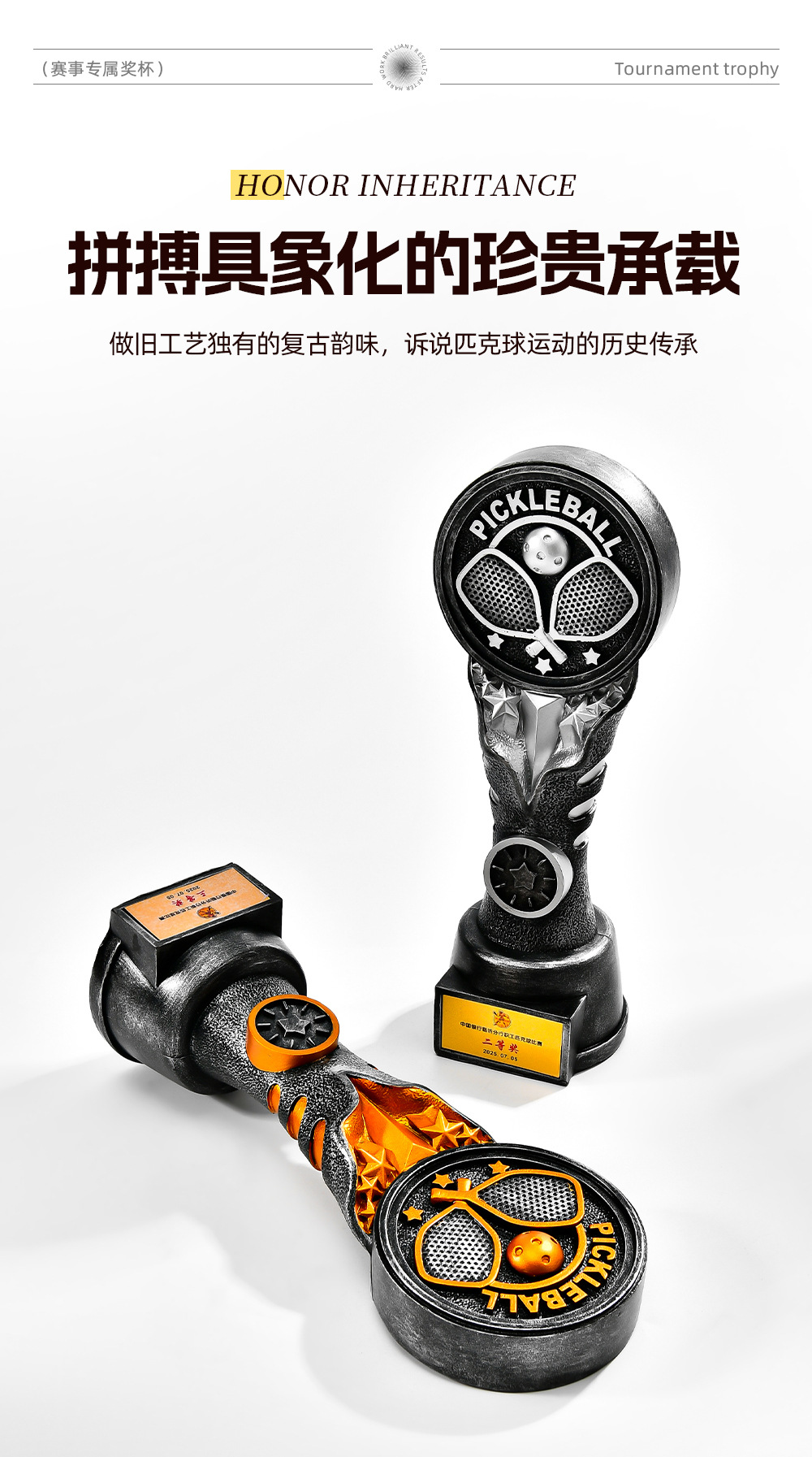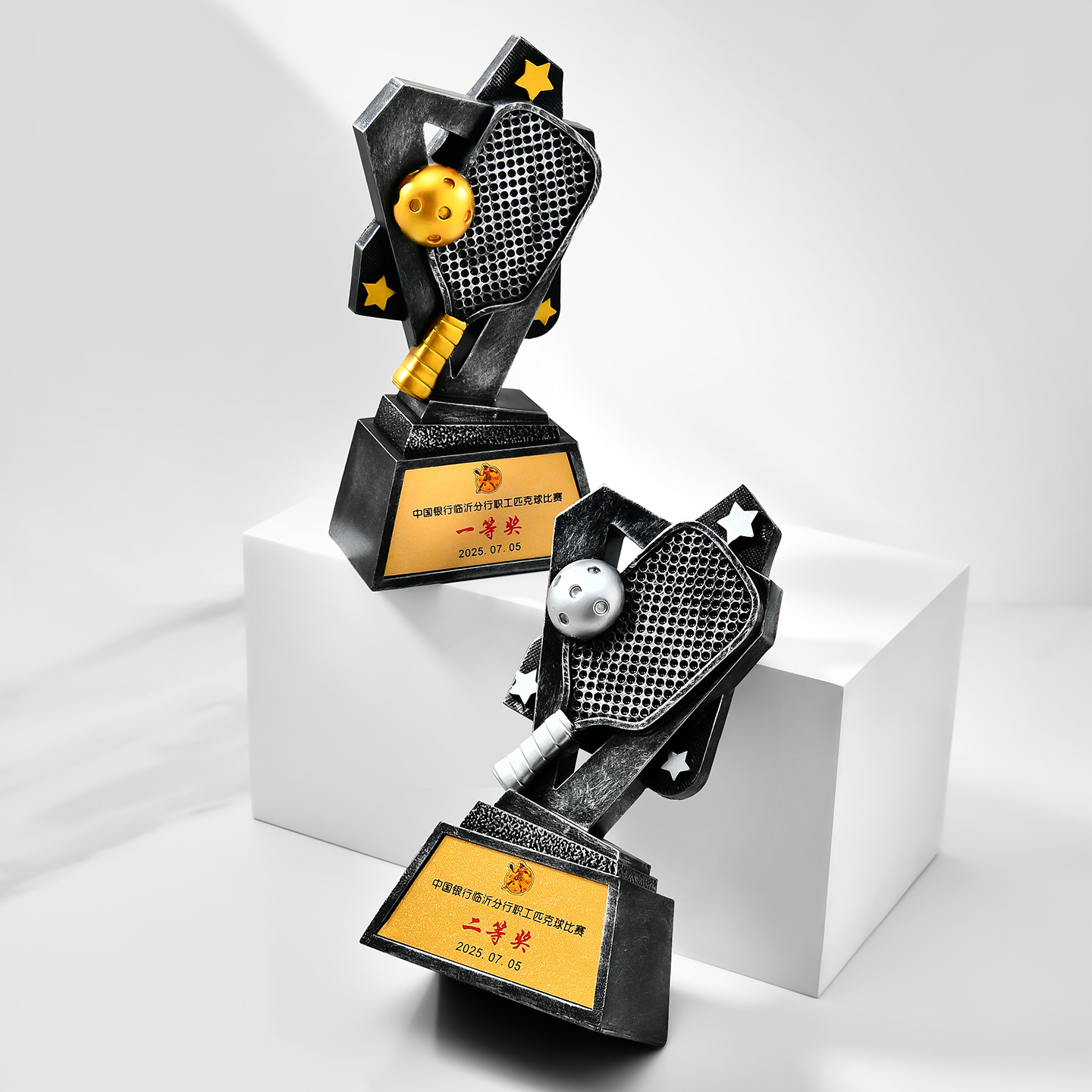 跨境新款创意匹克球比赛运动会奖杯金银铜树脂匹克球工艺刻字定制
