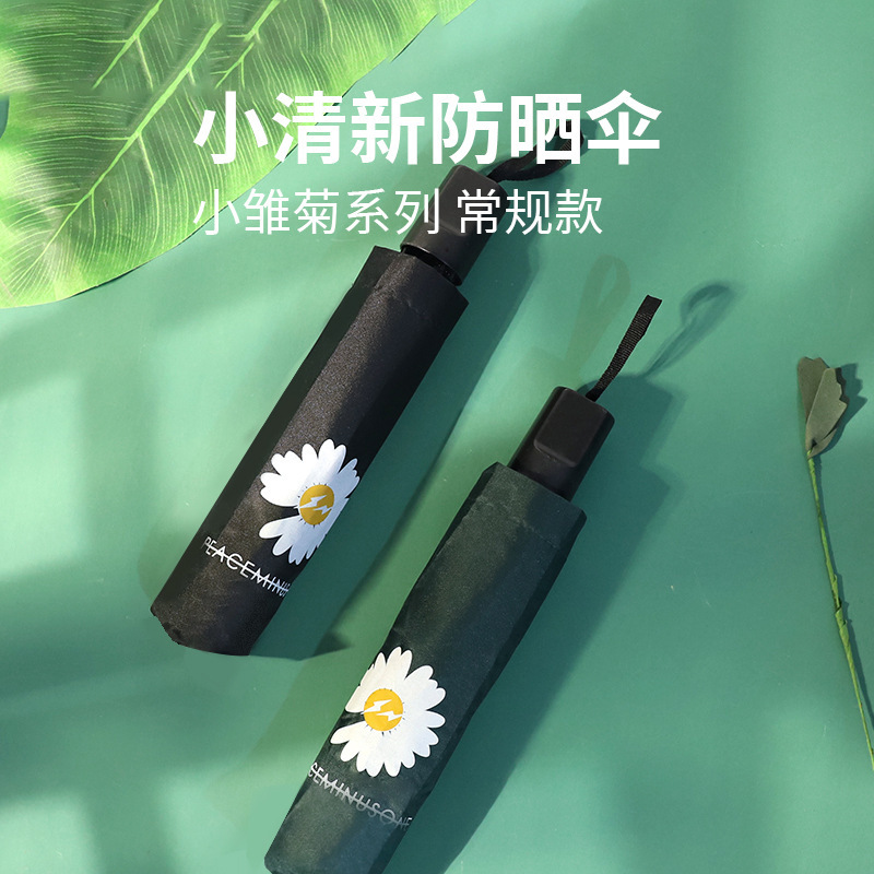 雏菊黑胶UV太阳伞晴雨伞自动防紫外线遮阳伞防晒折叠伞定制广告伞