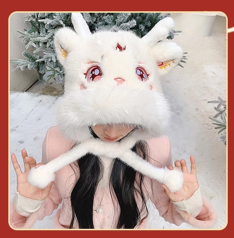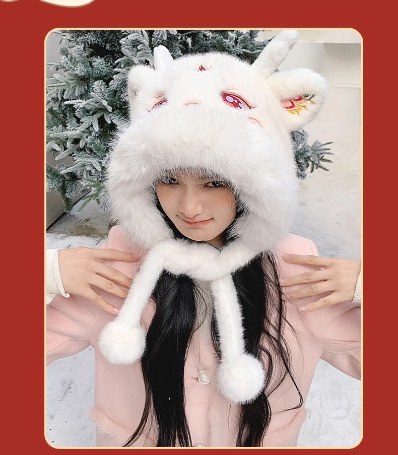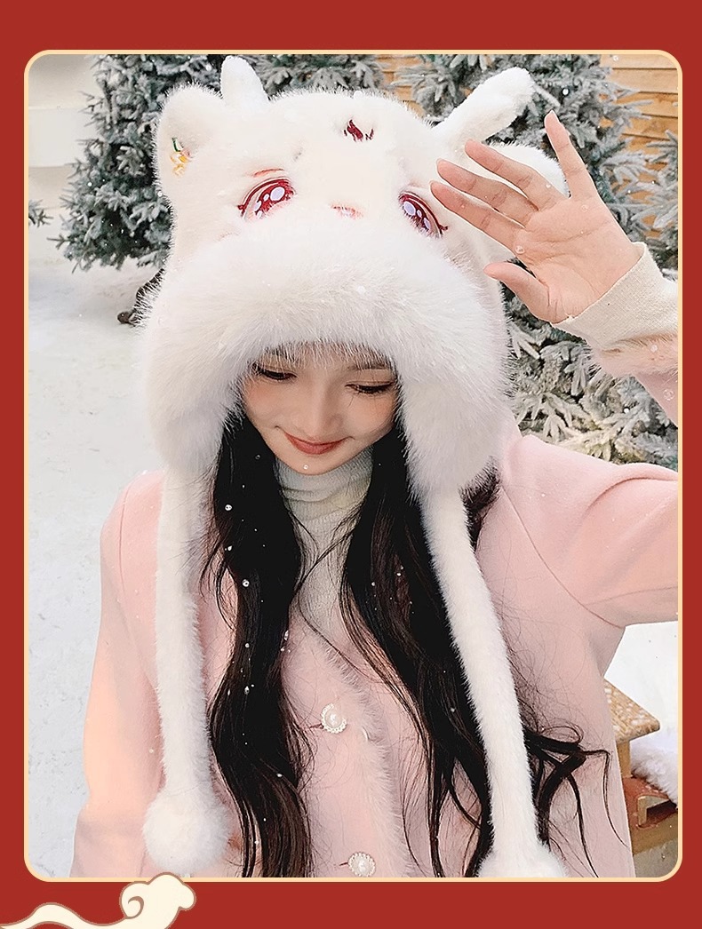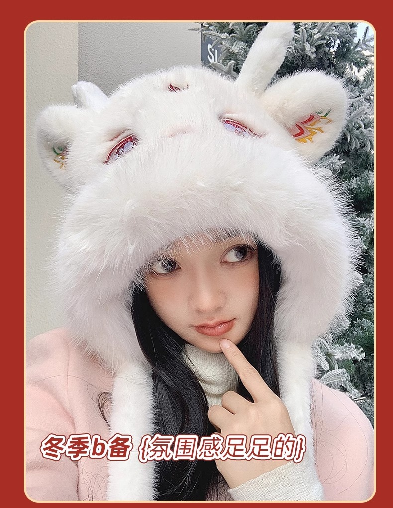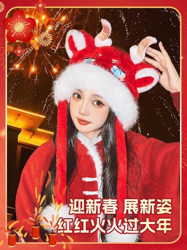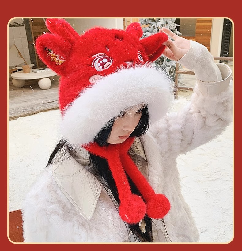 国潮醒狮红色帽子可爱学生儿童过年新年虎头帽女冬天加厚保暖毛绒