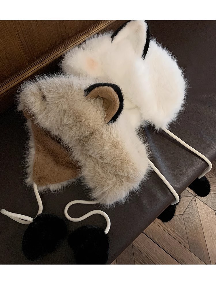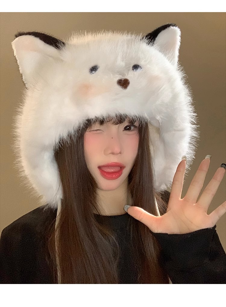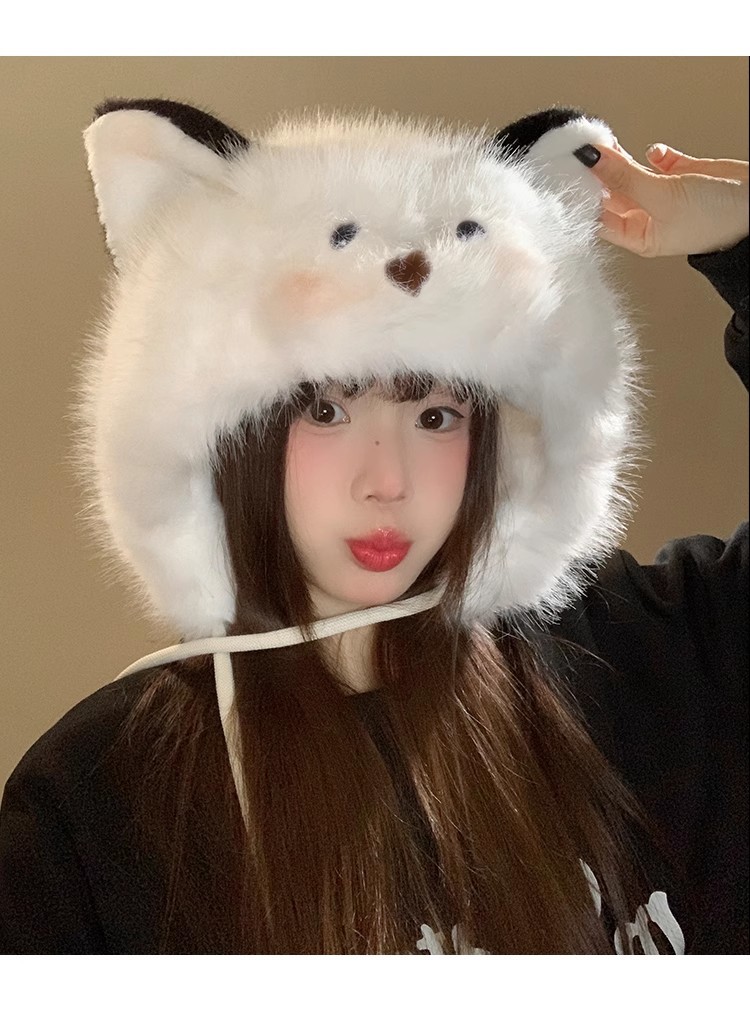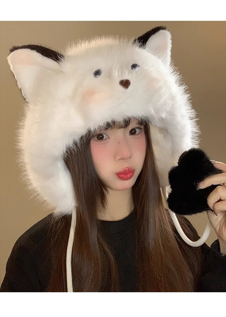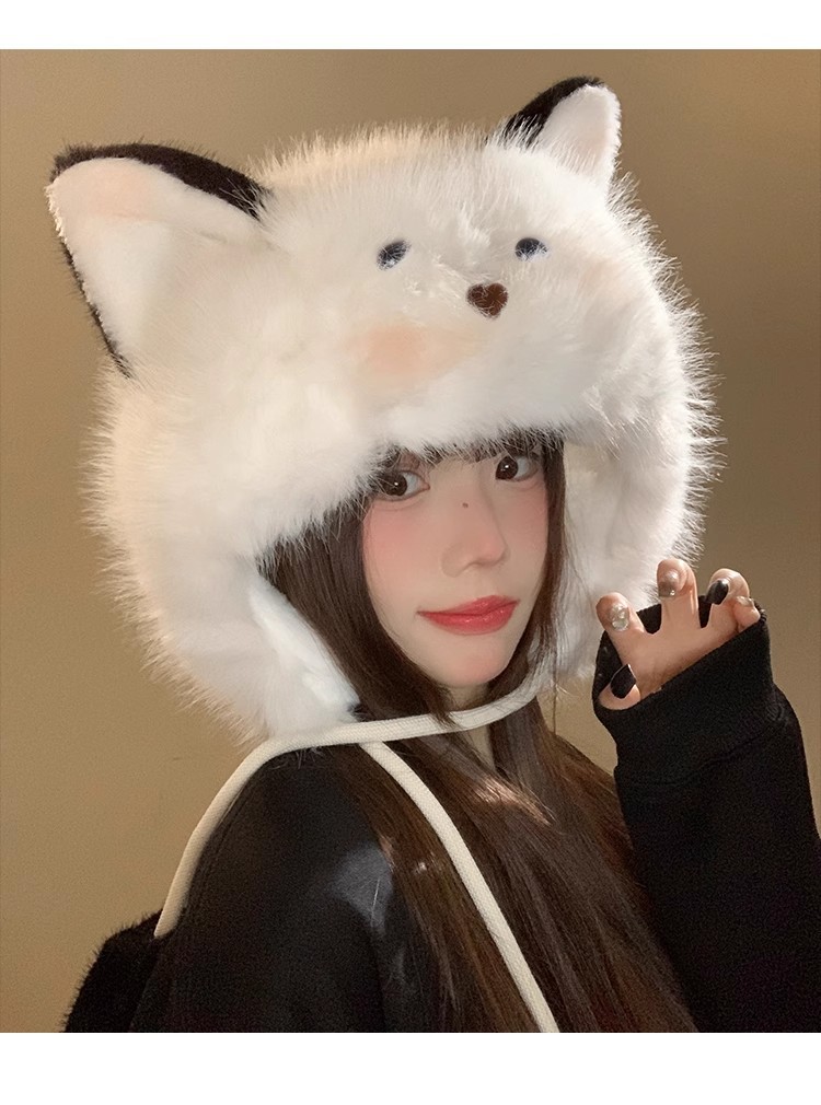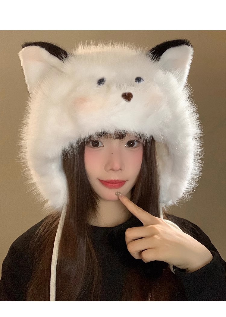 可爱猫耳朵毛绒帽子女秋冬季加绒保暖防寒骑行骑车护耳雷锋帽冬帽