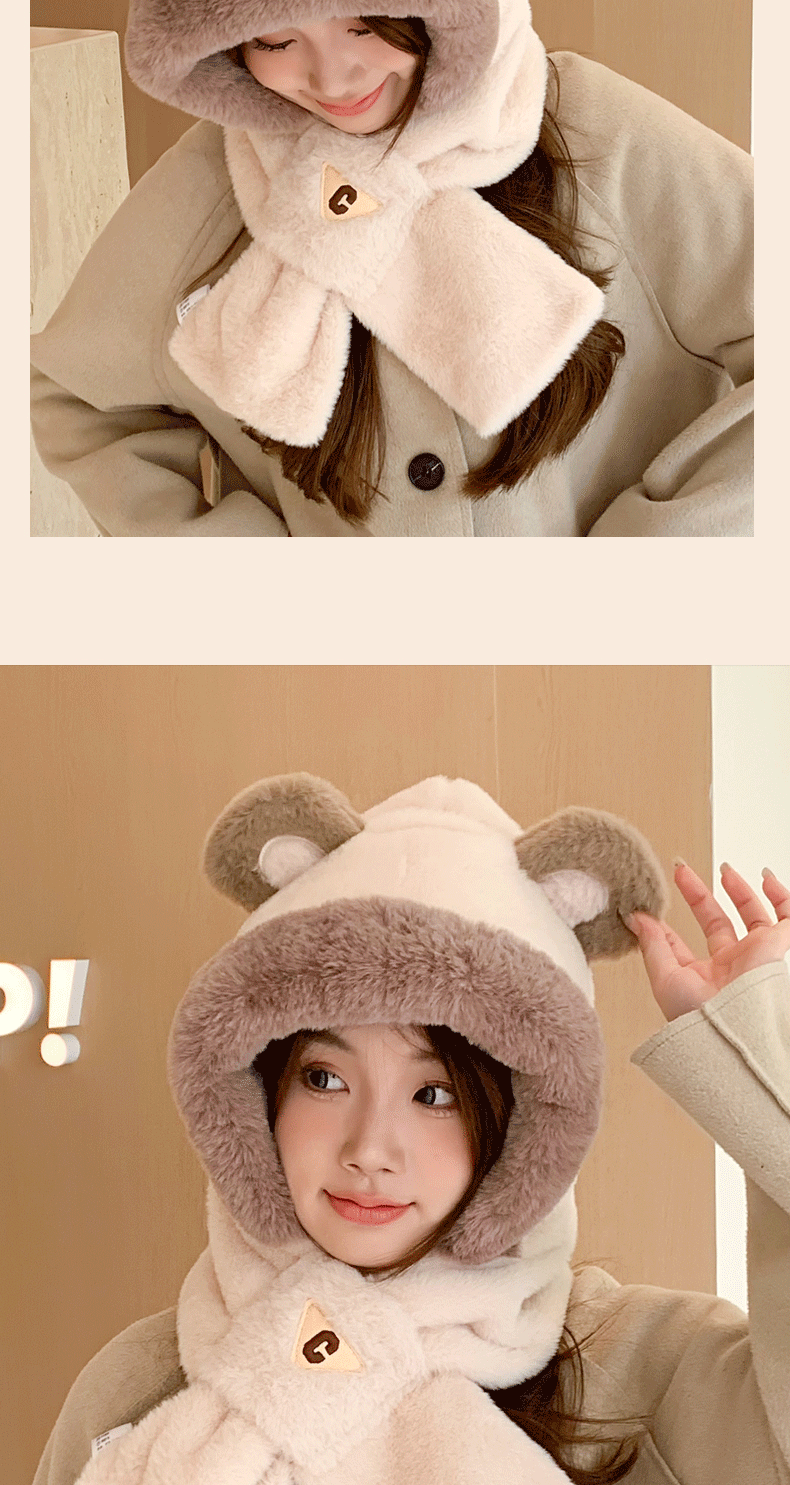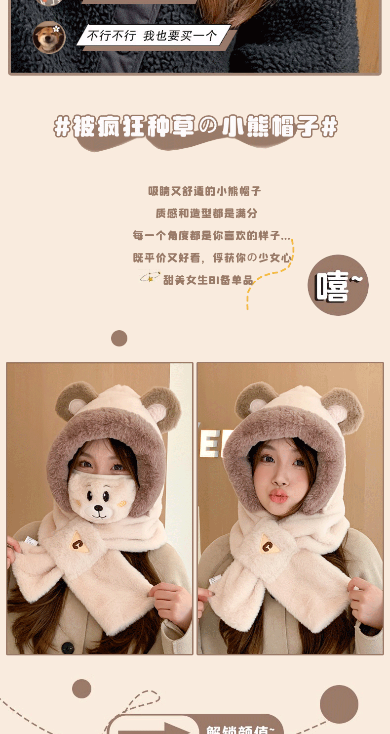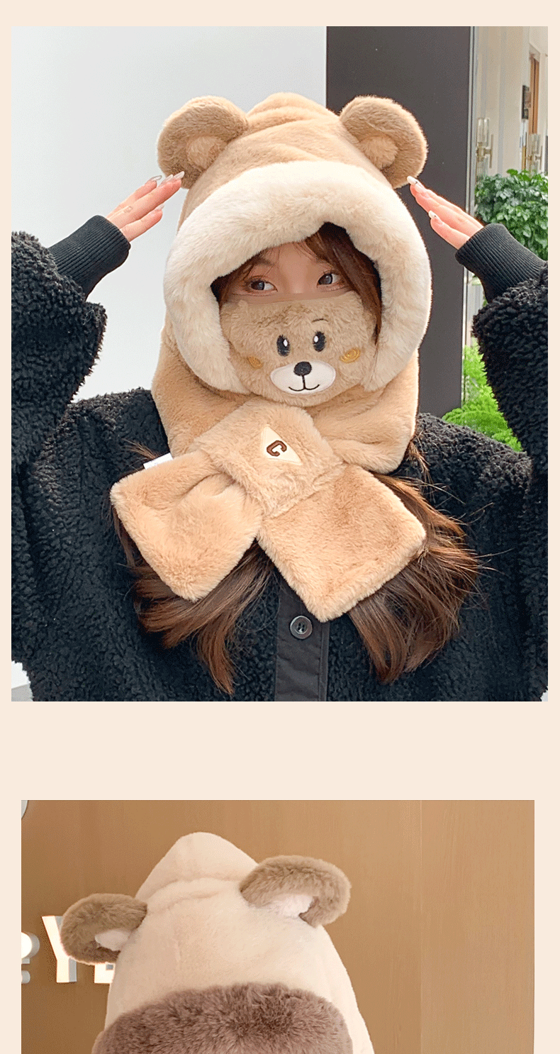冬季小熊帽女帽子口罩围巾围脖一体保暖护耳骑车防风防寒学生可爱