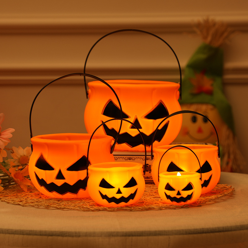 亚马逊跨境万圣节南瓜桶 新款南瓜灯 儿童带盖南瓜桶糖果罐批发
