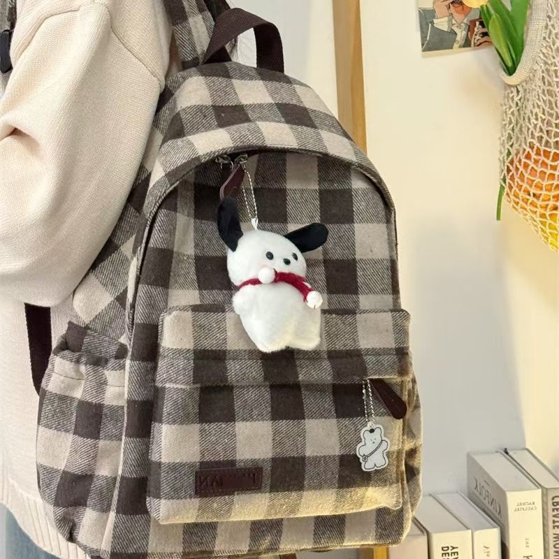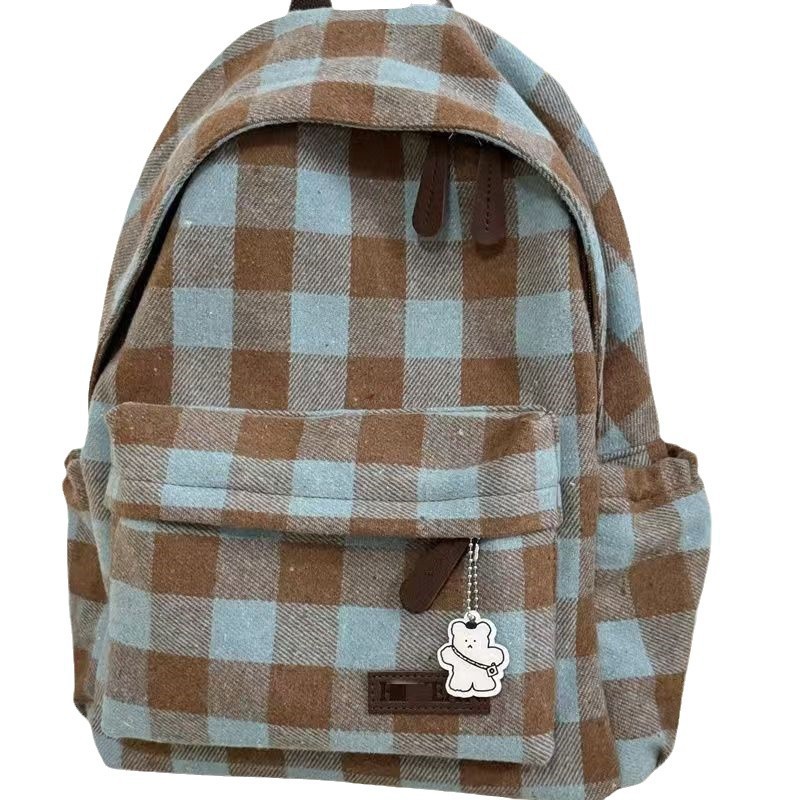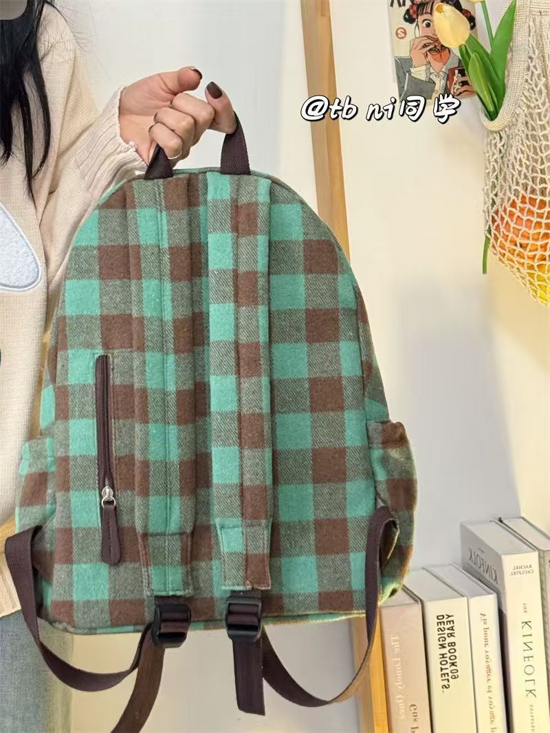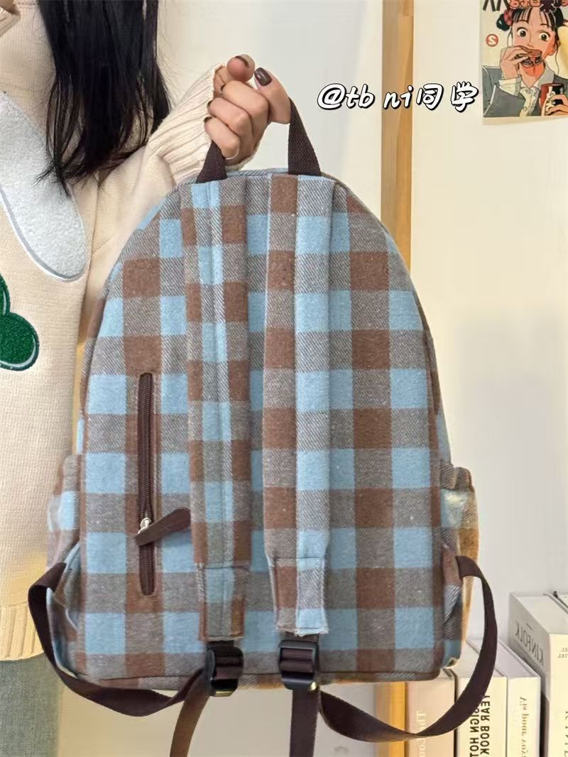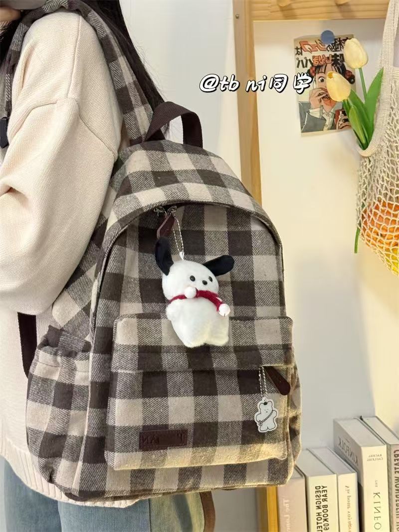 2025季格子帆布背包女中学生初中生双肩包大学生简约可爱书包