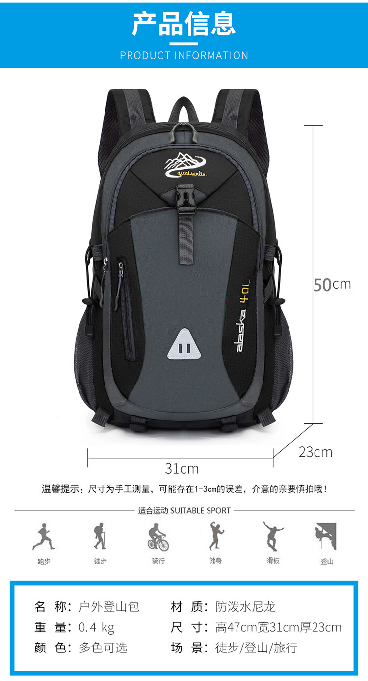 大容量双肩包登山户外旅游防水背包出差收纳电脑包包背包