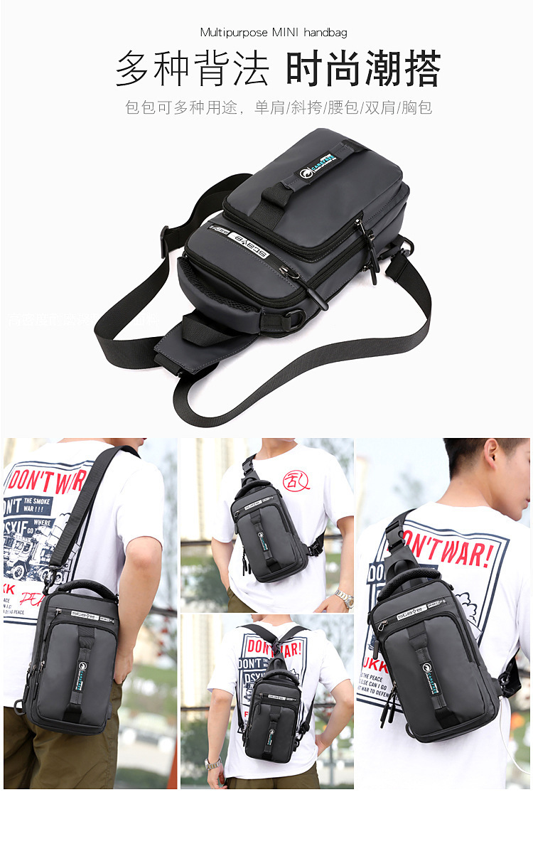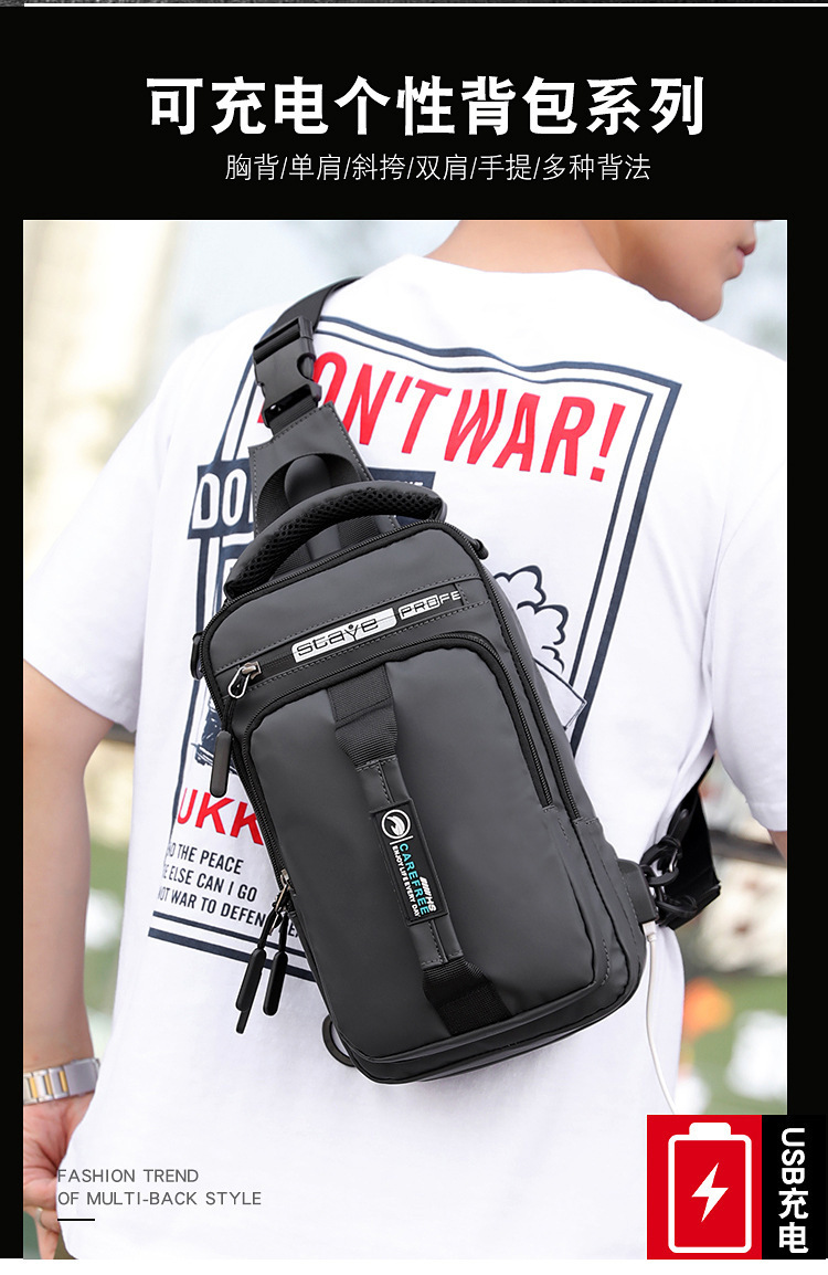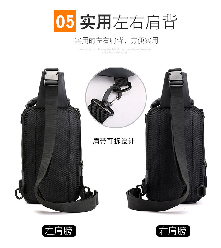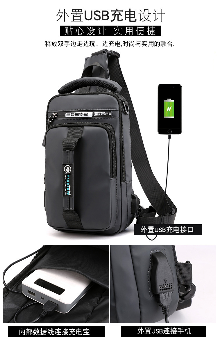 纯色牛津布挎小包男士单肩斜挎包商务休闲通勤胸前包usb双肩包
