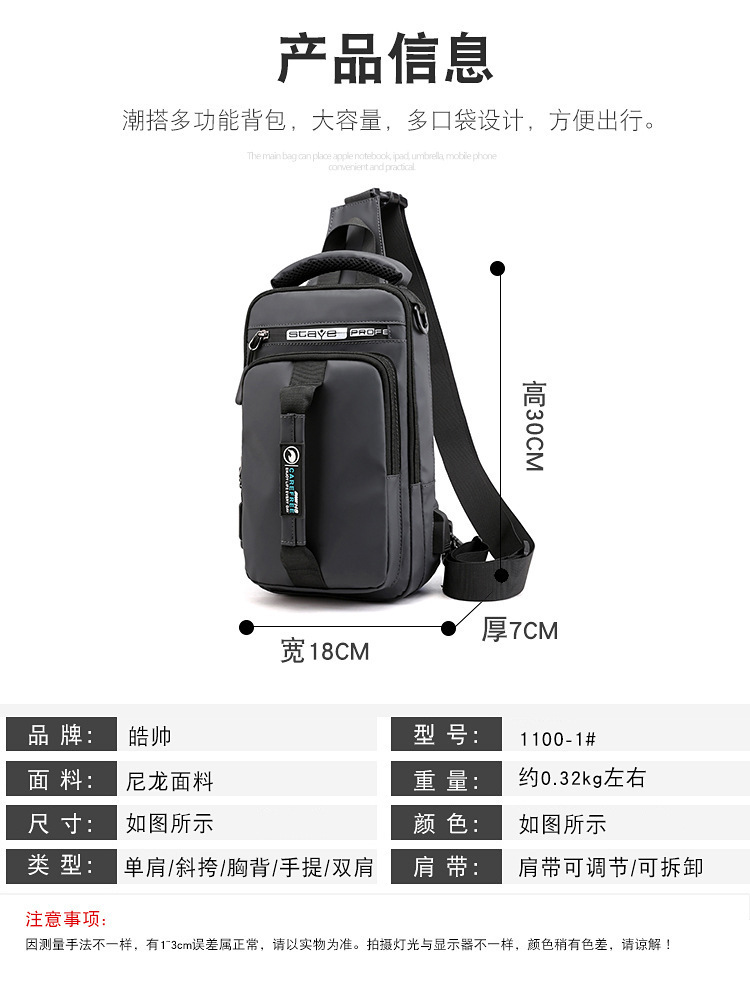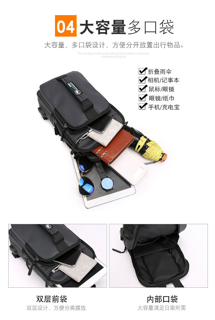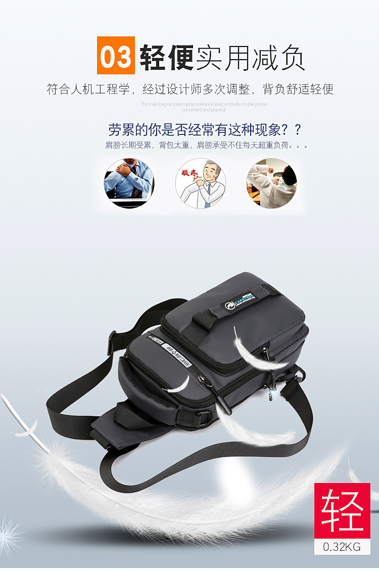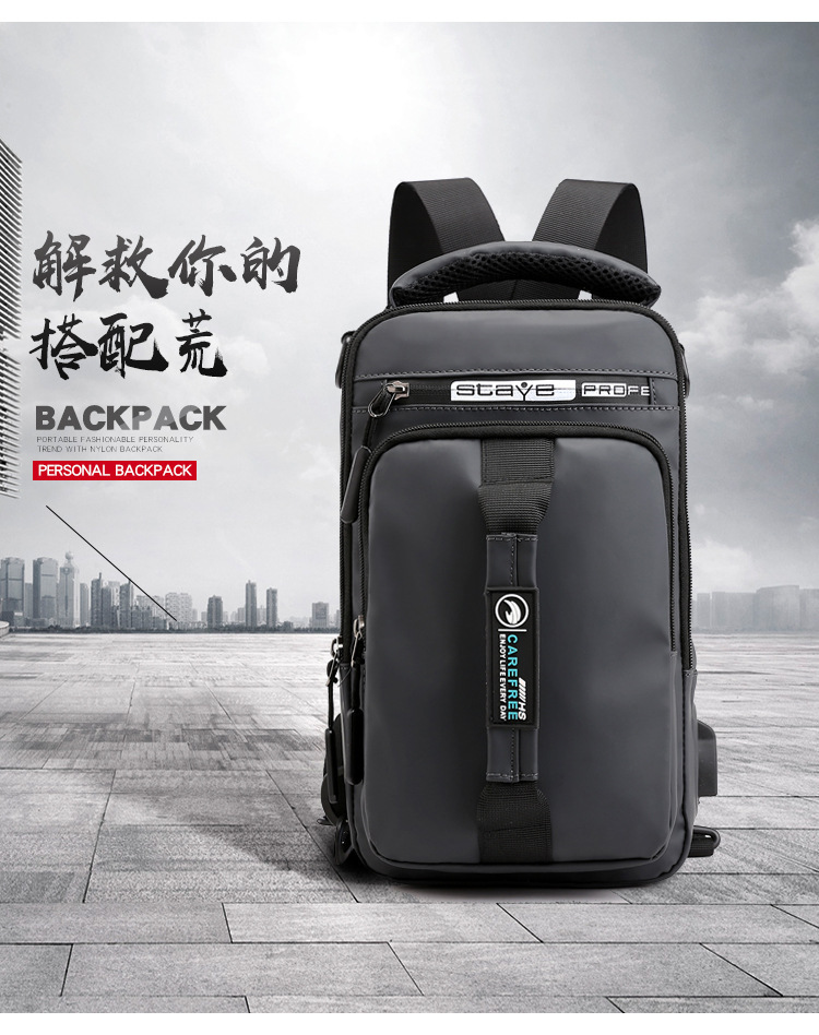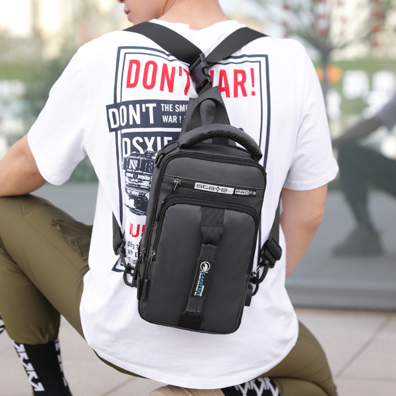 纯色牛津布挎小包男士单肩斜挎包商务休闲通勤胸前包usb双肩包