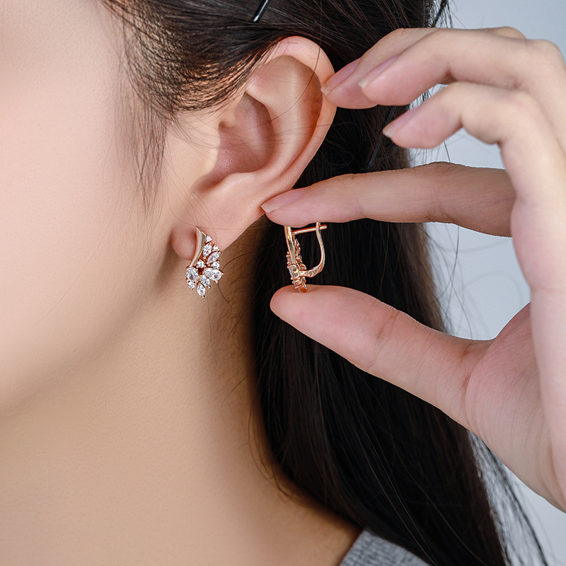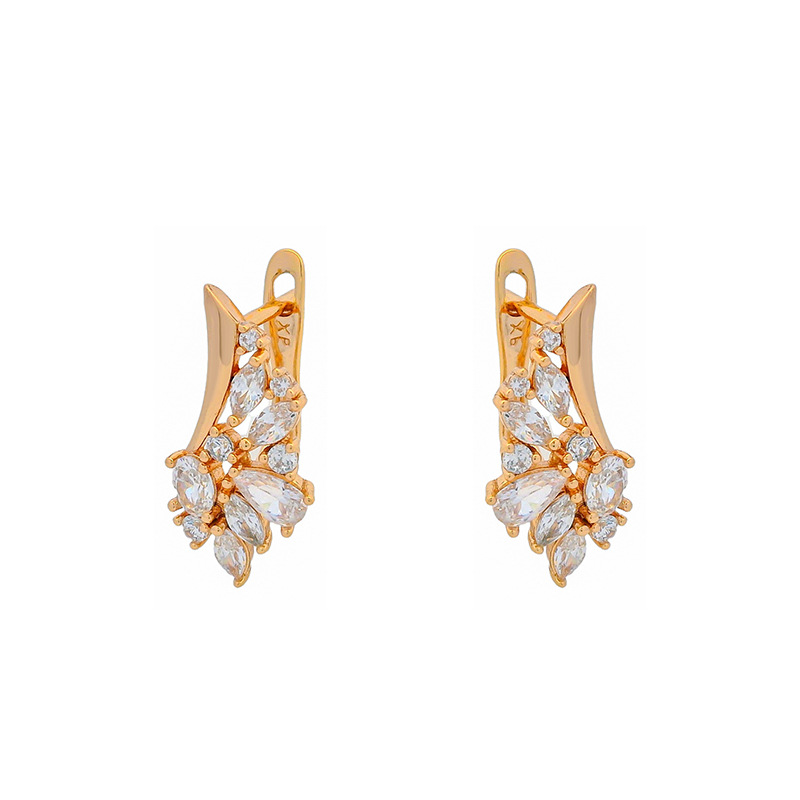 旭平 新款铜合金镀18k金色镶嵌锆石小众复古风俄罗斯款时尚耳饰女