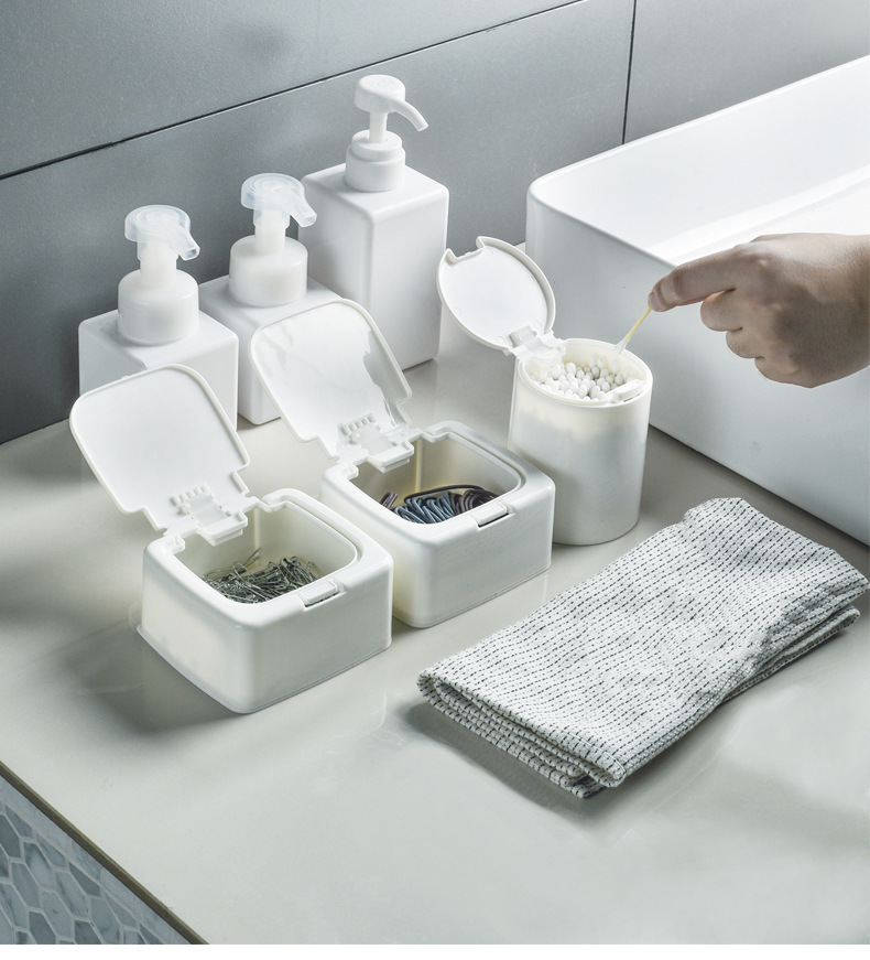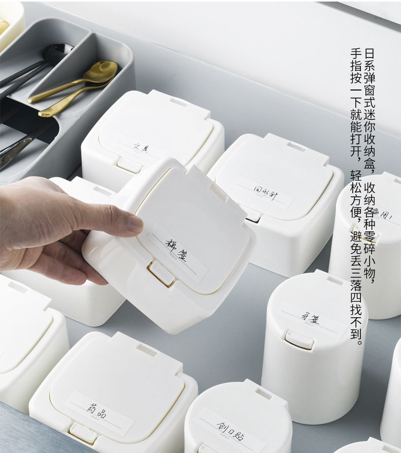 迷你带盖收纳盒塑料办公室桌面收纳桶棉签盒防尘小物整理盒弹窗式