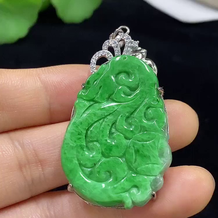翡翠镶嵌挂件 银镶嵌 货品总重约9.37克工艺品