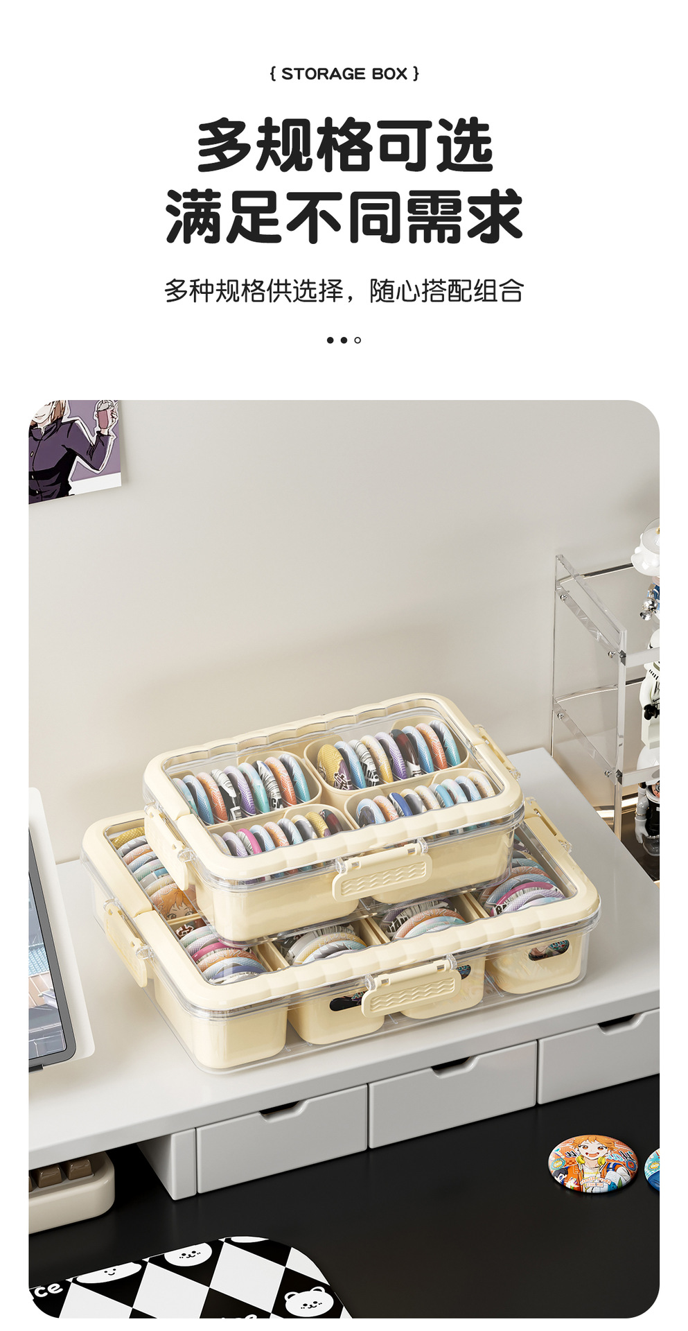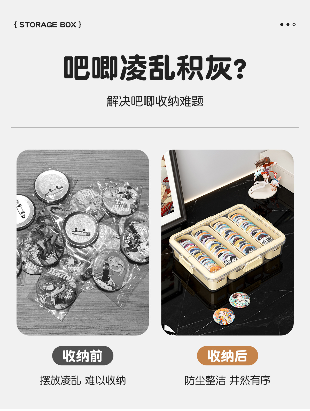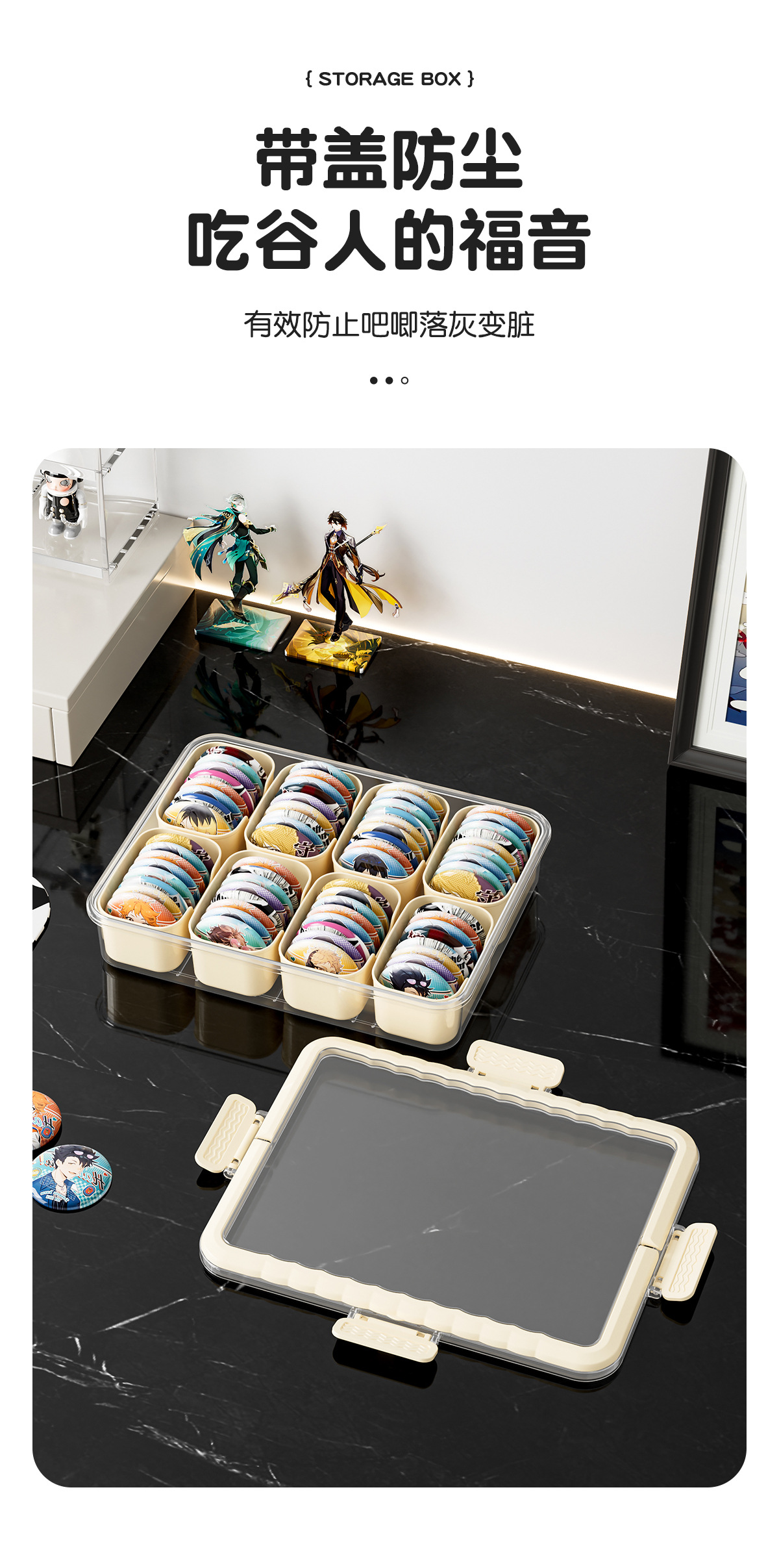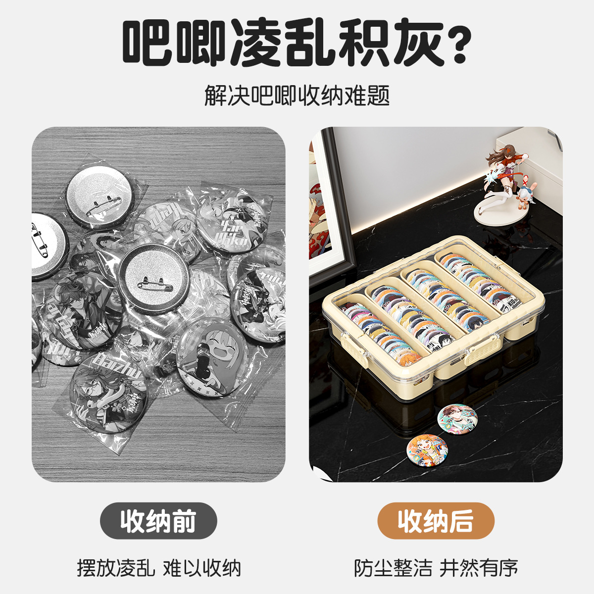 吧唧桌面收纳盒防尘防潮大容量带盖周边微章吃谷子卡片杂物收纳盒
