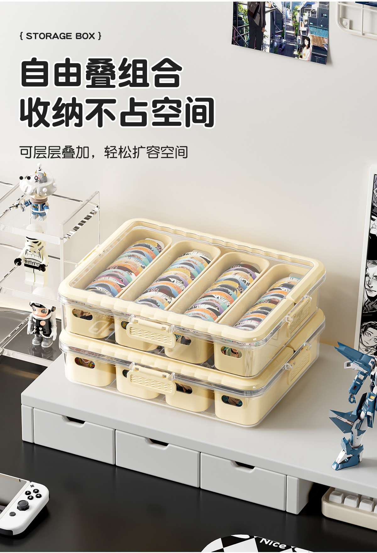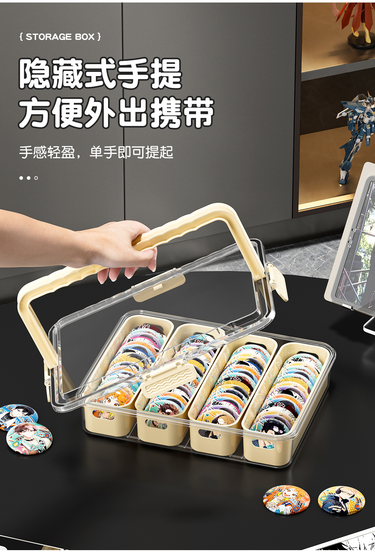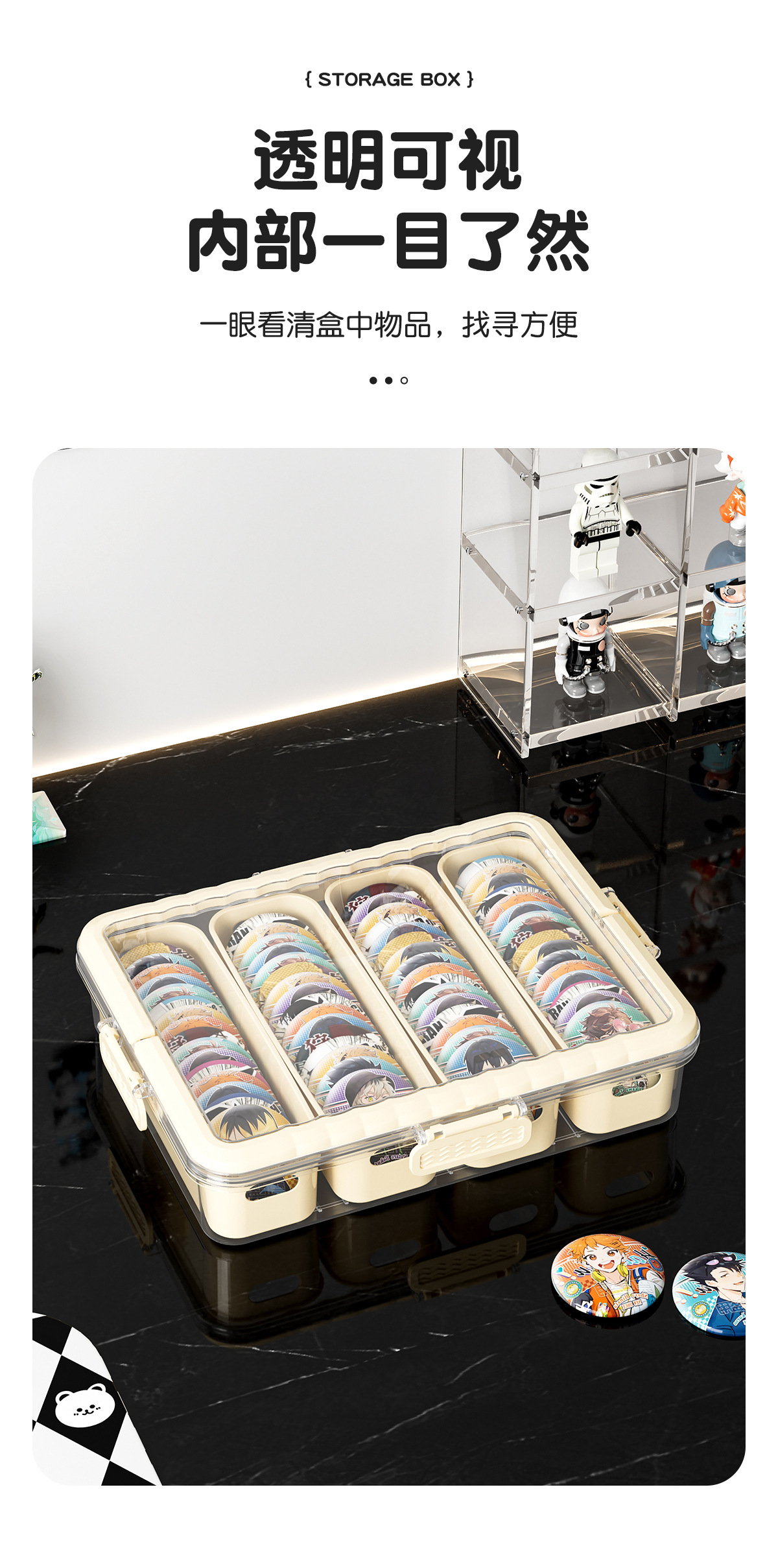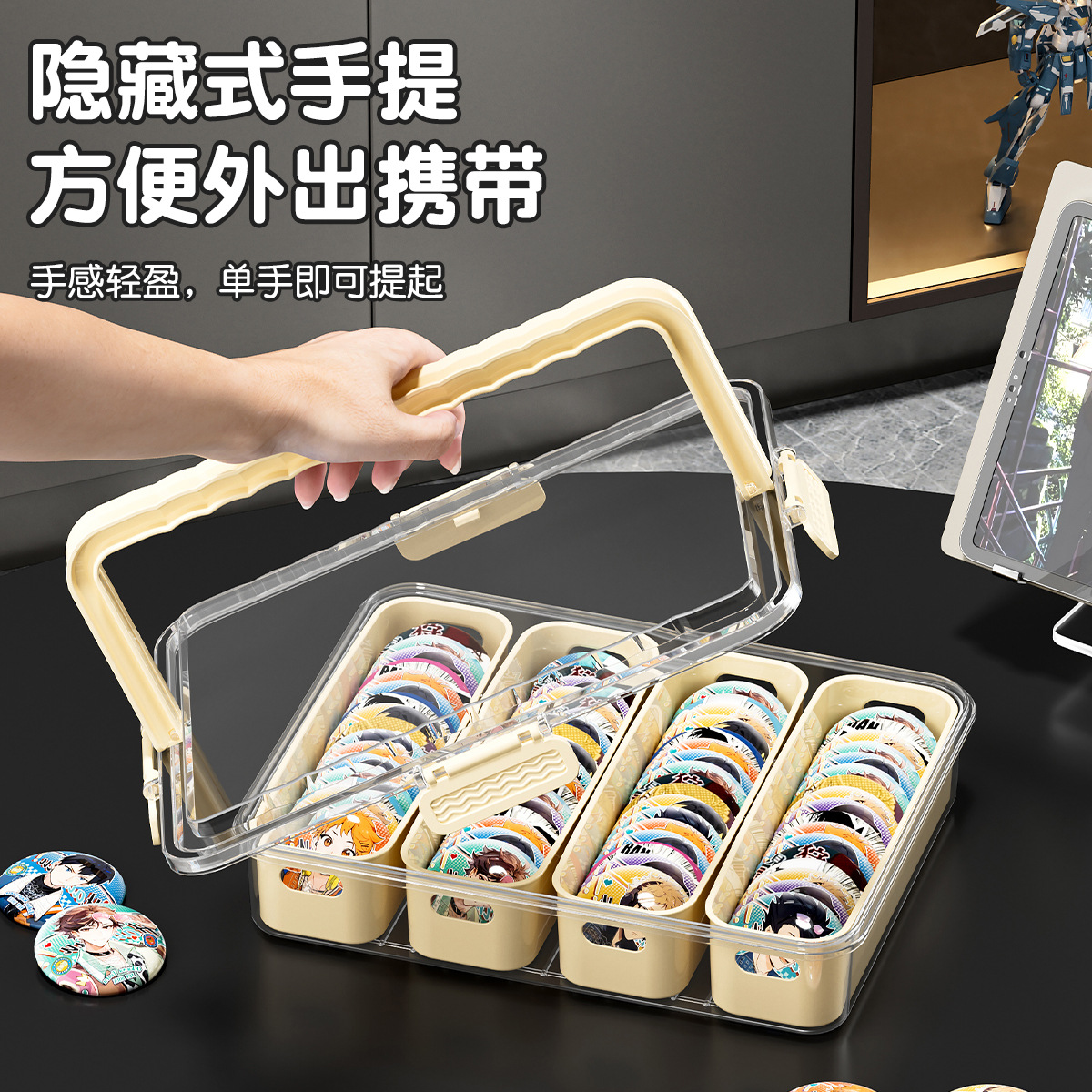 吧唧桌面收纳盒防尘防潮大容量带盖周边微章吃谷子卡片杂物收纳盒