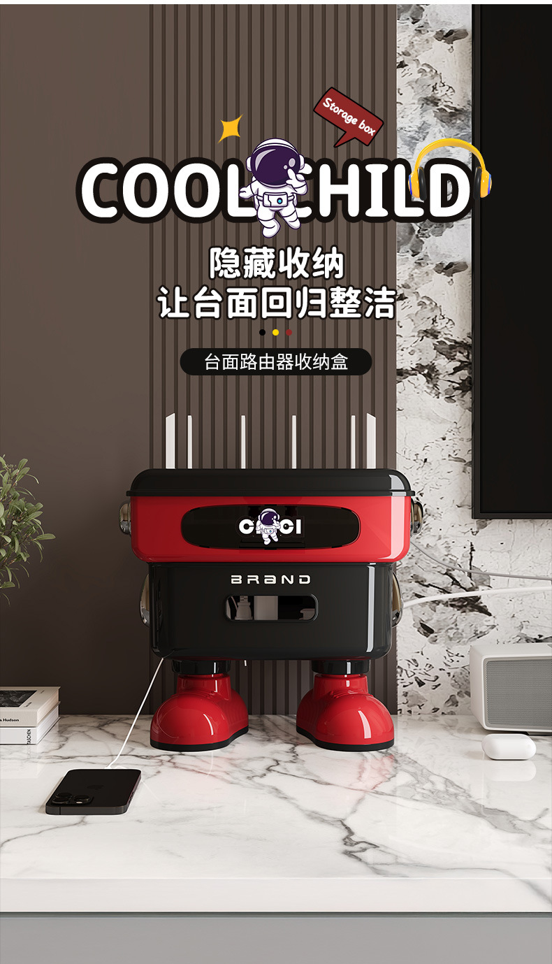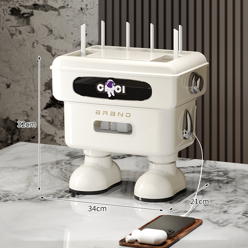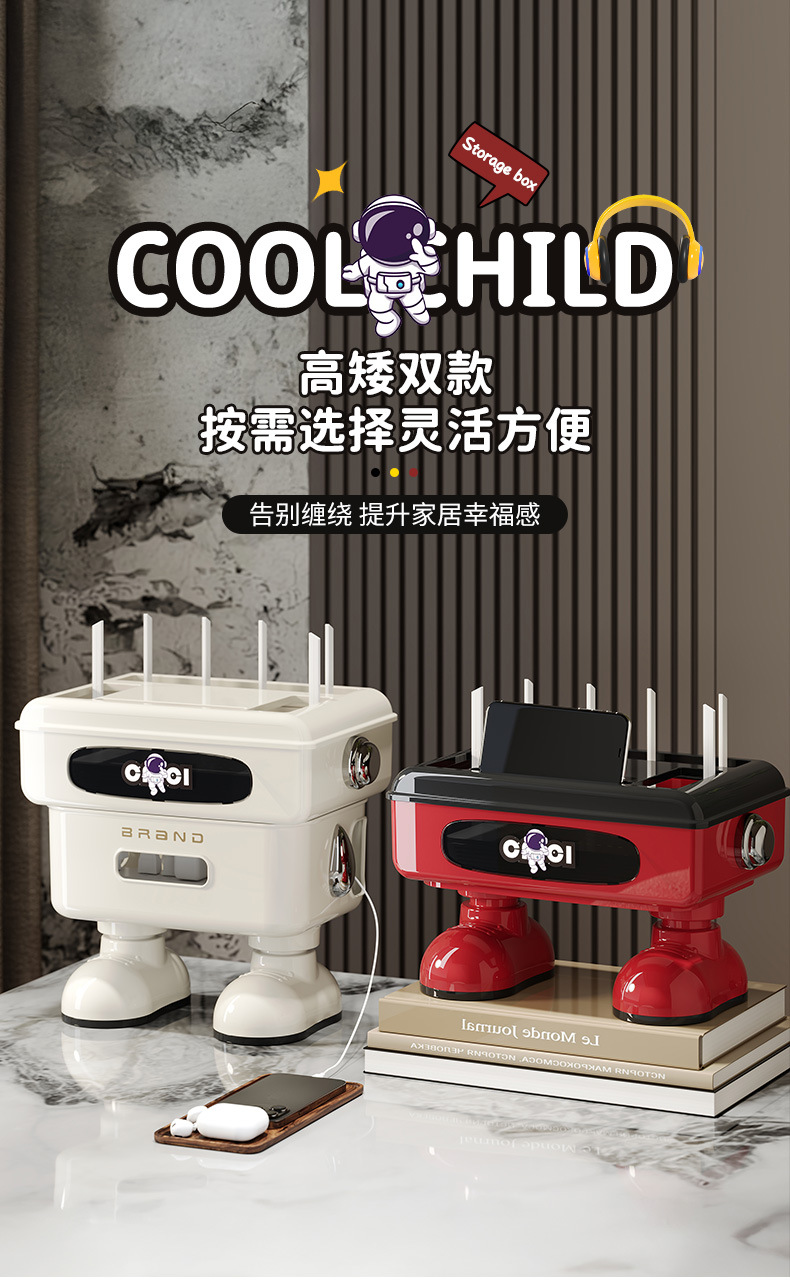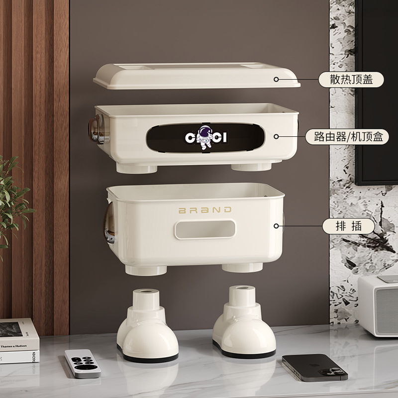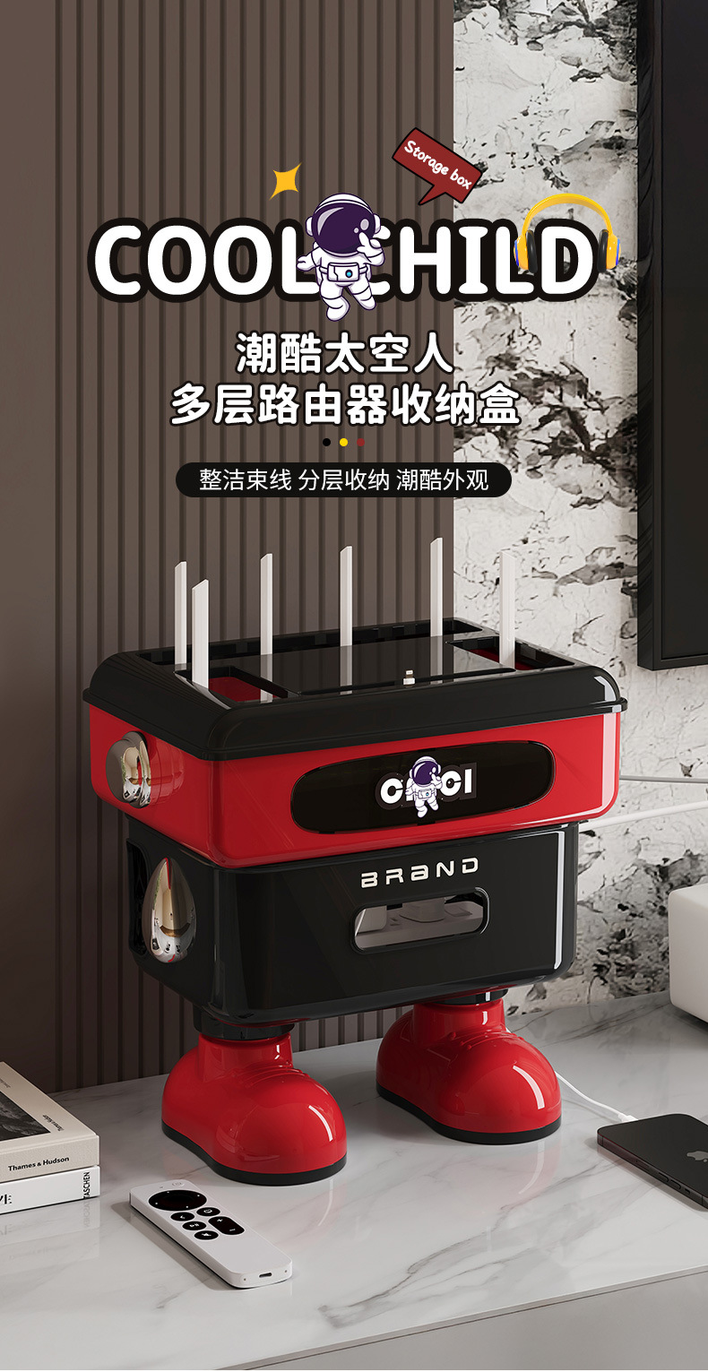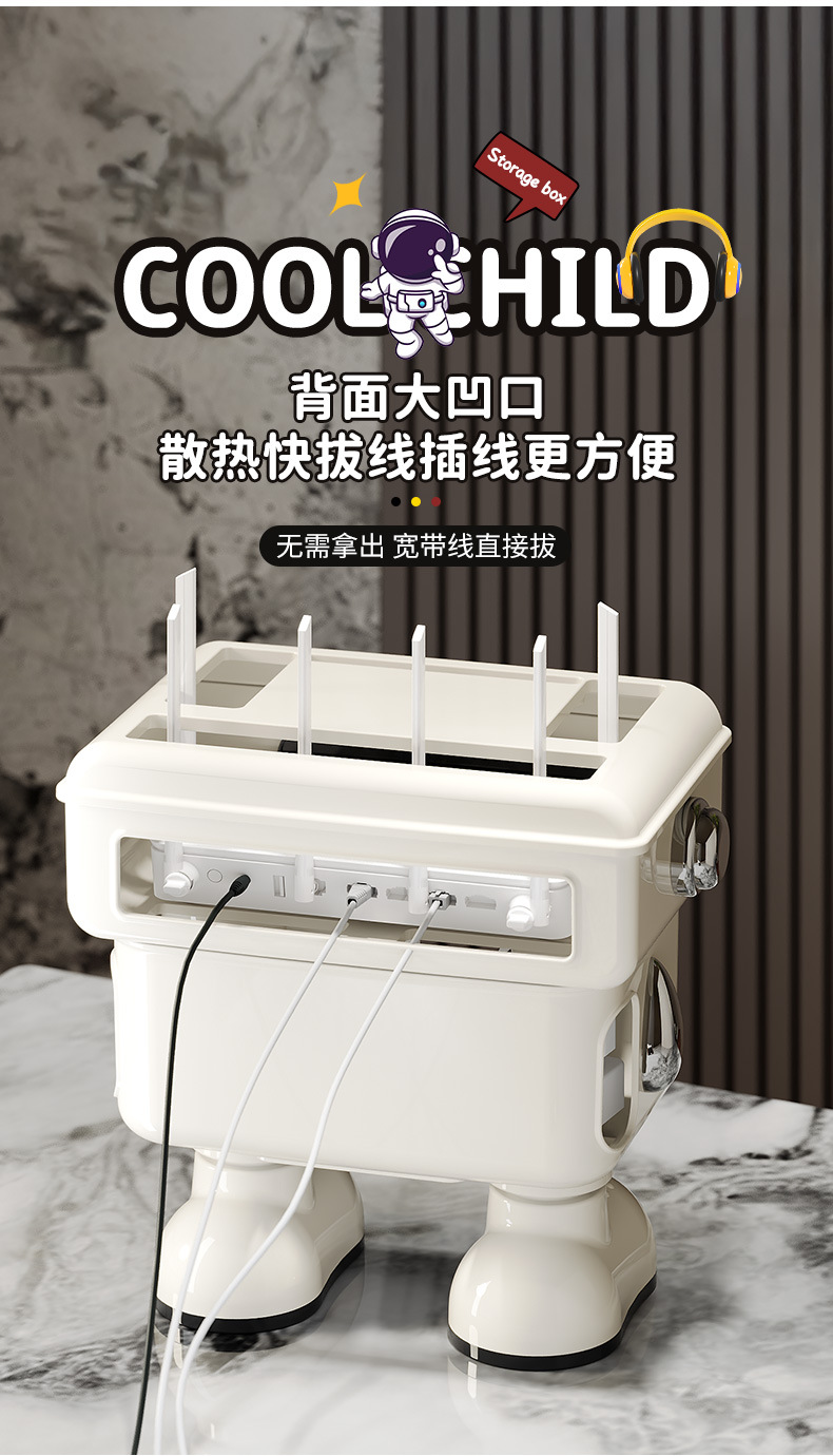 太空人形象款路由器收纳盒双层插线板收纳盒排插电线整理盒 塑料
