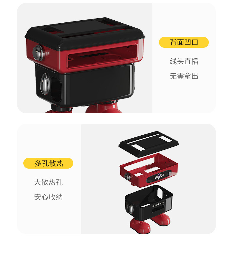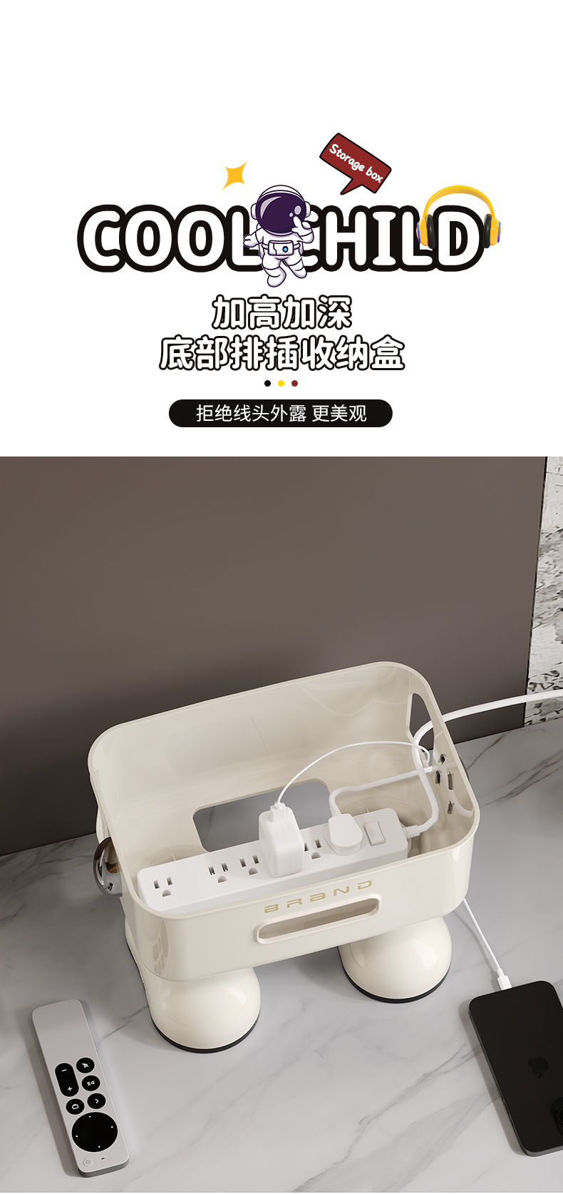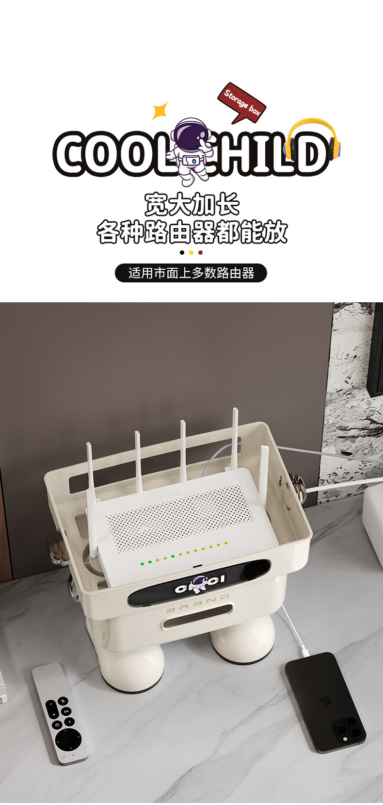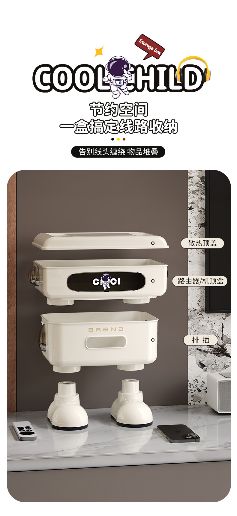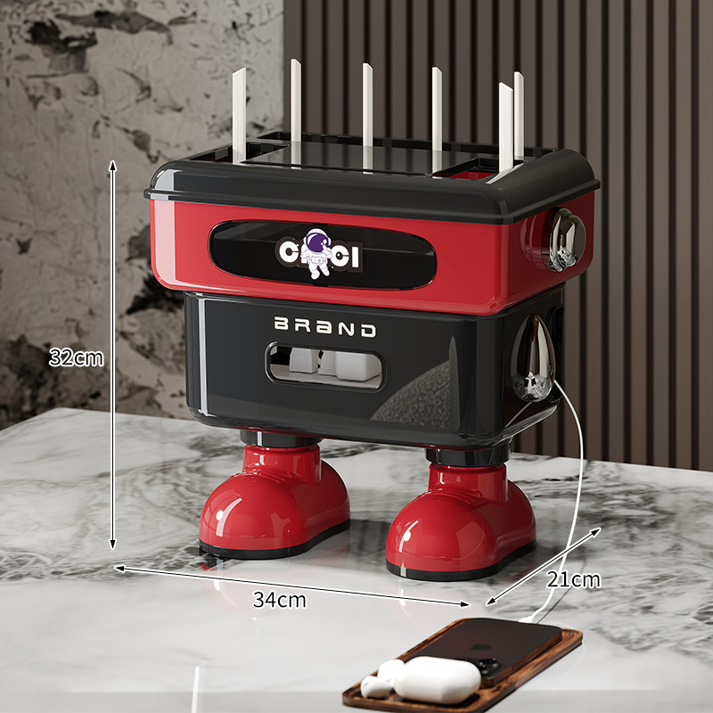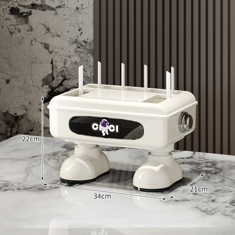 太空人形象款路由器收纳盒双层插线板收纳盒排插电线整理盒 塑料