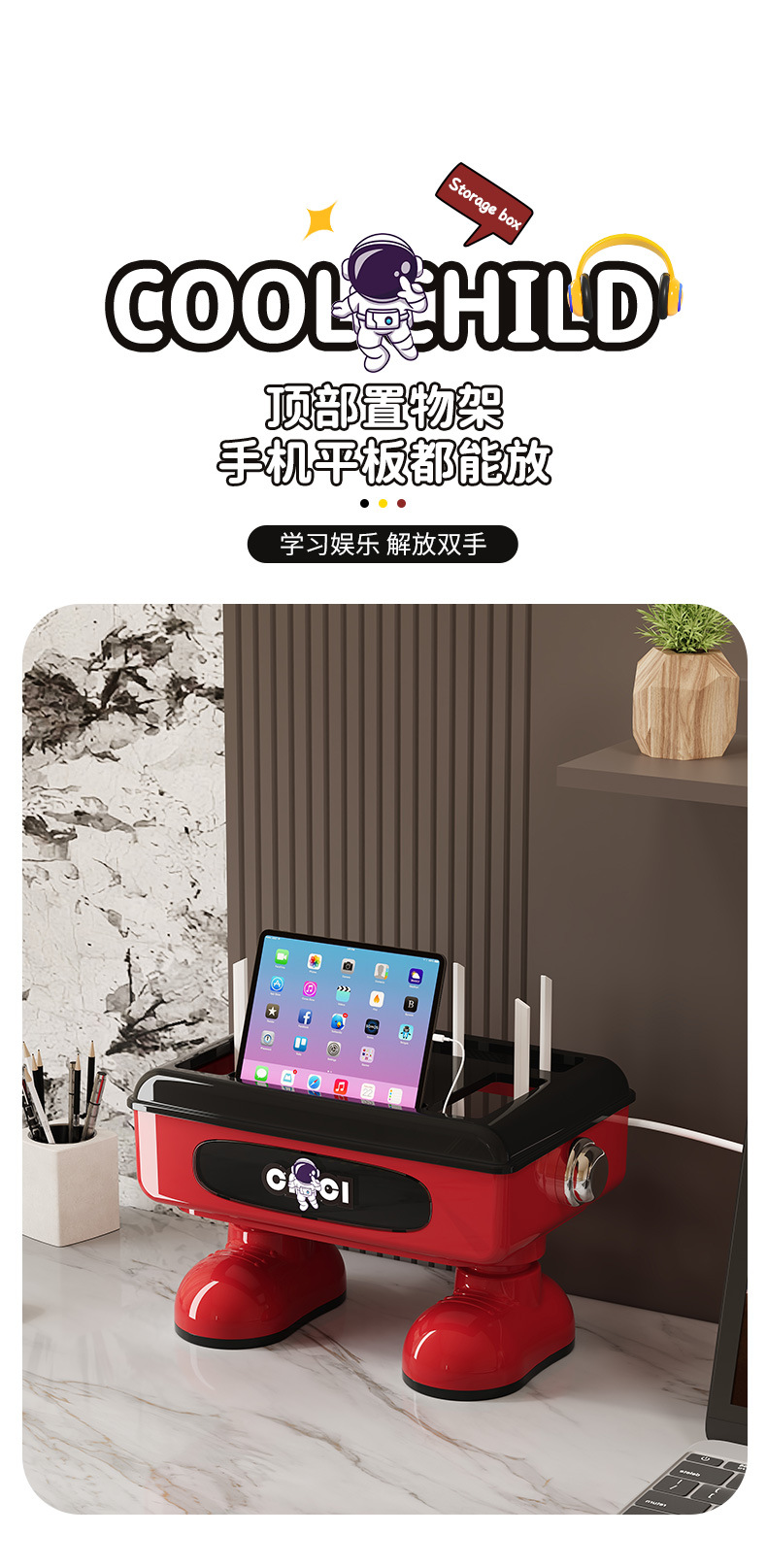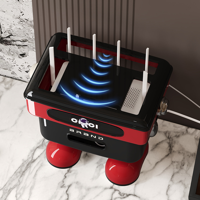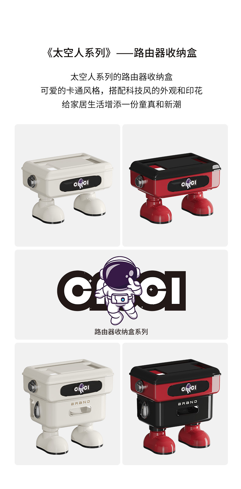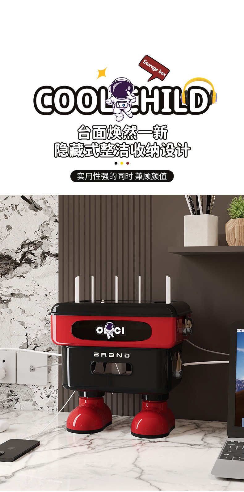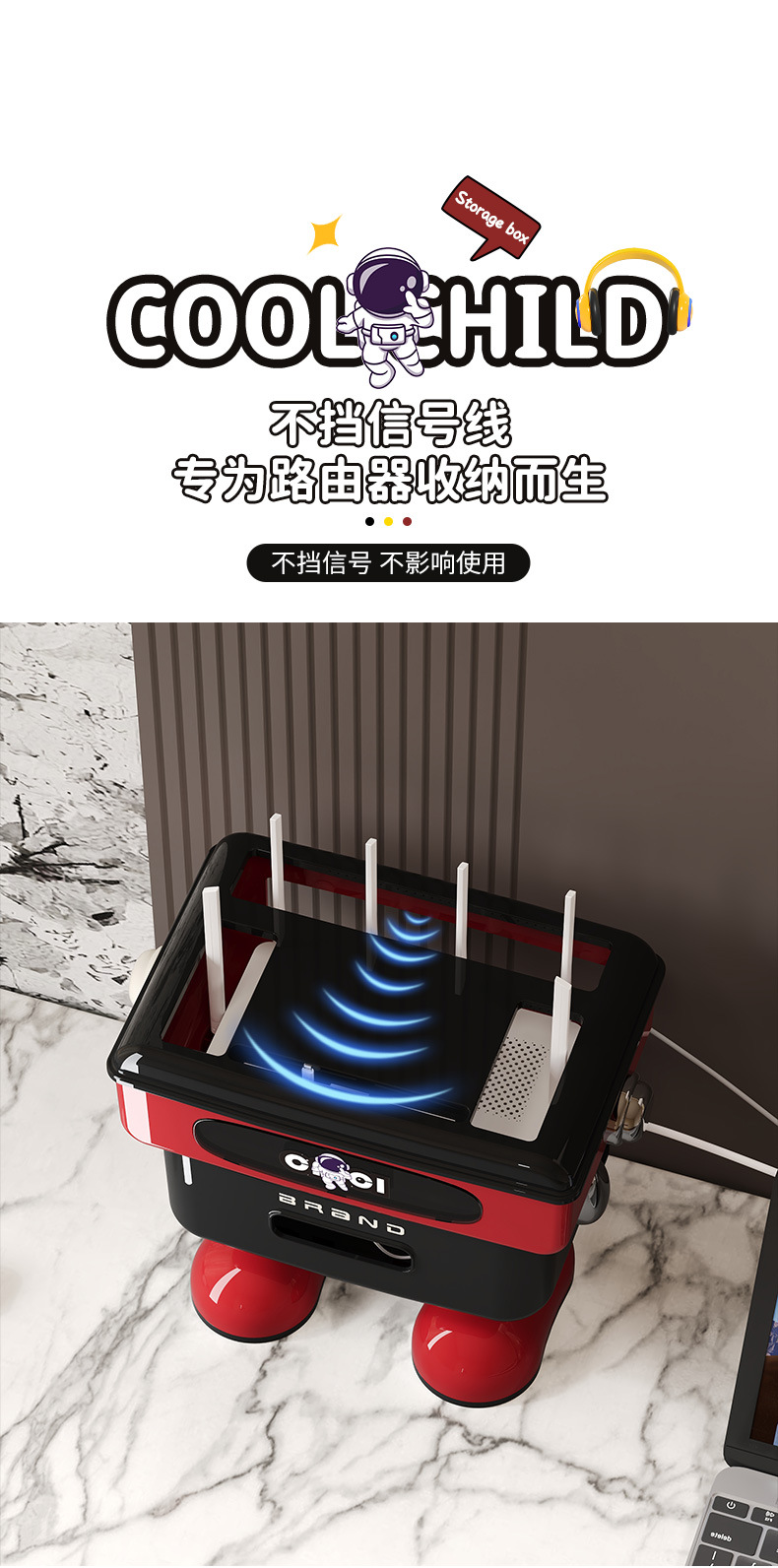 太空人形象款路由器收纳盒双层插线板收纳盒排插电线整理盒 塑料