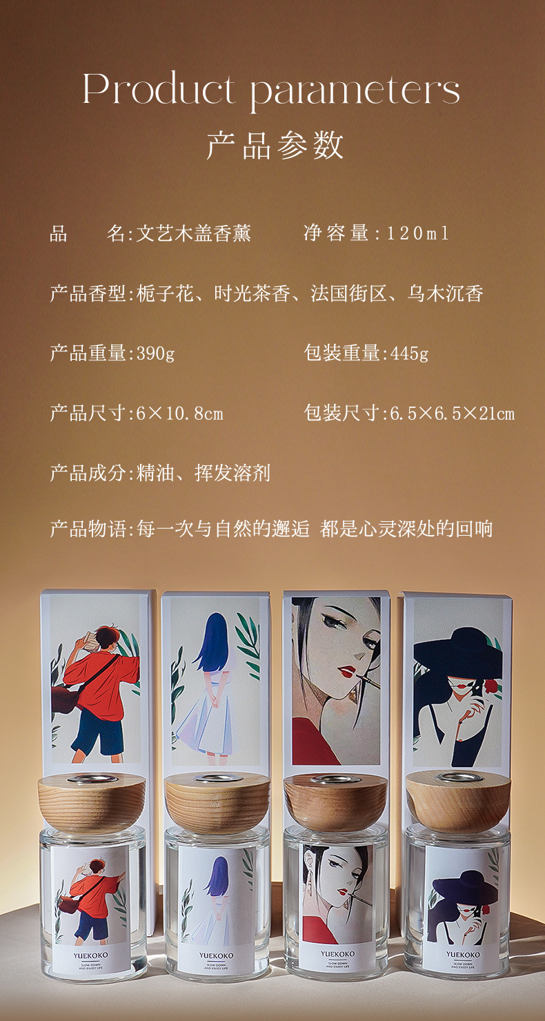香薰木盖无火香熏酒店卧室持久留香厕所去异味车载香氛伴手礼扩香