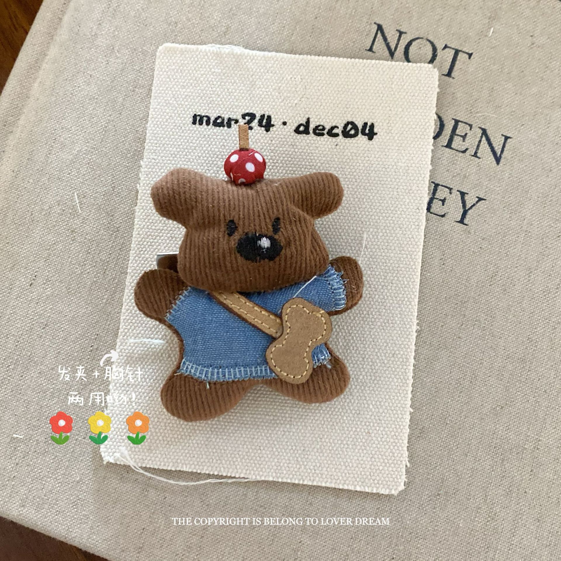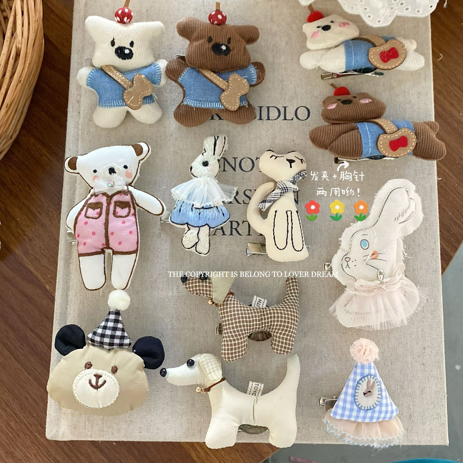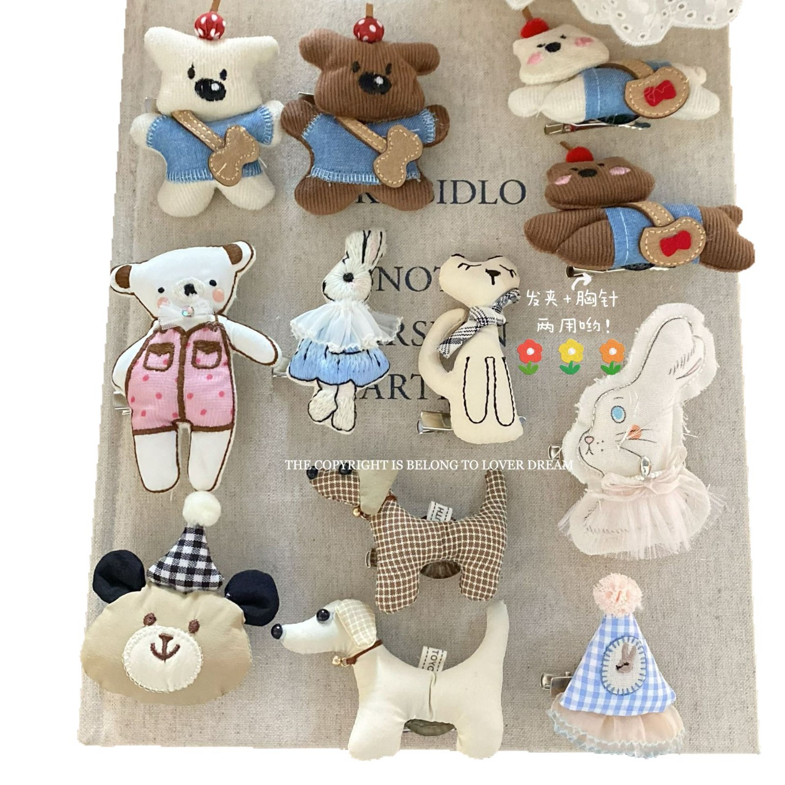 韩国ins新款玩偶公仔布艺小熊兔子胸针 甜美可爱两用鸭嘴夹衣饰女