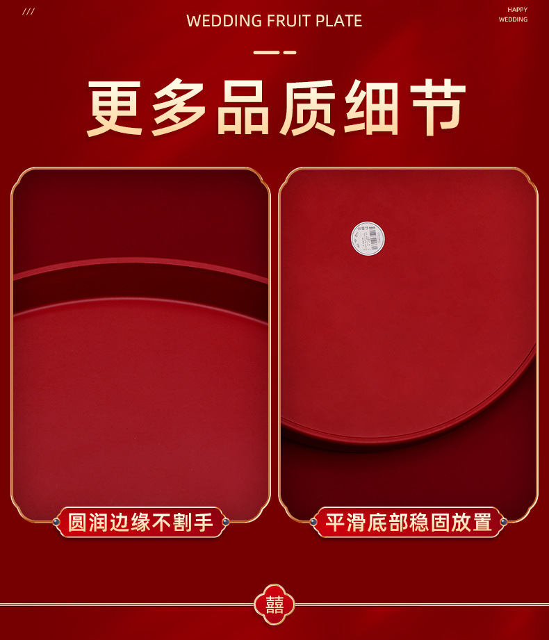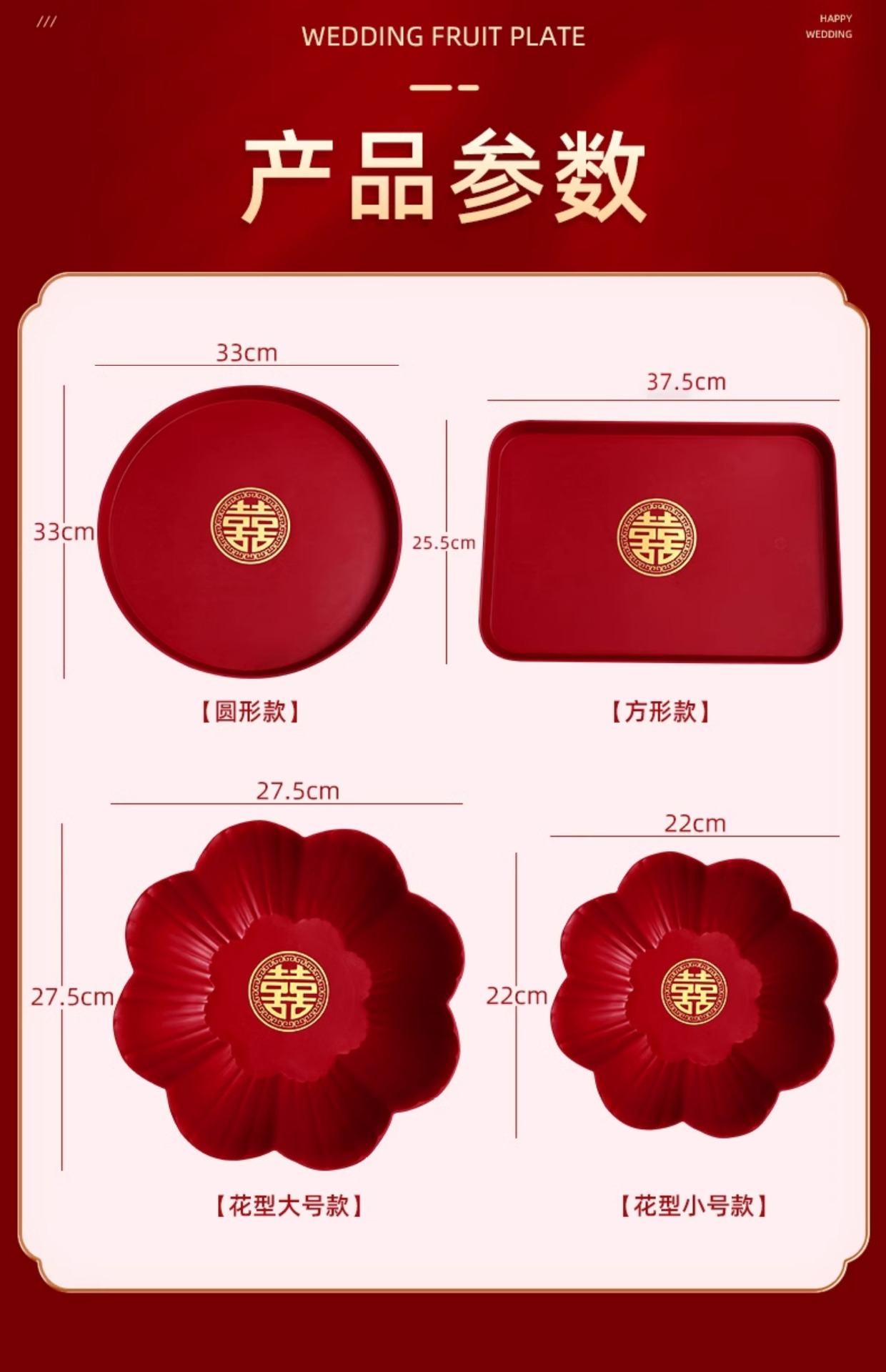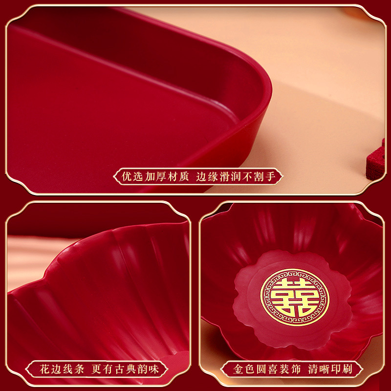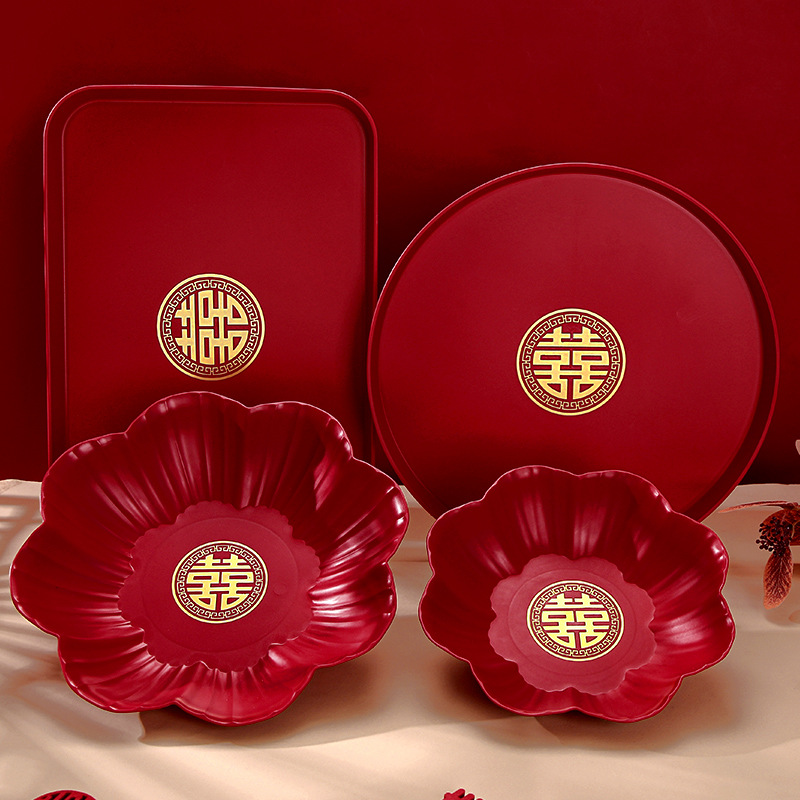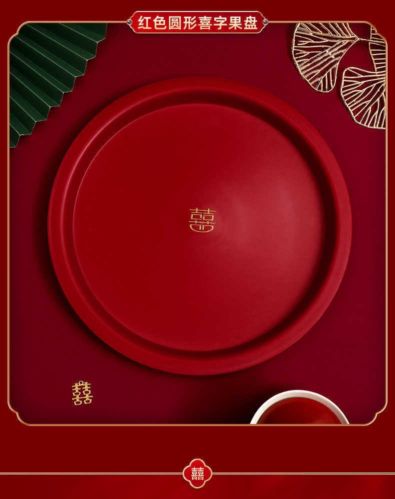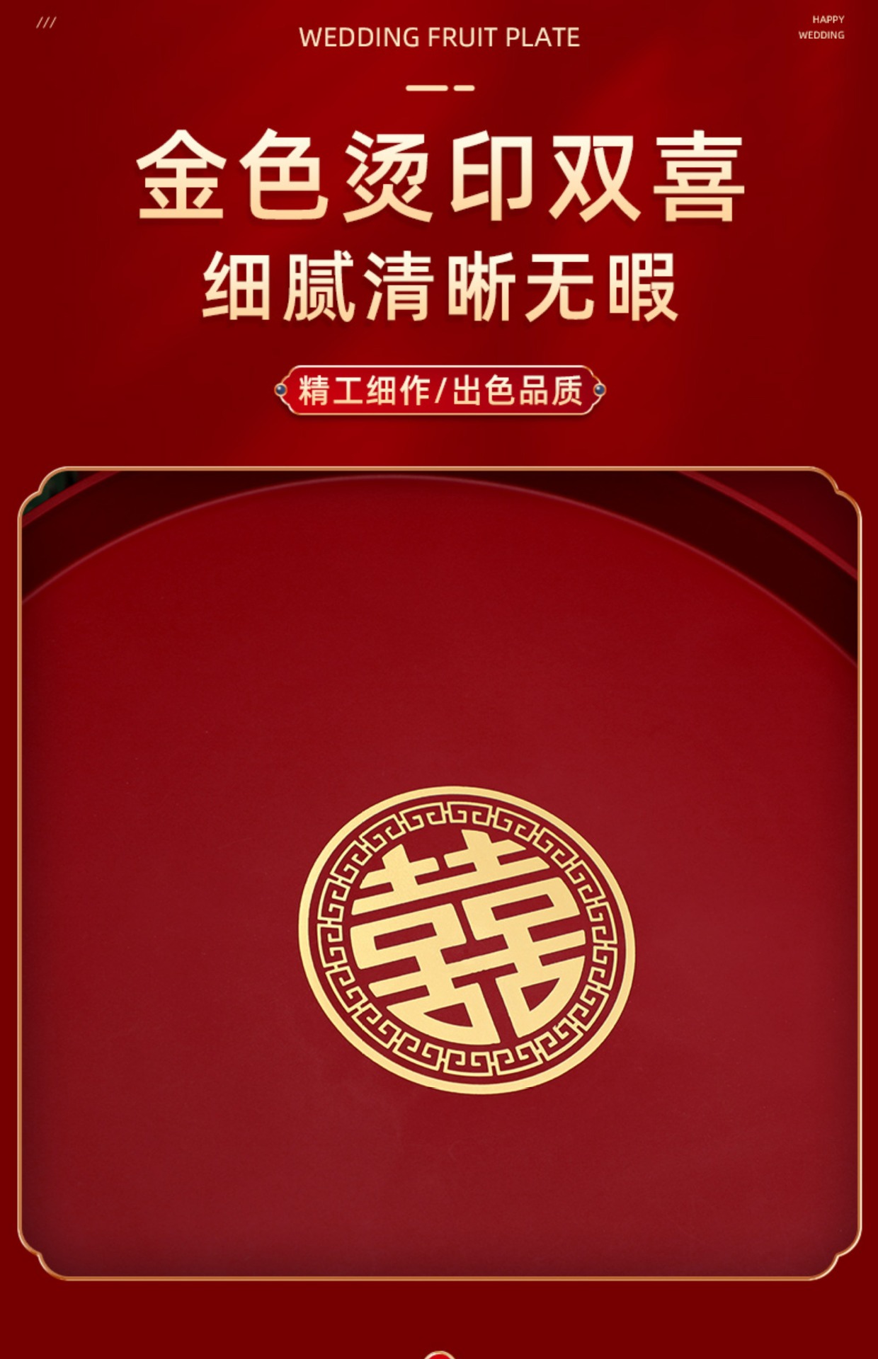 结婚托盘婚礼红色喜庆果盘婚宴喜字圆形敬茶盘婚庆用品方形喜糖盘