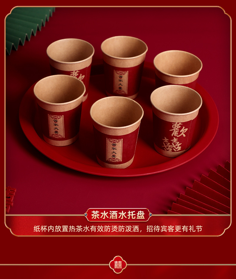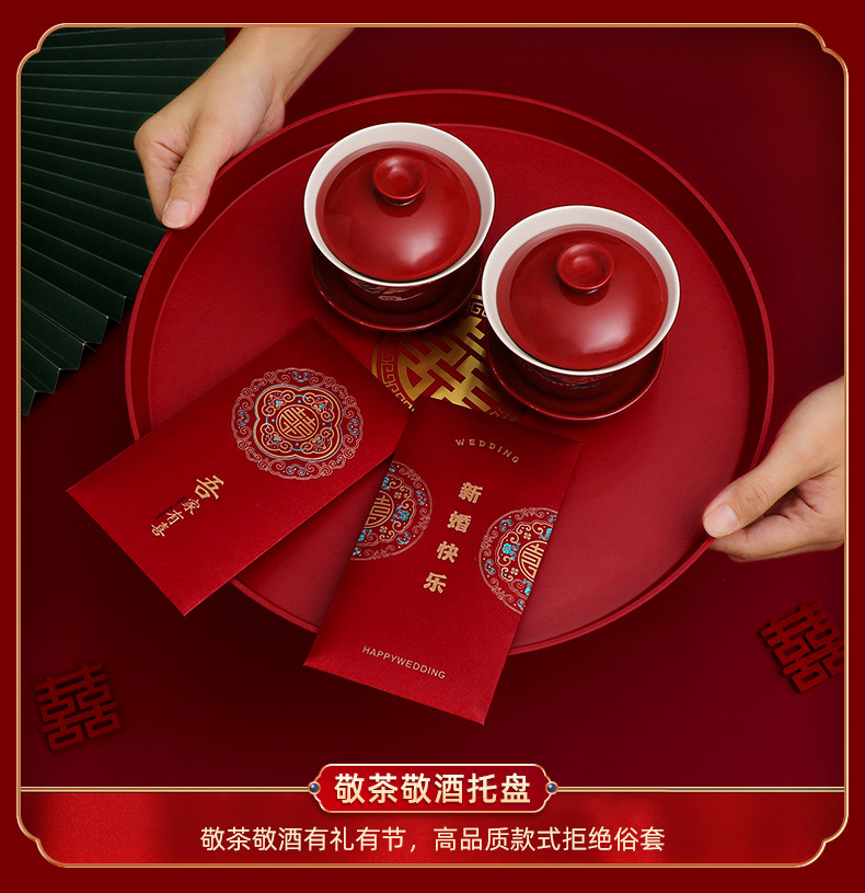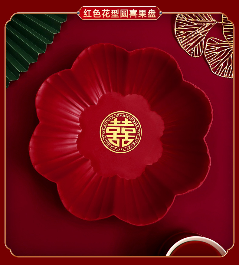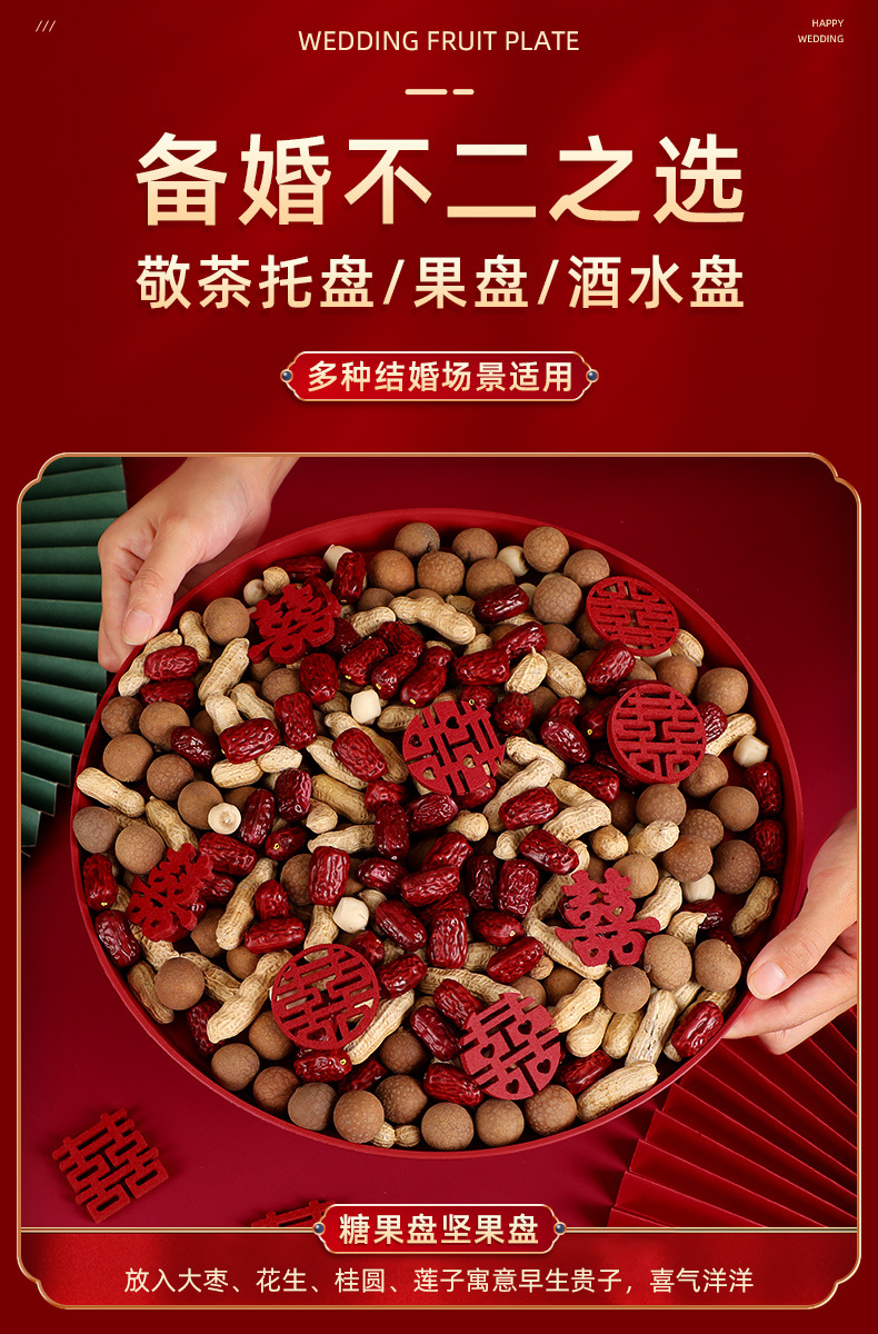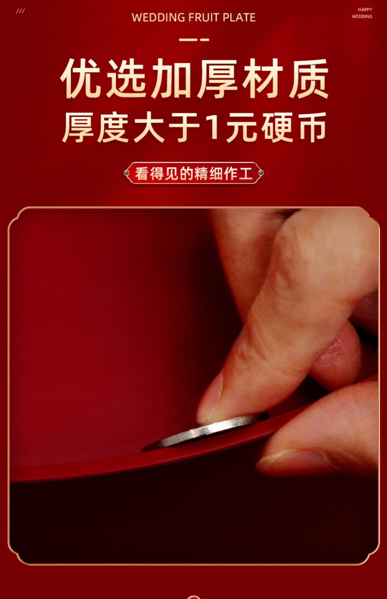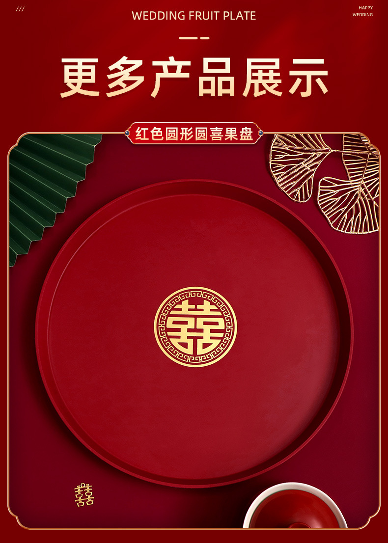 结婚托盘婚礼红色喜庆果盘婚宴喜字圆形敬茶盘婚庆用品方形喜糖盘