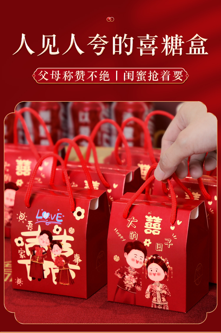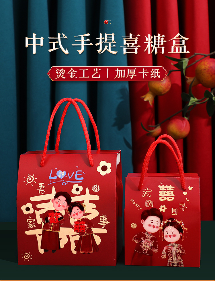 6.5元50个糖盒结婚喜糖盒礼盒婚礼手提喜糖袋伴手礼糖果回礼袋子