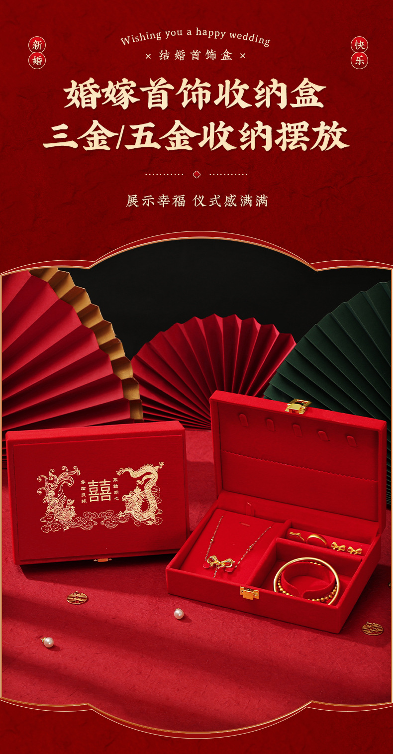 结婚订婚首饰盒男方黄金金器彩礼钱盒子三金五金礼盒婚庆用品大全