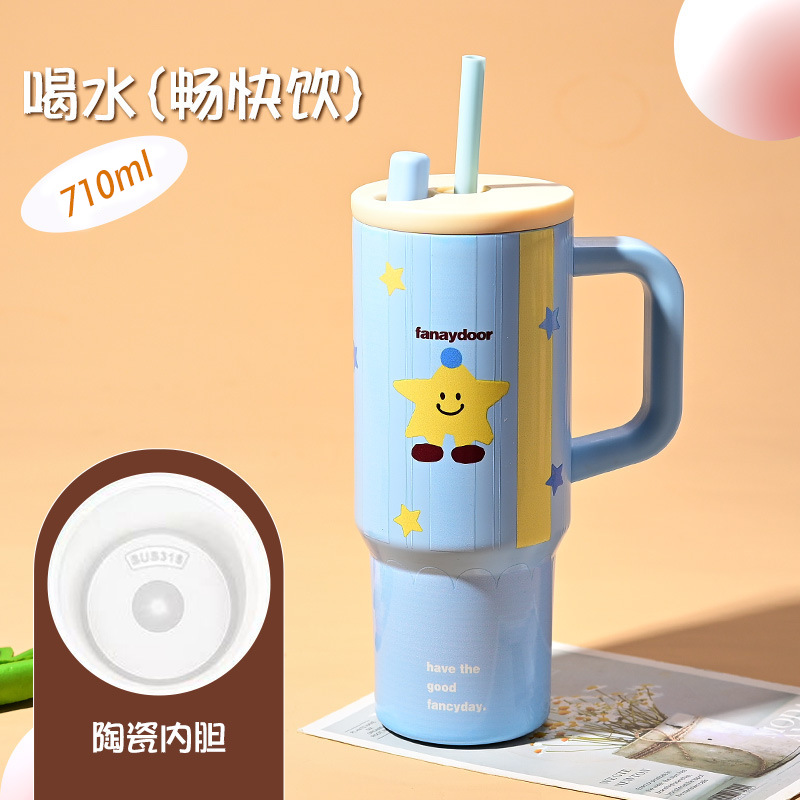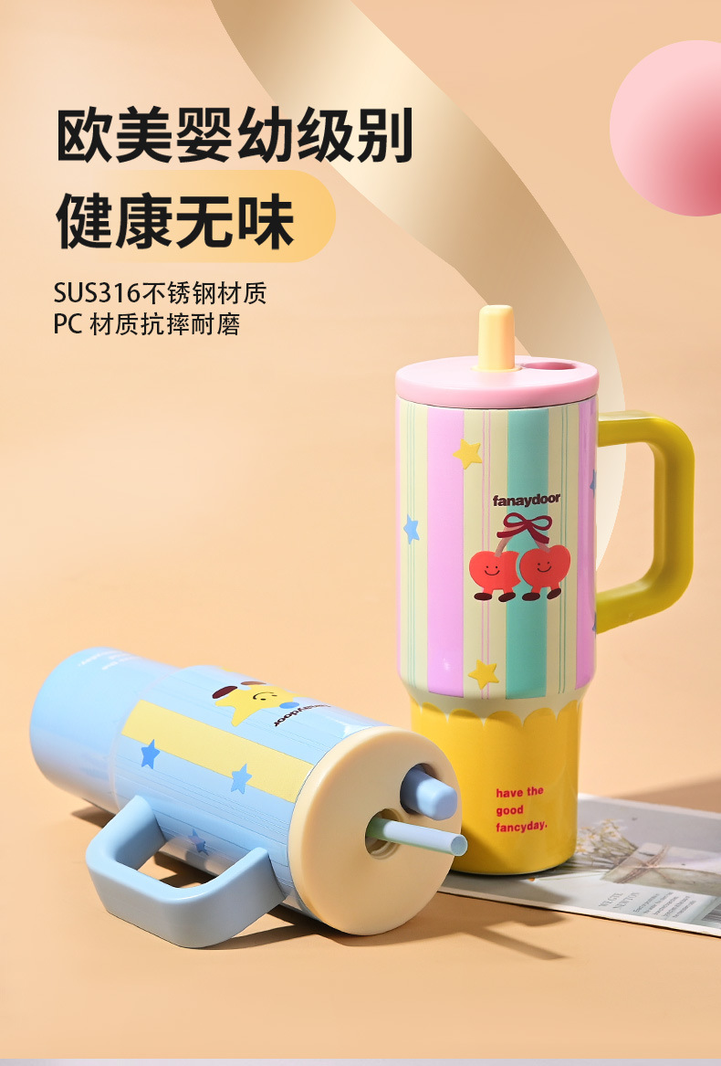 新款吨吨冰霸杯女生高颜值吸管杯随行保温杯户外车载汽车杯带手柄