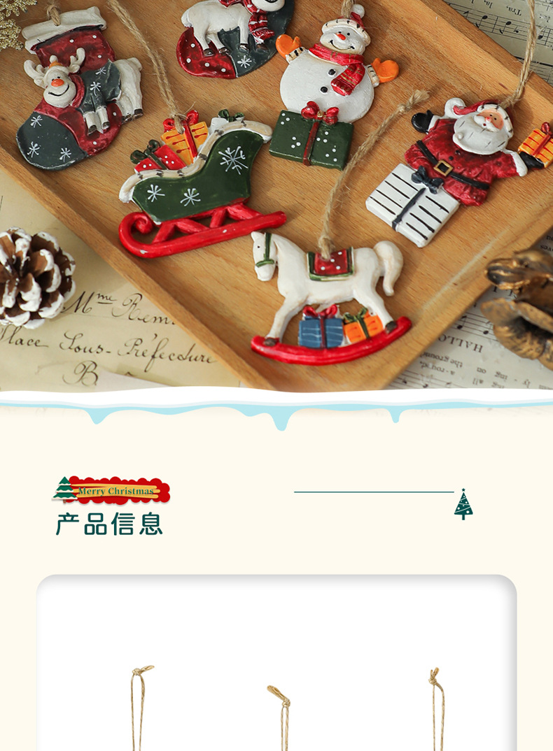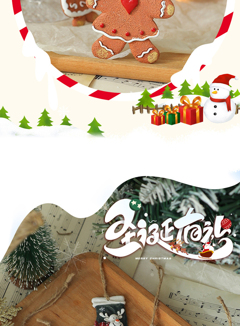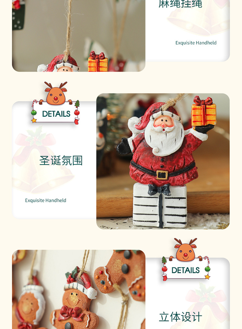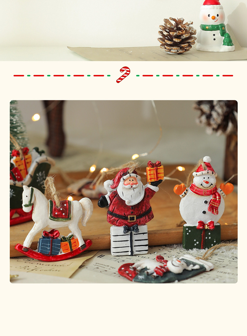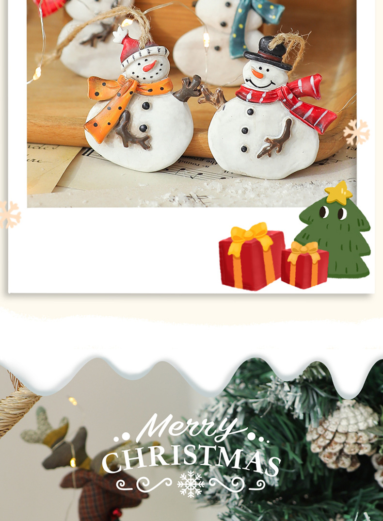 美式复古圣诞树脂小挂件圣诞雪人拐杖礼物包桌面圣诞树装饰挂串