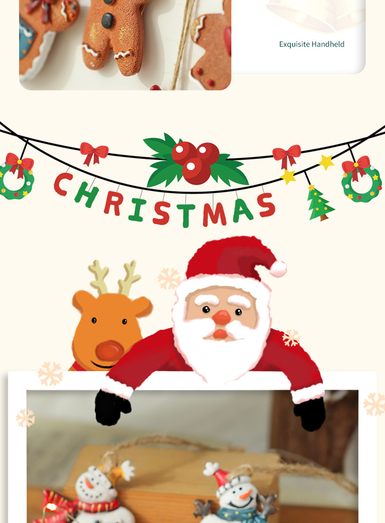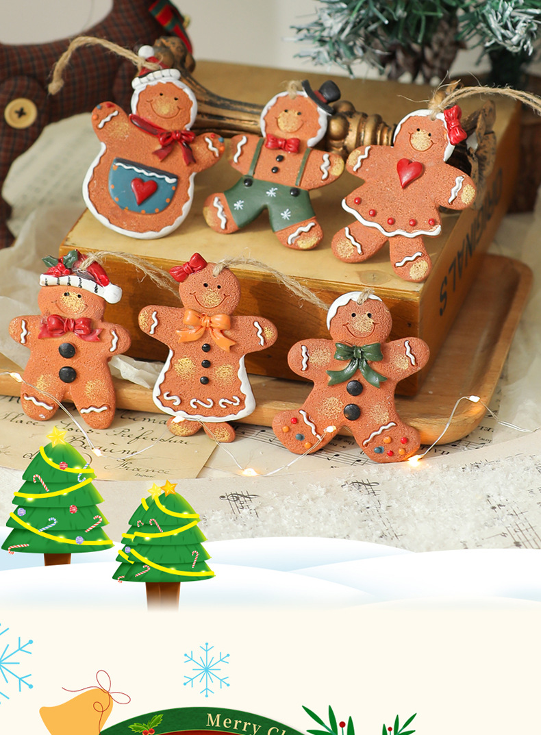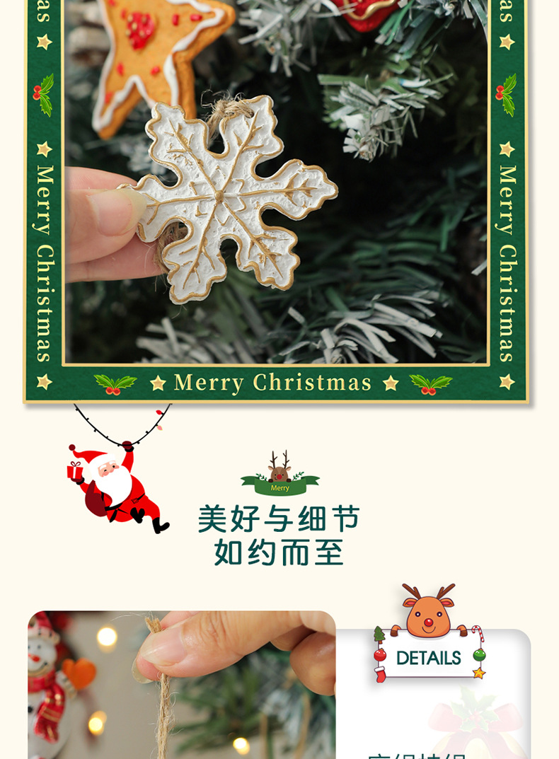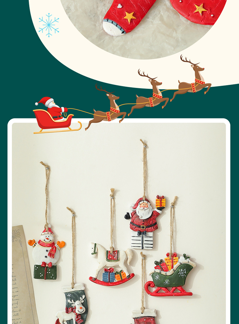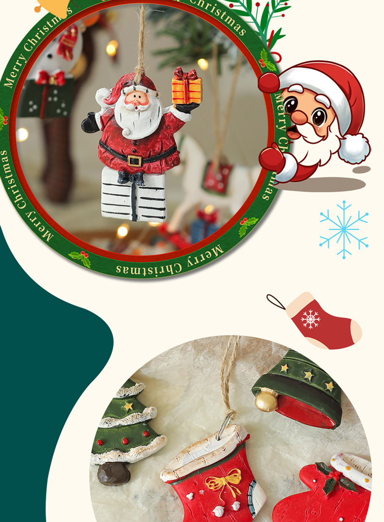 美式复古圣诞树脂小挂件圣诞雪人拐杖礼物包桌面圣诞树装饰挂串