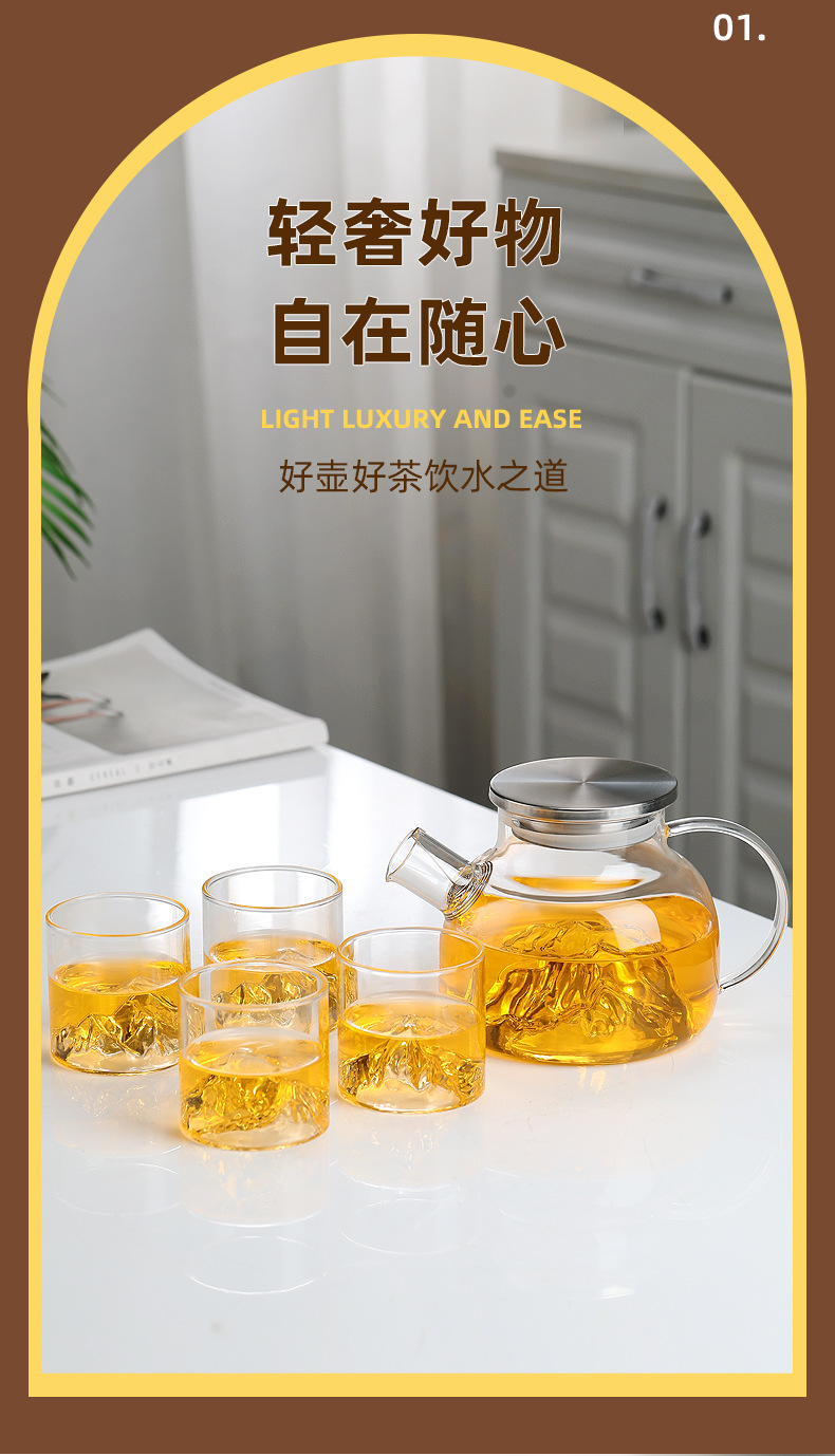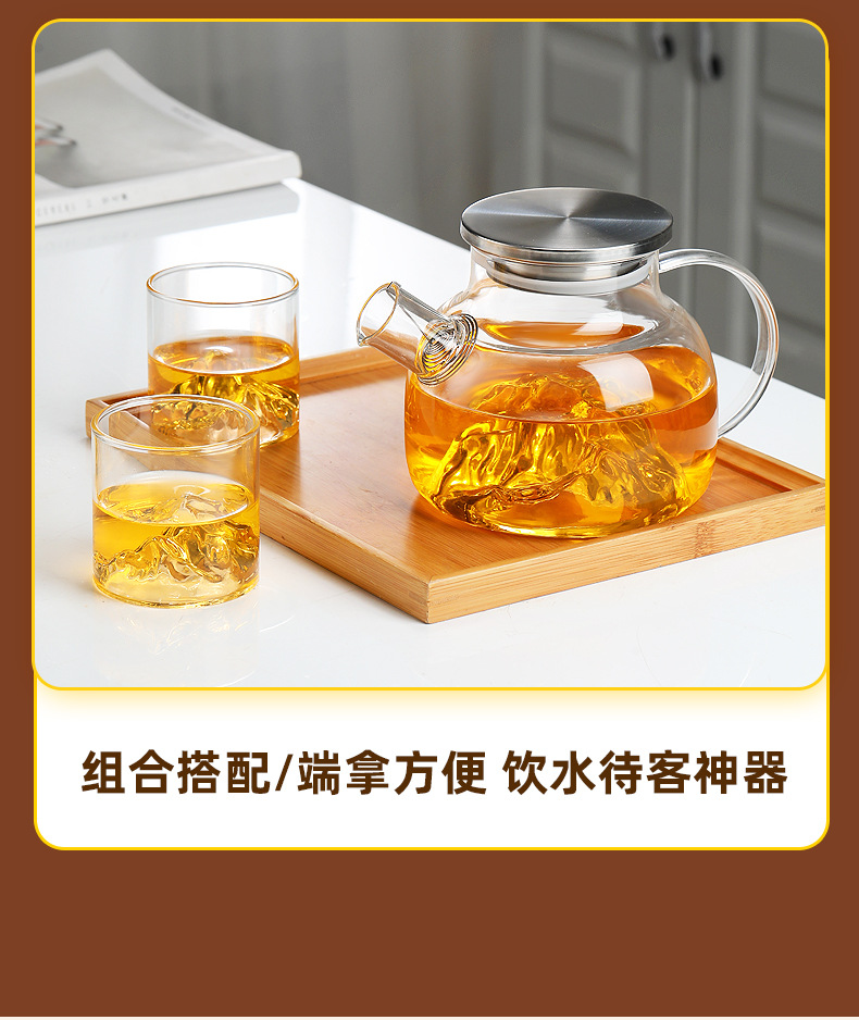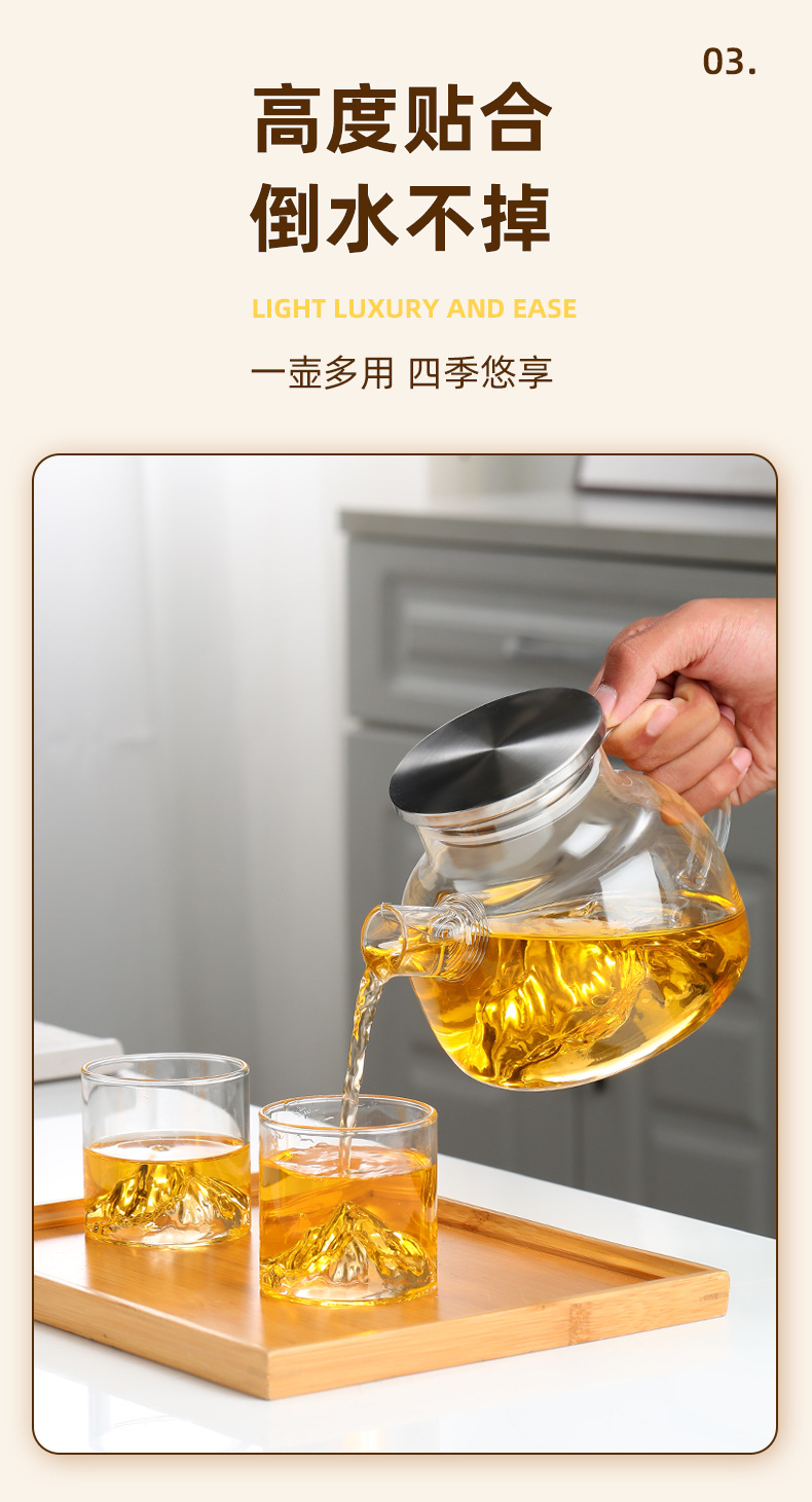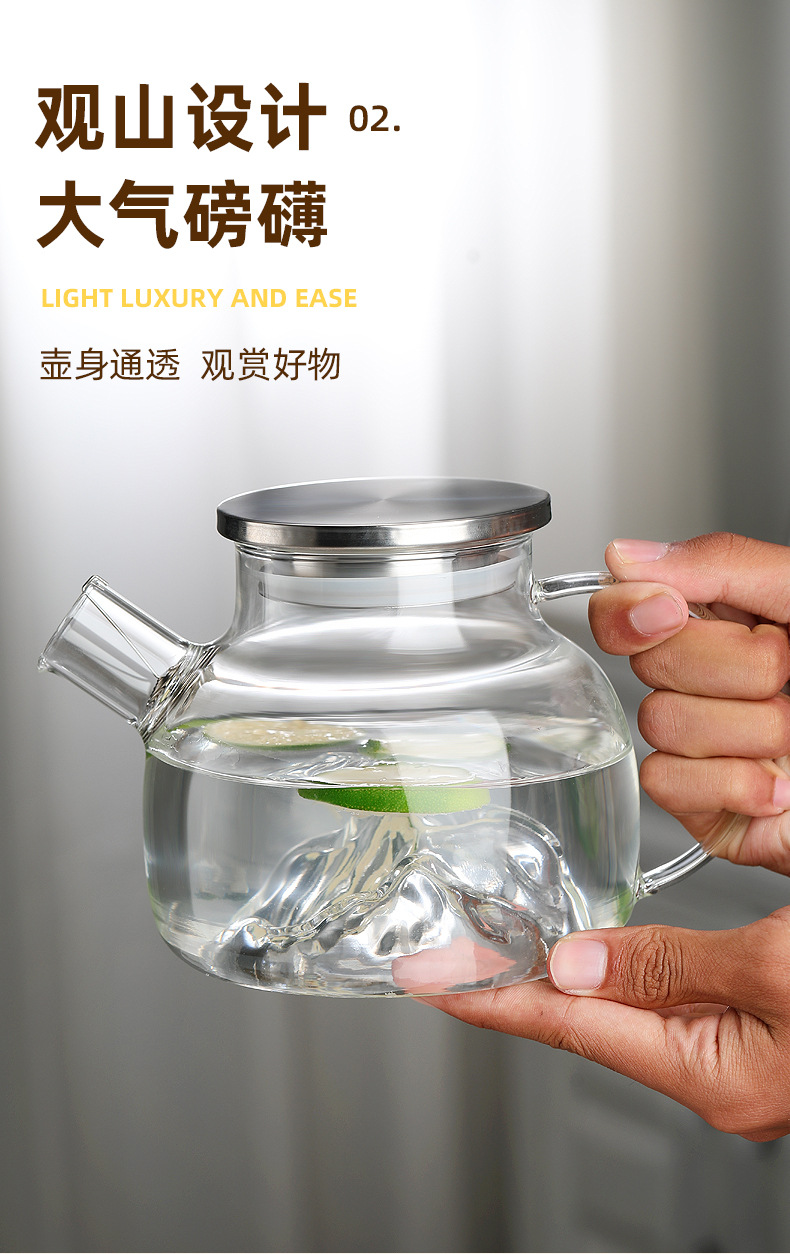 日式观山玻璃冷水壶家用防爆耐高温大容量花茶壶煮茶壶开水壶套装