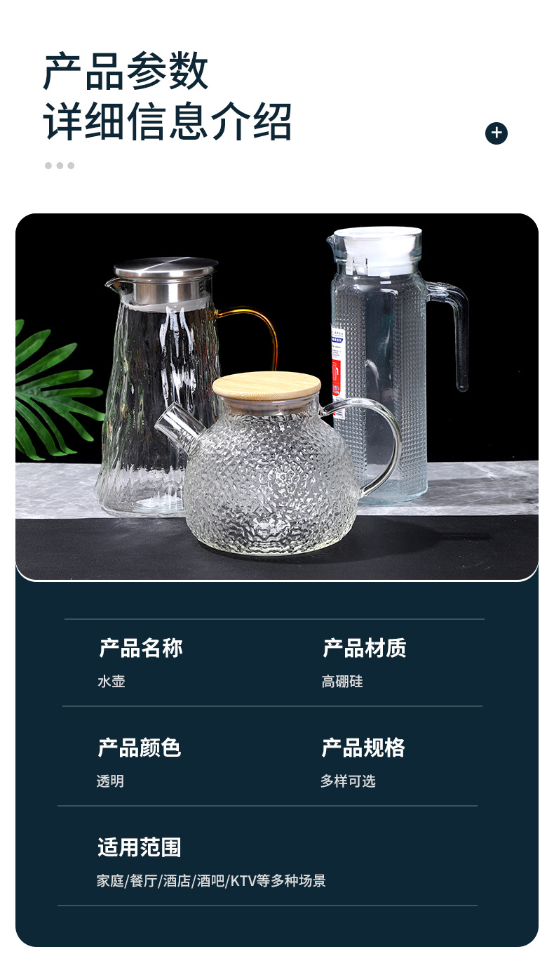 批发耐热玻璃水壶大容量凉水壶夏季煮茶壶高硼硅热水壶冷水冷泡