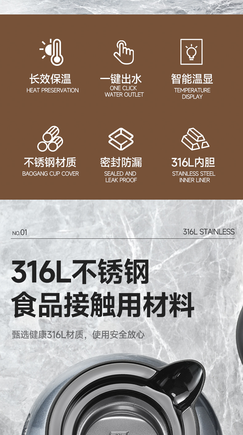 琪虎保温壶大容量316不锈钢保温水壶2升家用热水瓶暖壶焖茶壶刻字