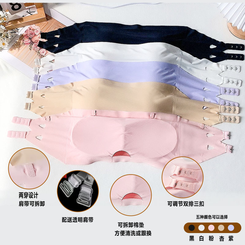 爆款一片式无痕美背抹胸无肩带单三排扣无钢圈裹胸性感少女内衣夏