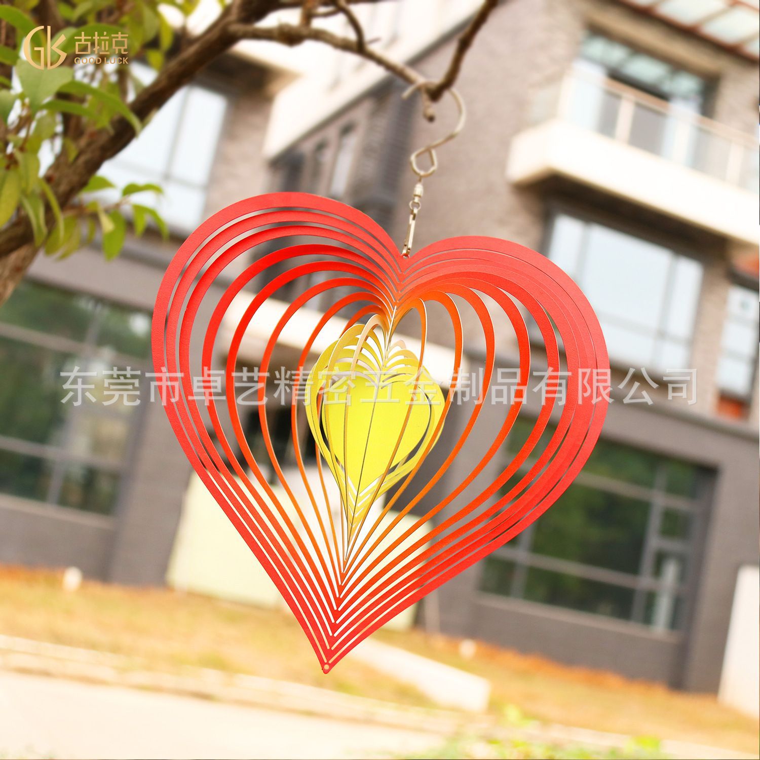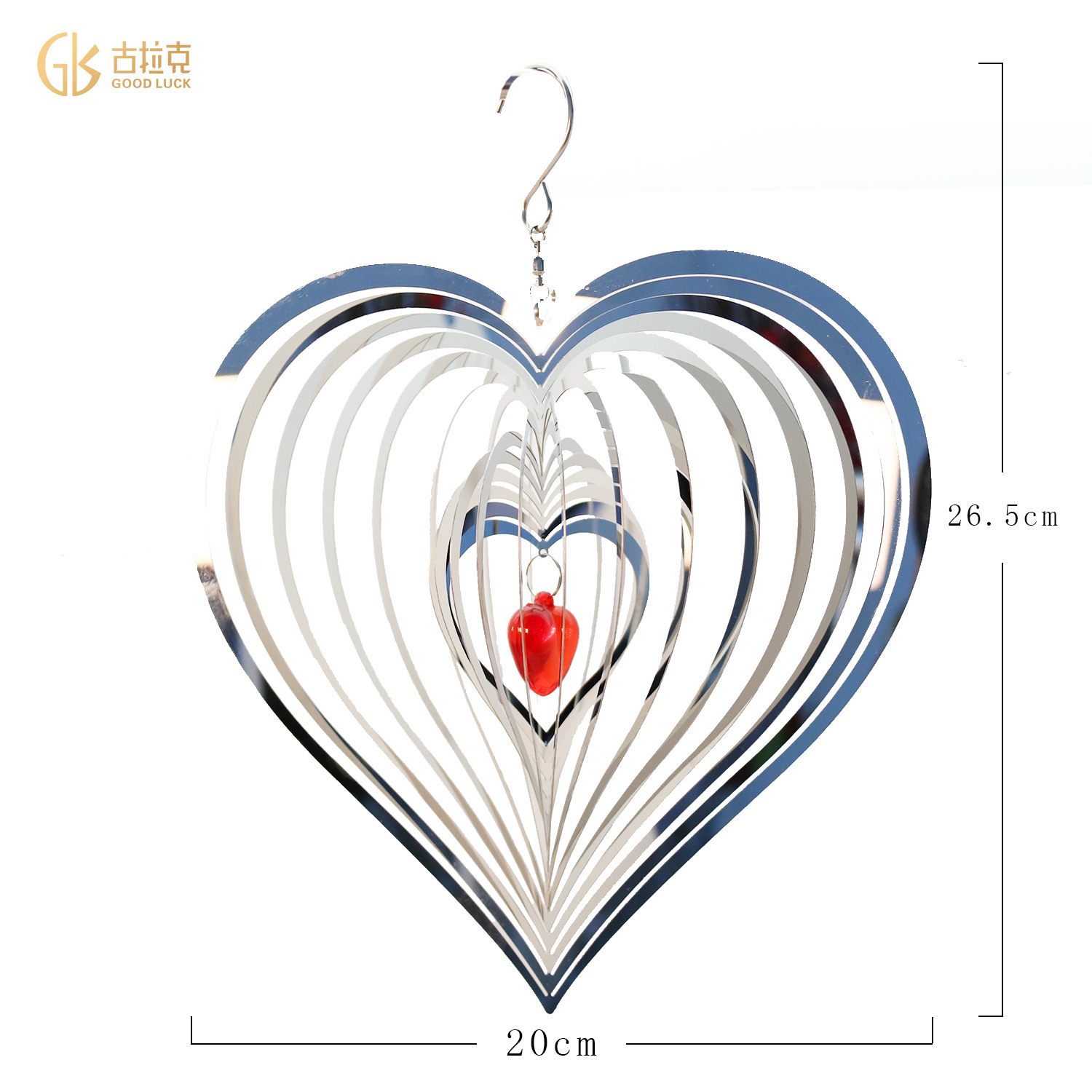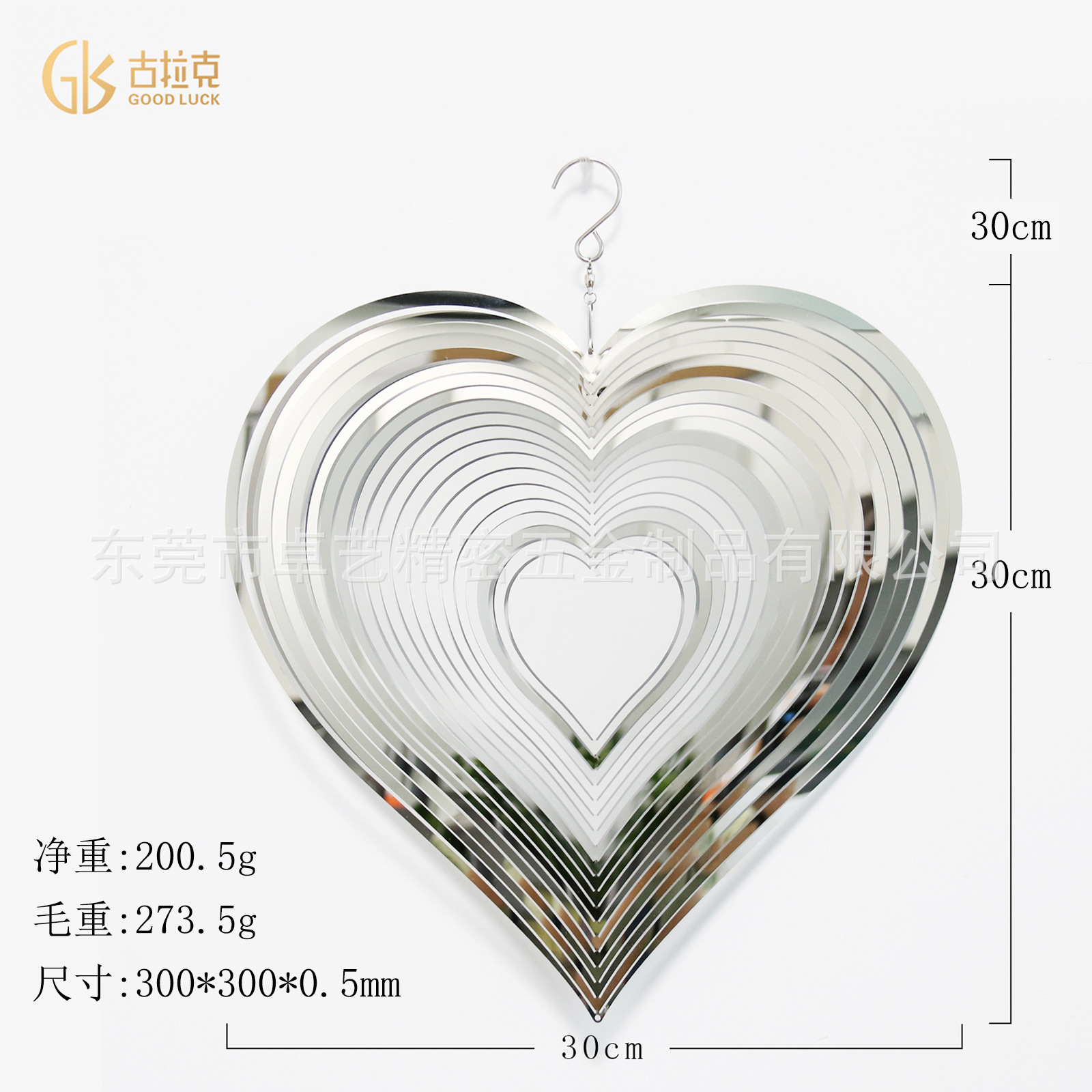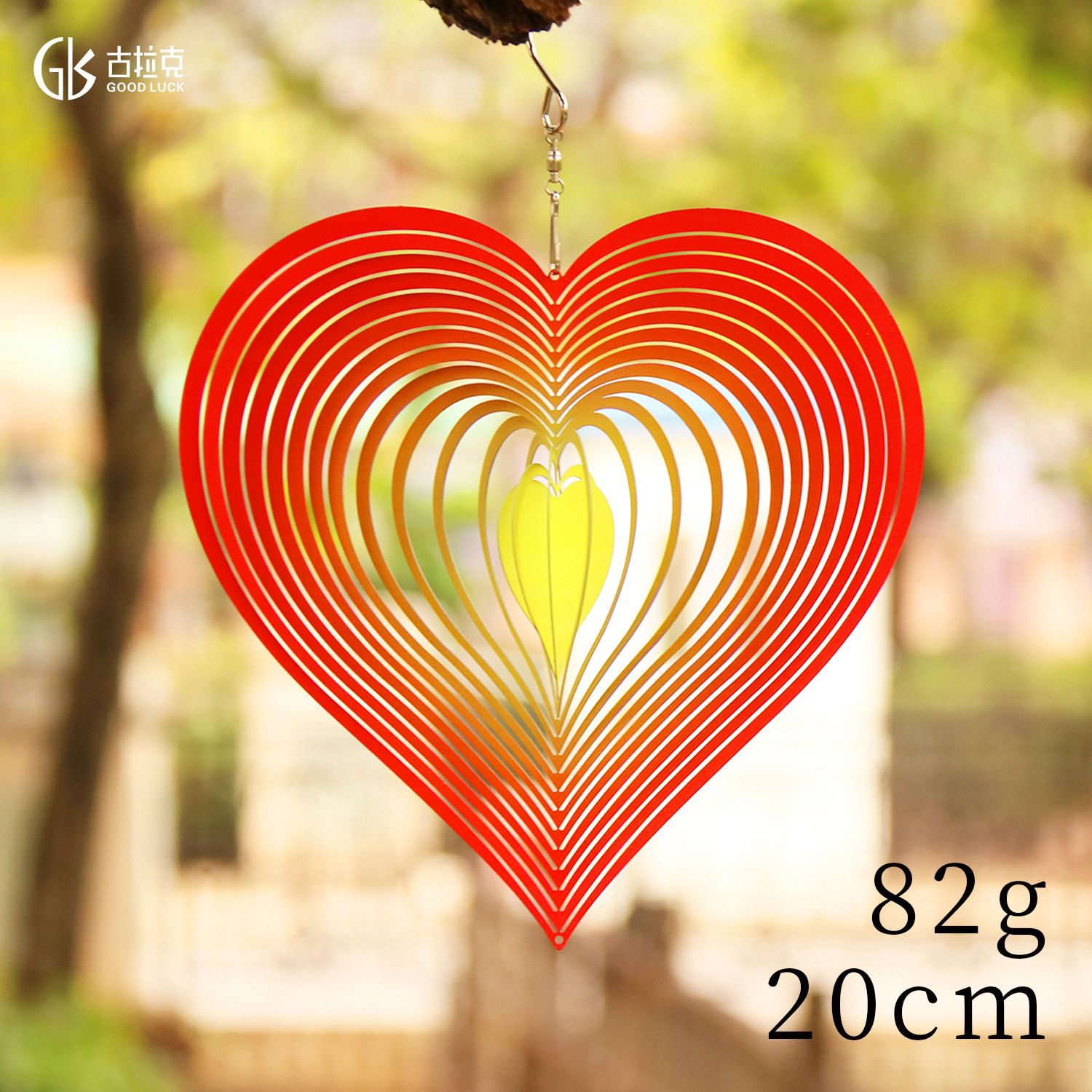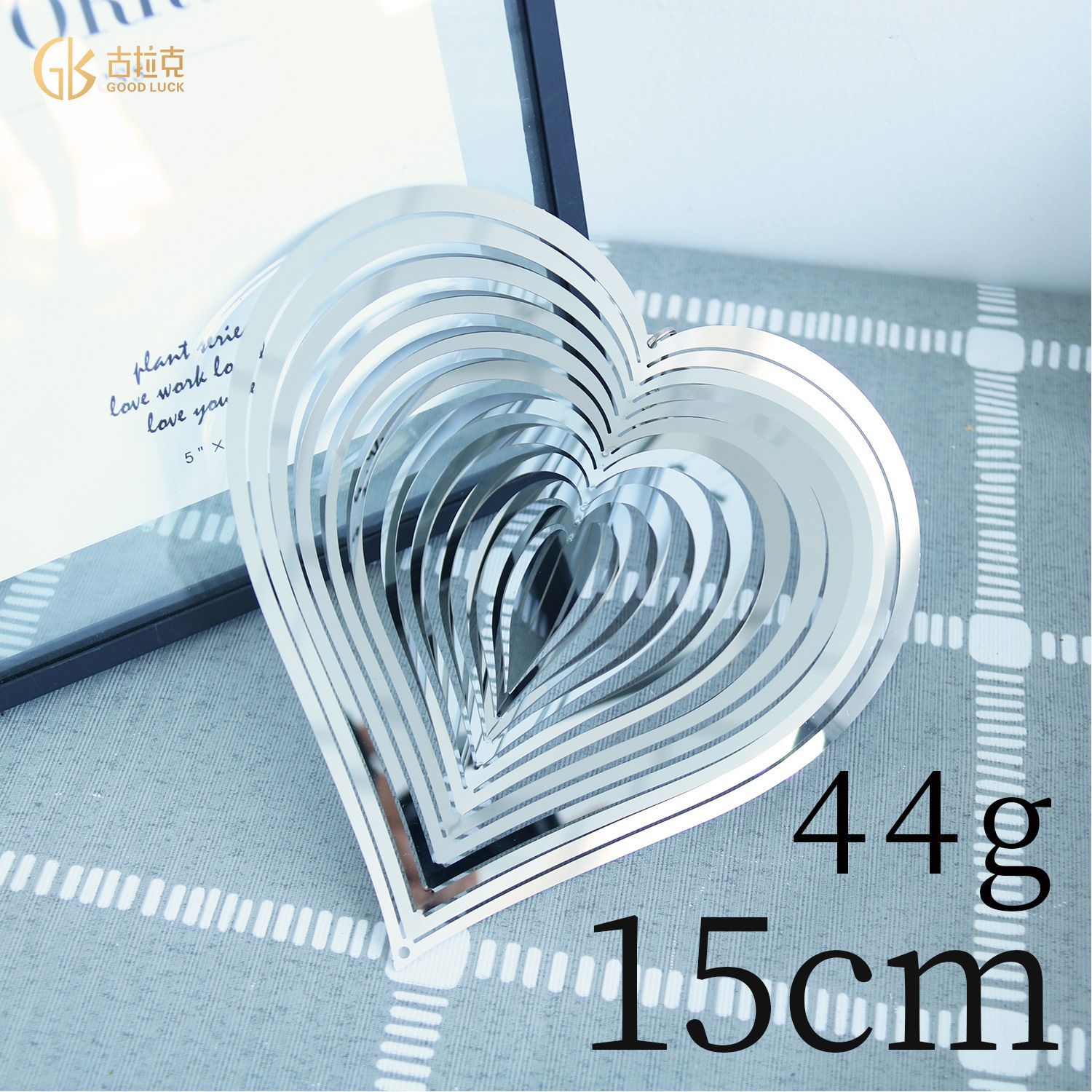 亚马逊3D旋转风铃 金属风转挂饰家居花园装饰不锈钢爱心风铃挂件
