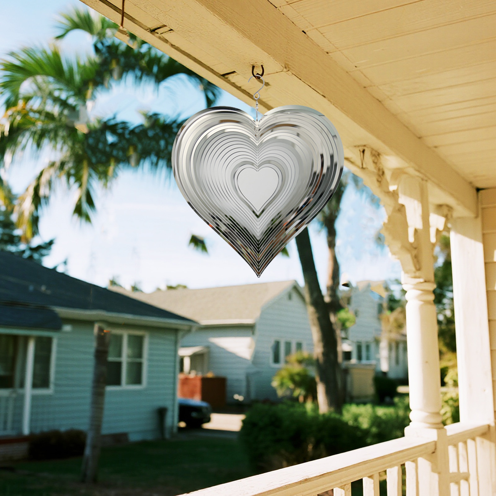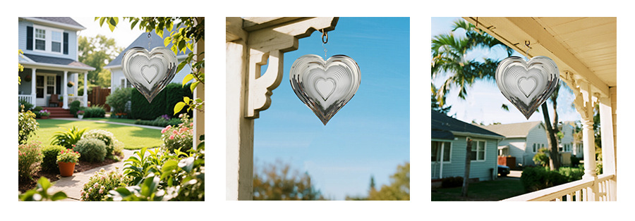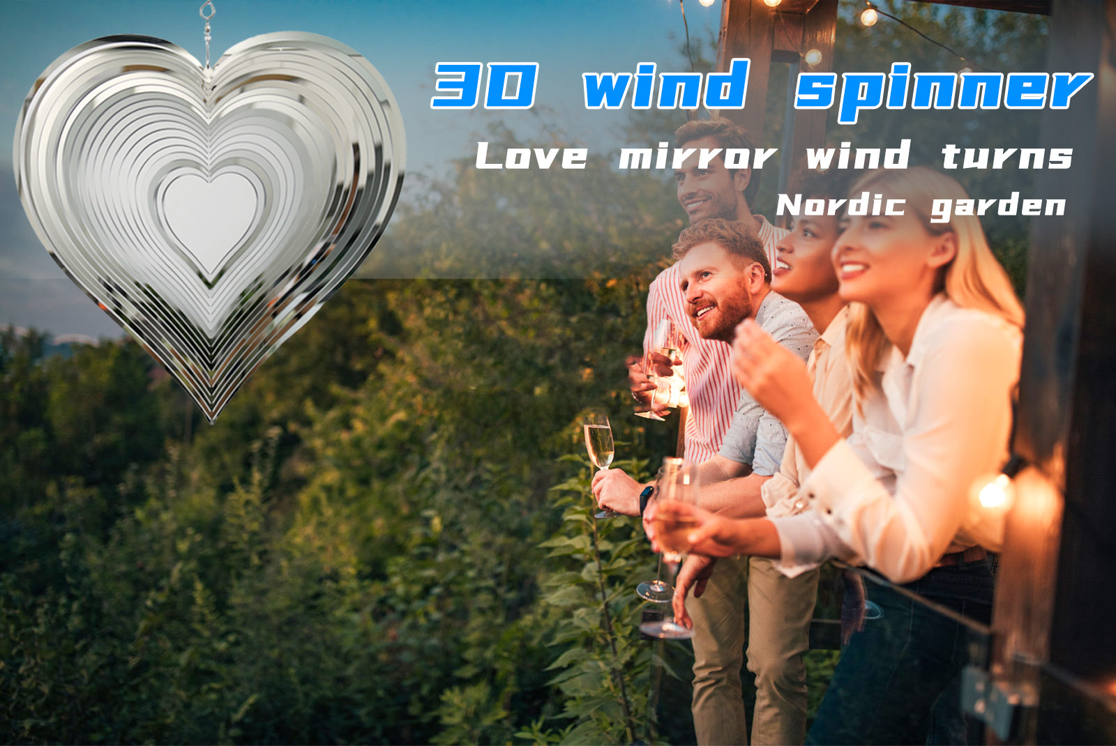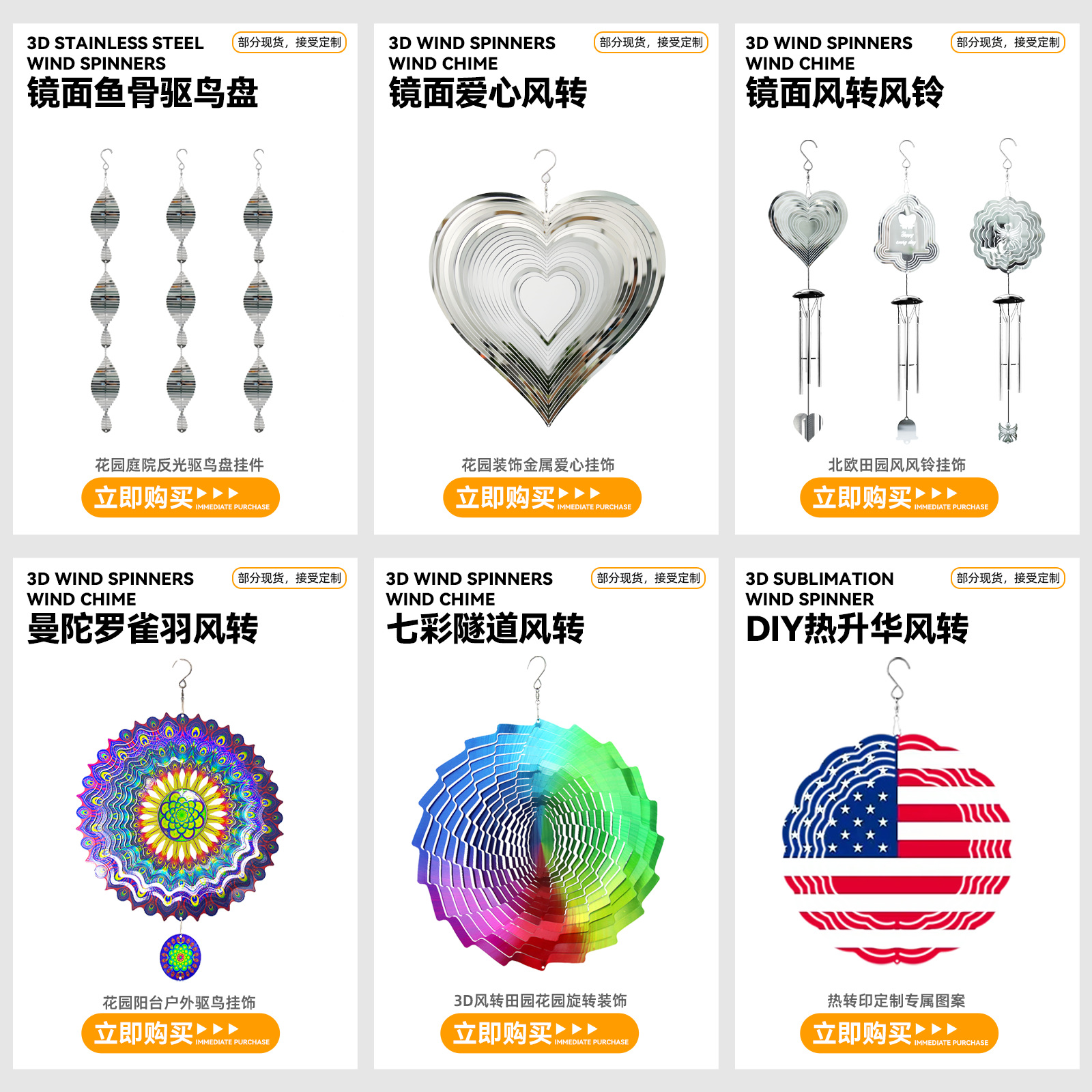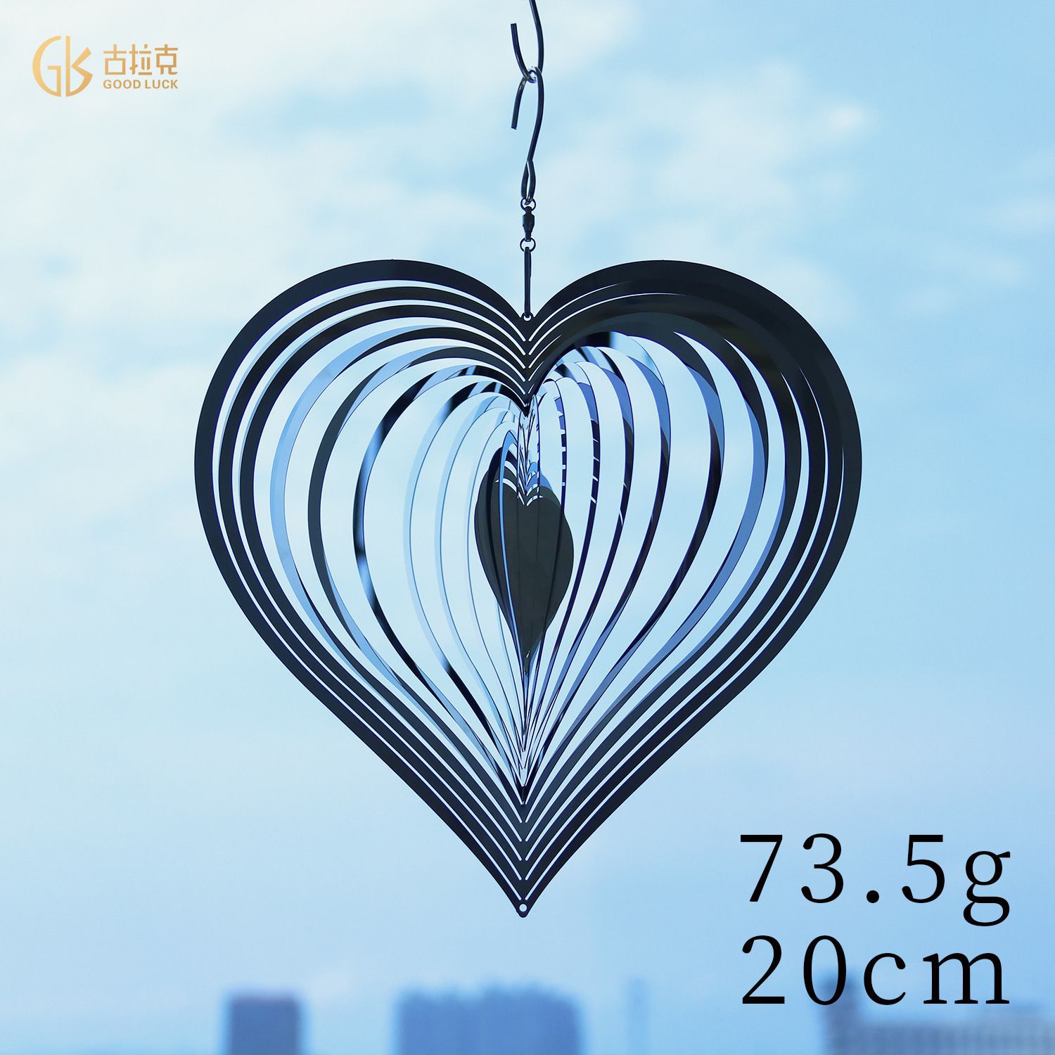 亚马逊3D旋转风铃 金属风转挂饰家居花园装饰不锈钢爱心风铃挂件