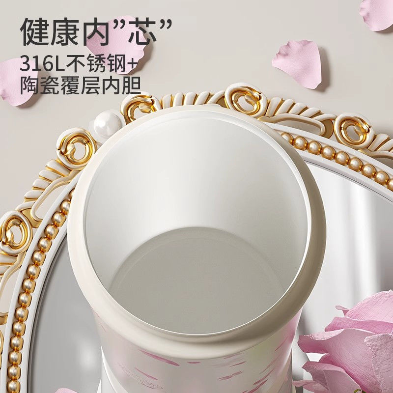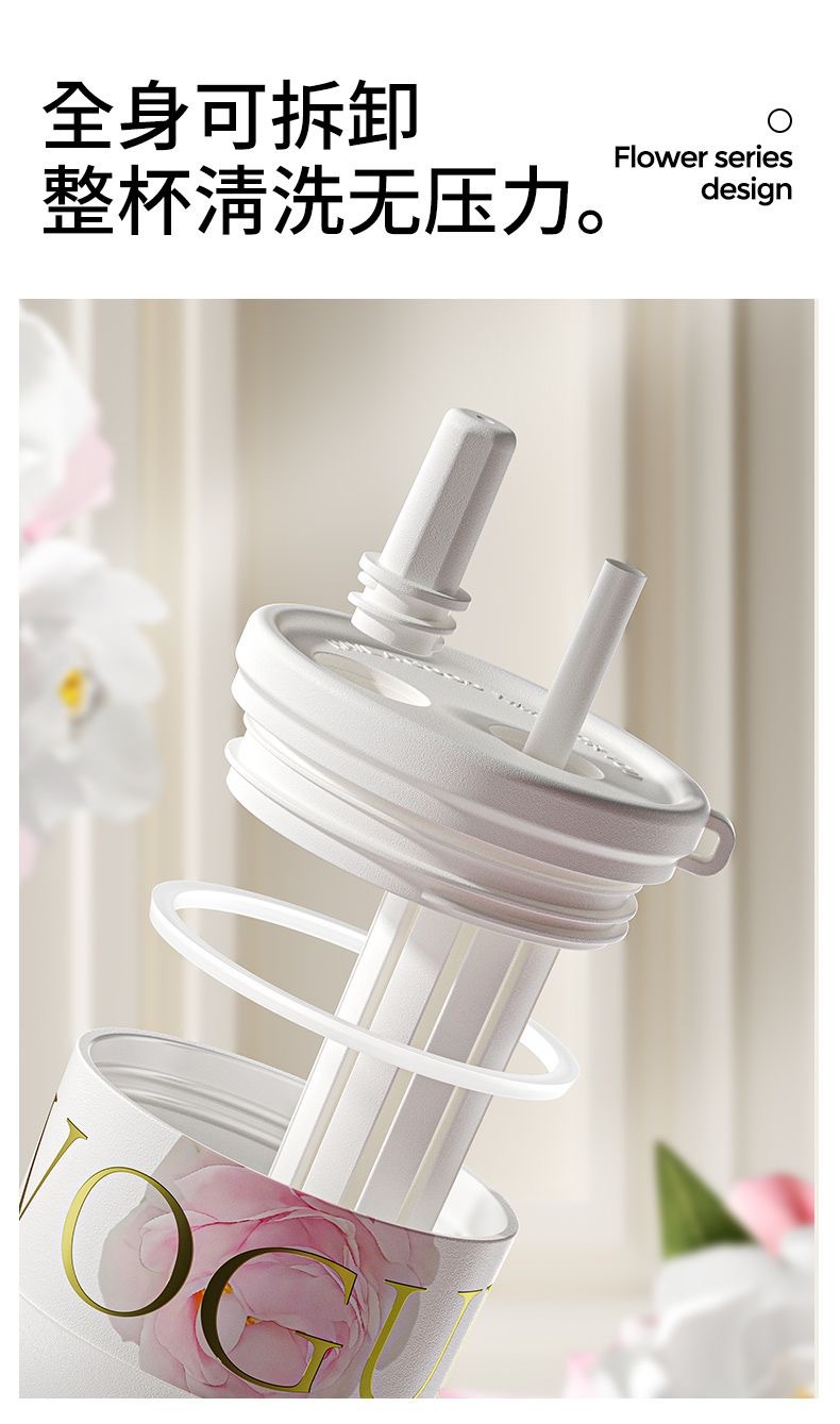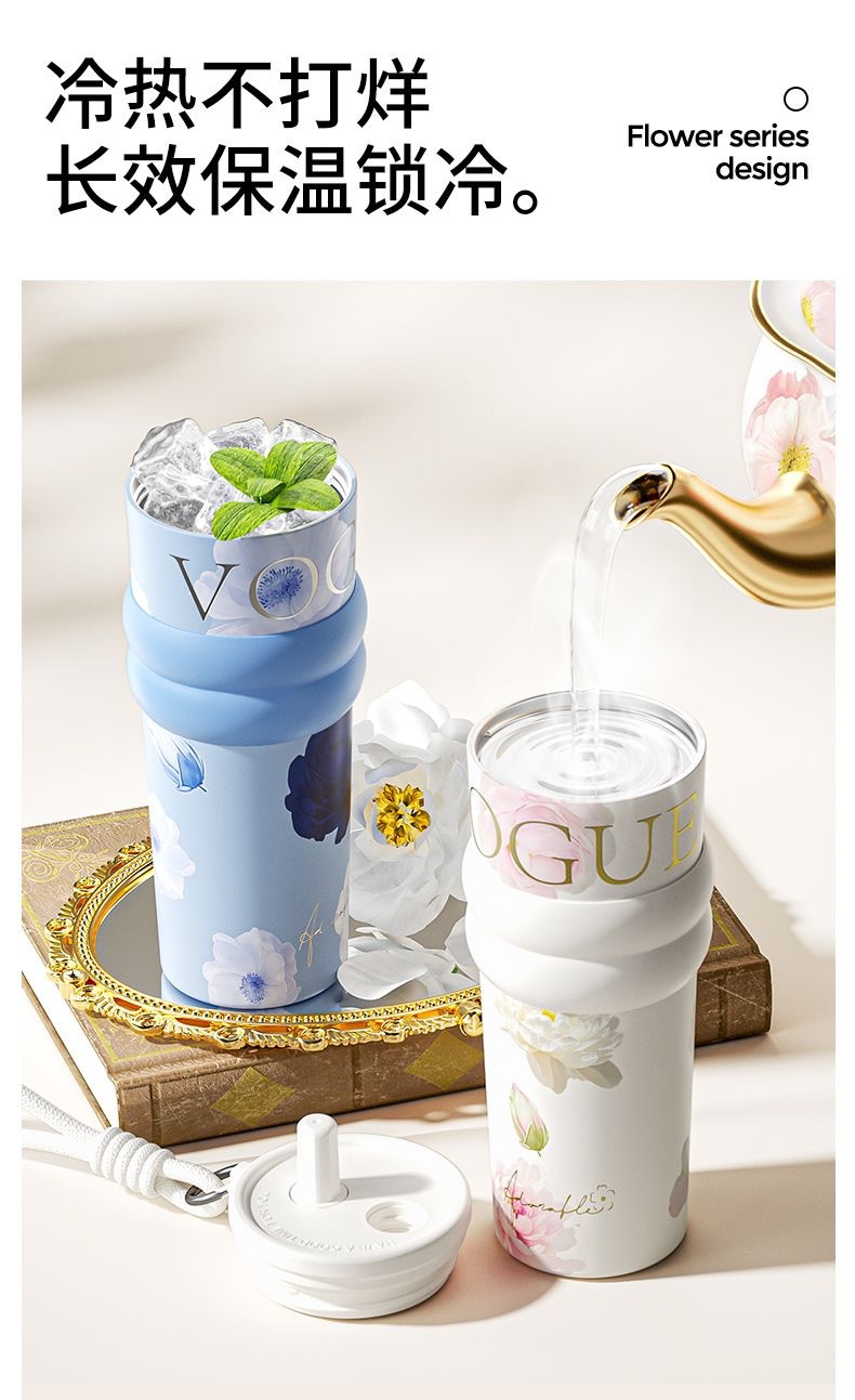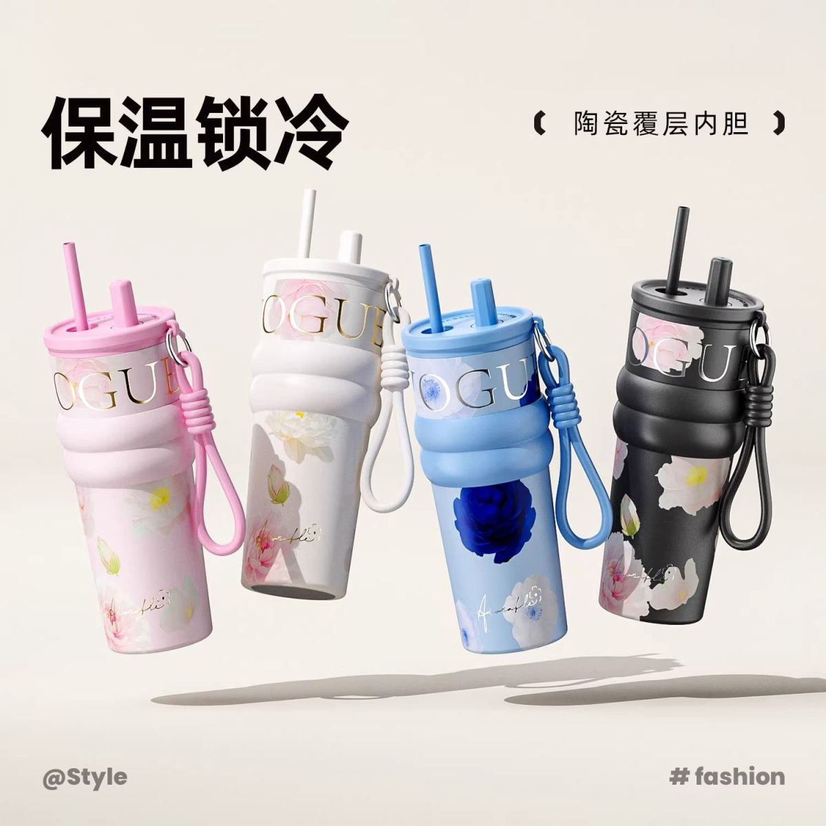 新款繁花极光保温杯陶瓷覆层内胆女高颜值2025大容量新款吸管杯