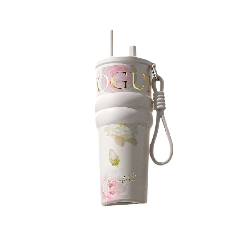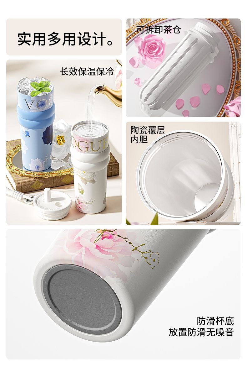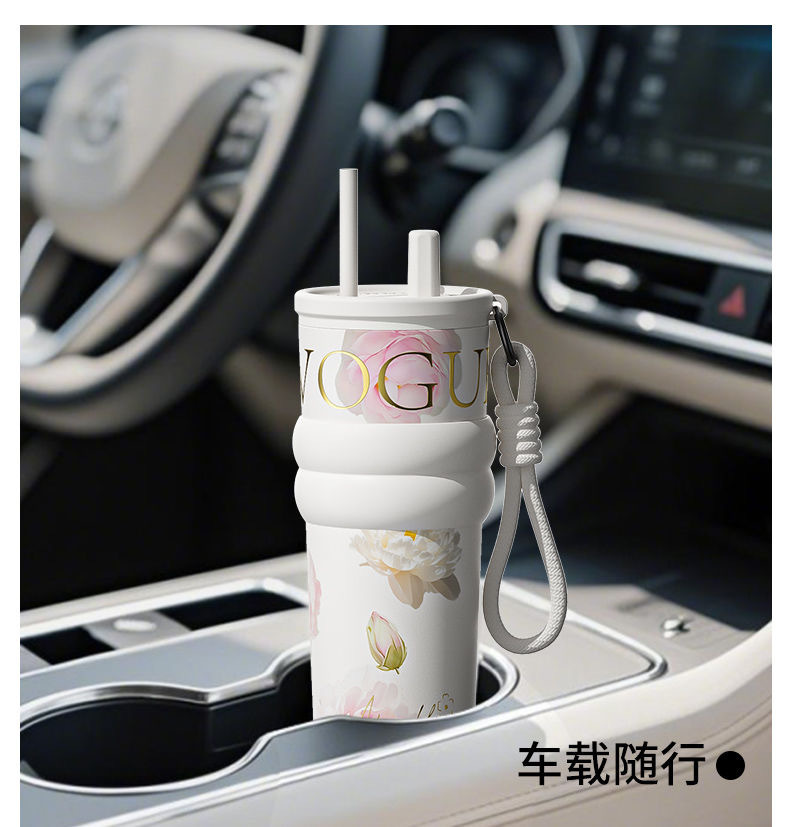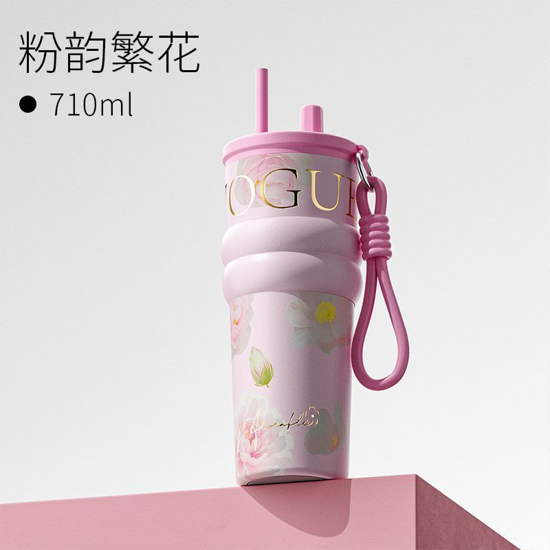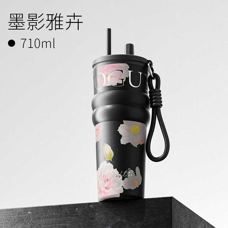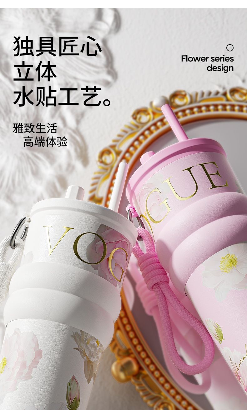 新款繁花极光保温杯陶瓷覆层内胆女高颜值2025大容量新款吸管杯