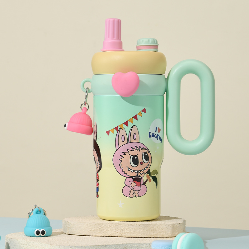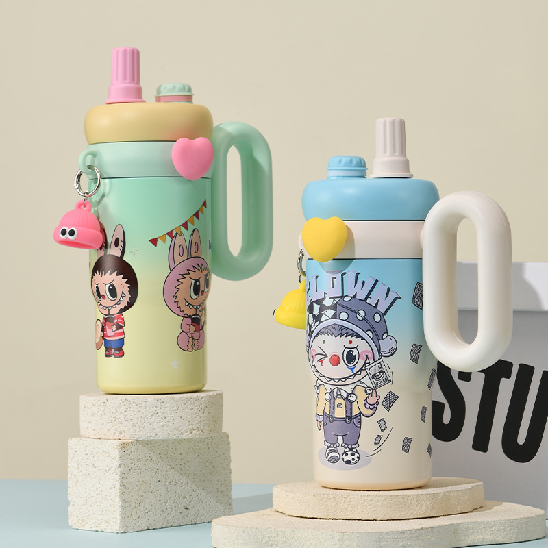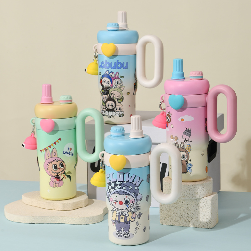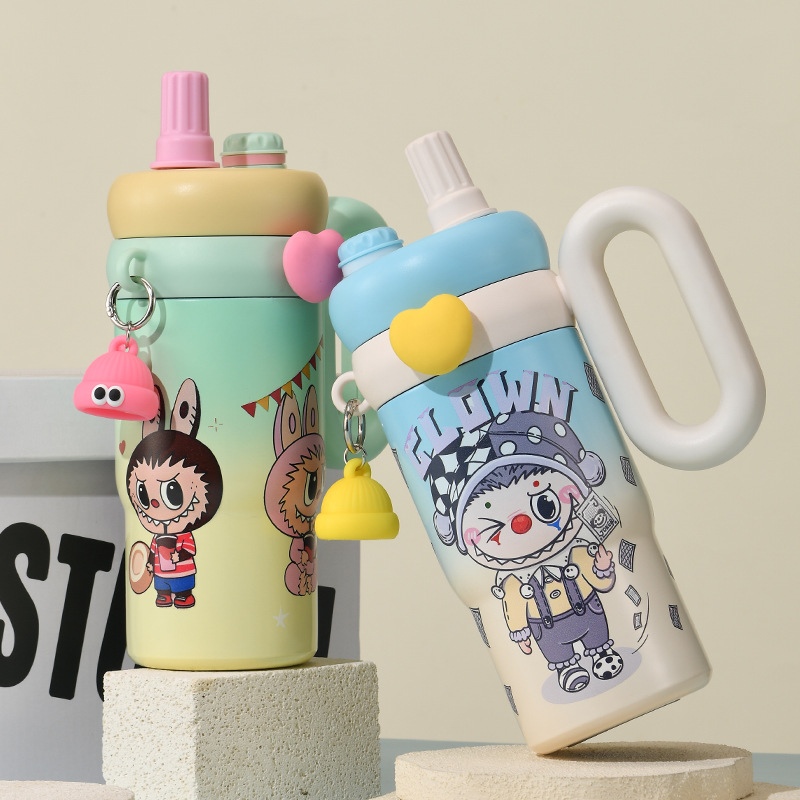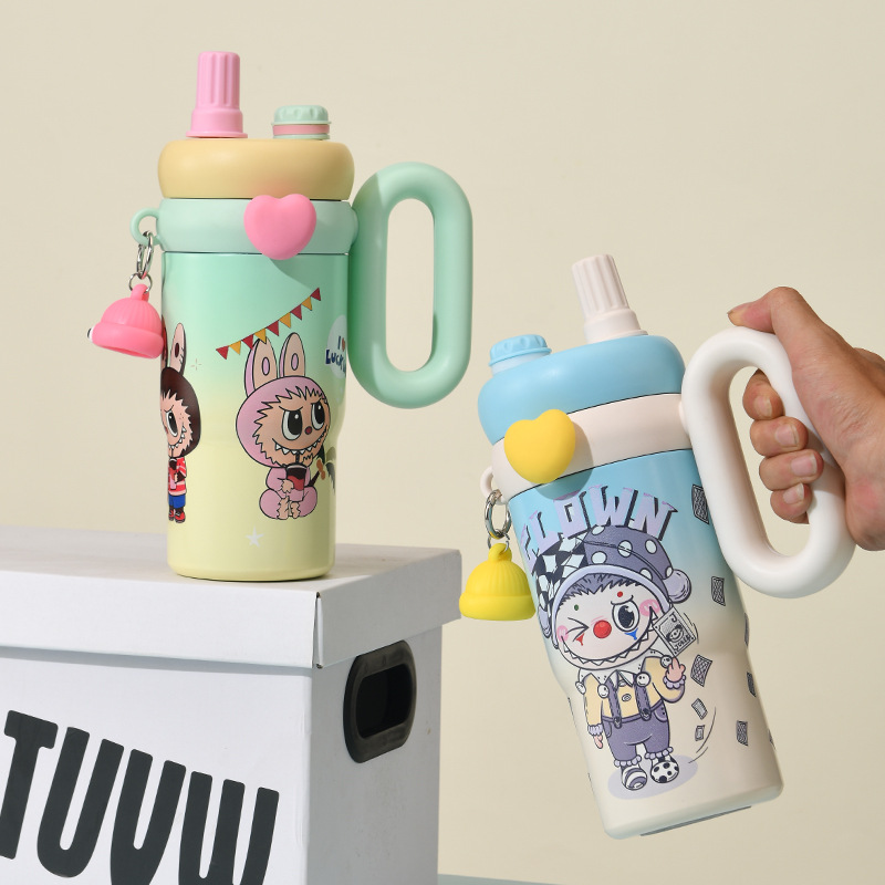 卡通公仔大容量水杯超萌可爱带手柄吸管杯高颜值316不锈钢保温杯