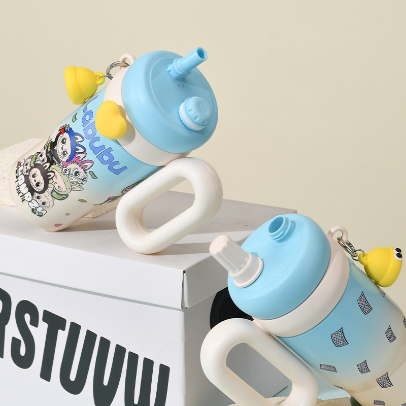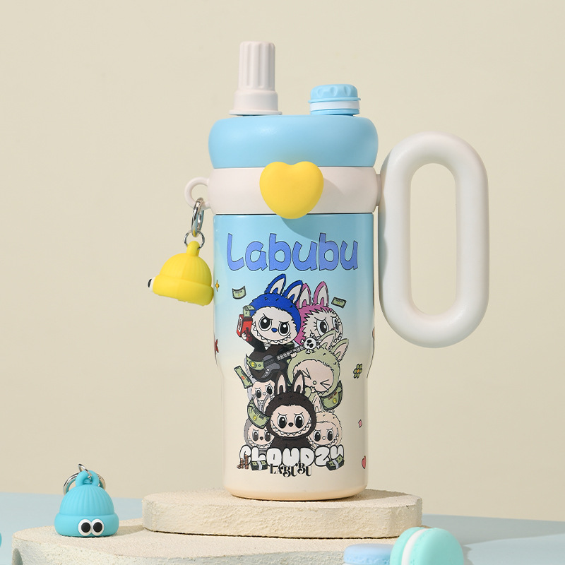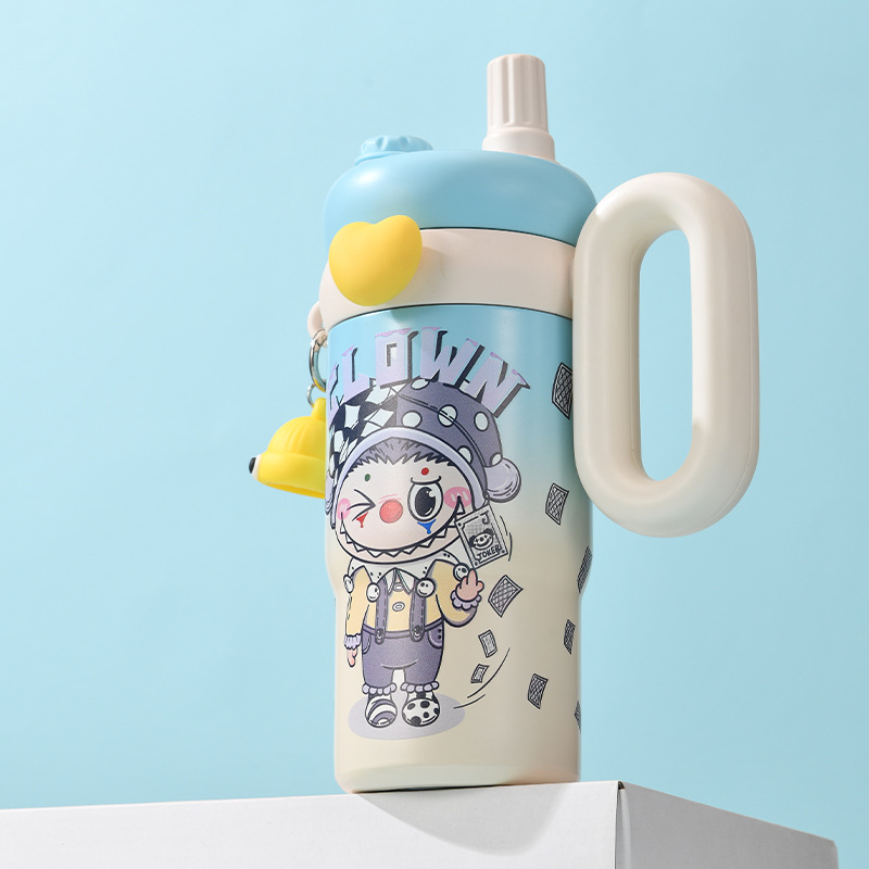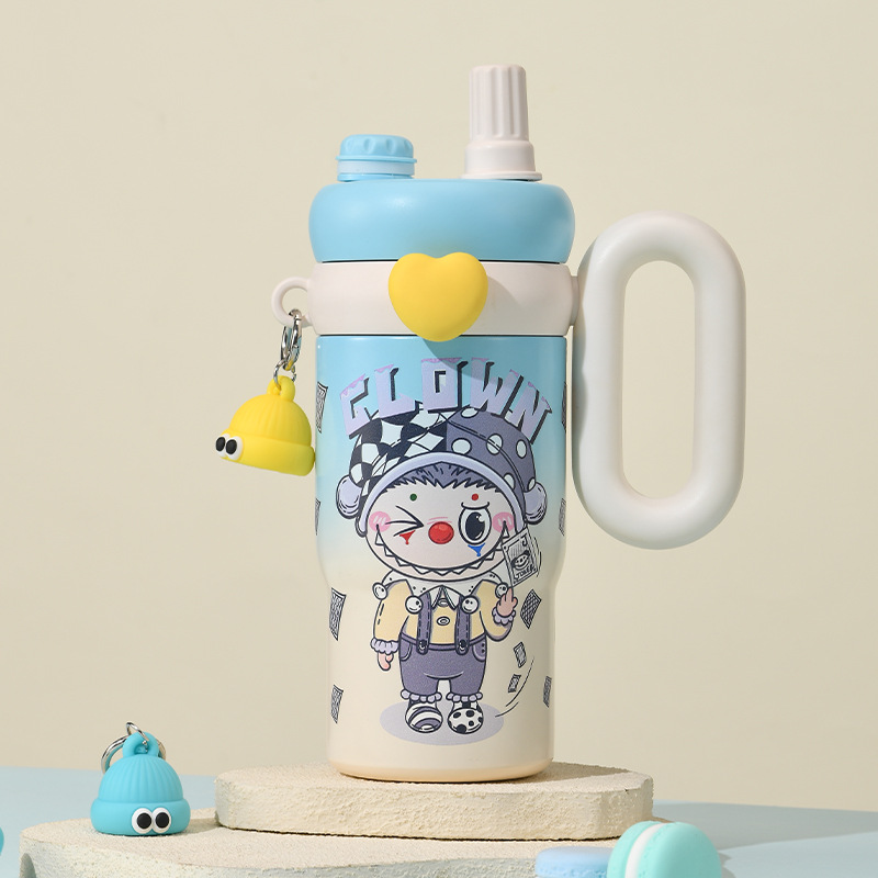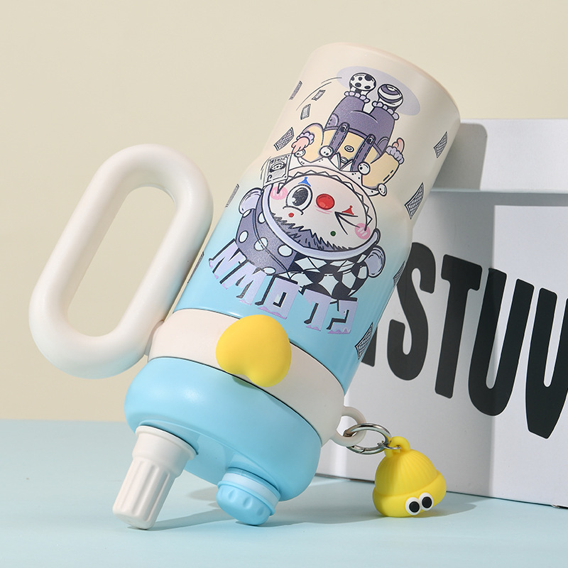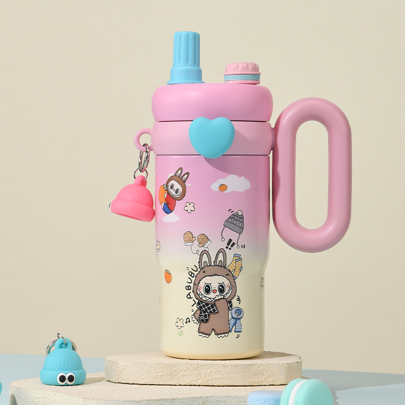 卡通公仔大容量水杯超萌可爱带手柄吸管杯高颜值316不锈钢保温杯