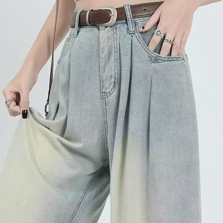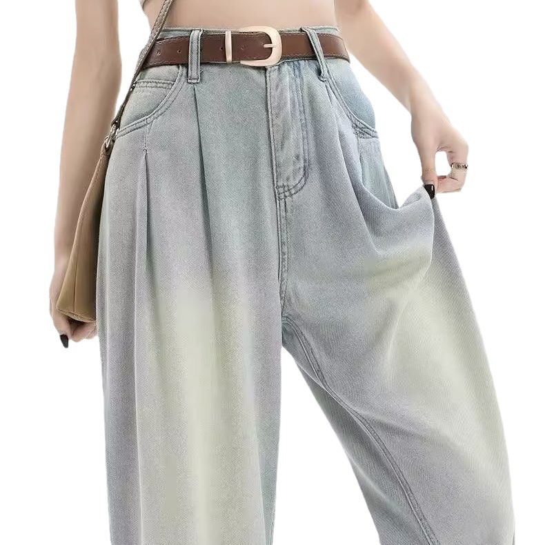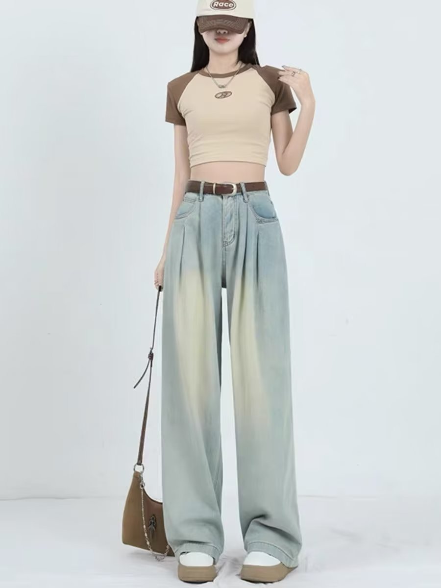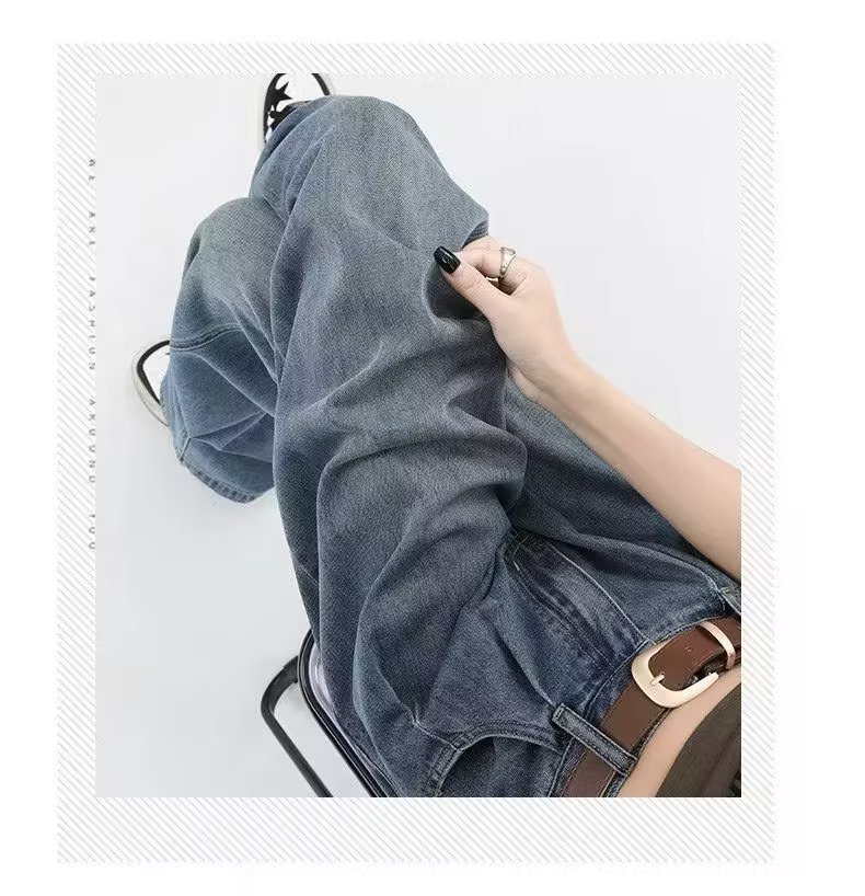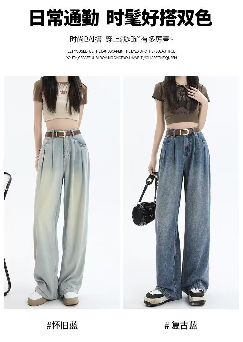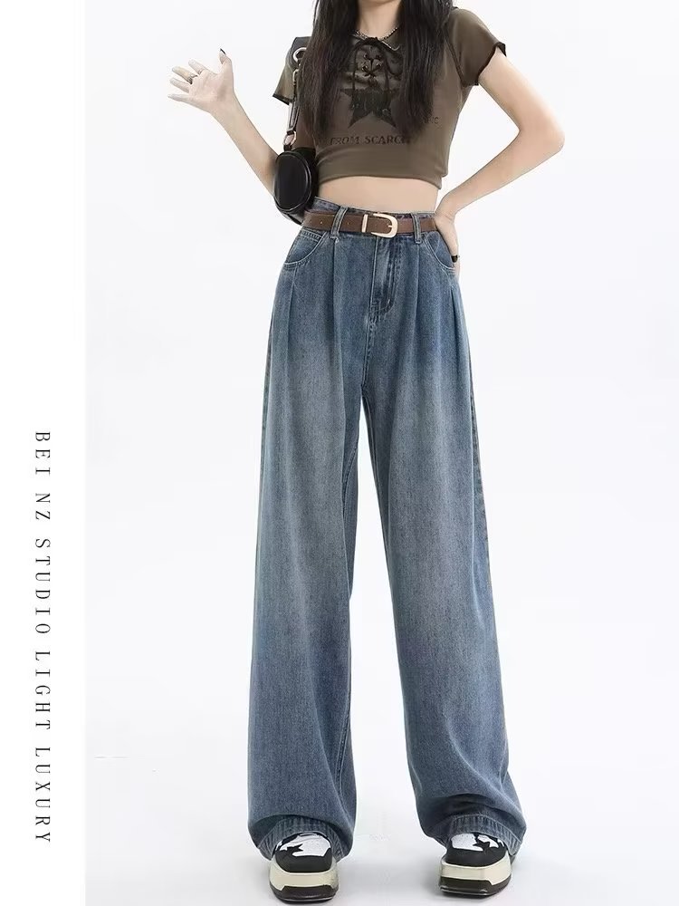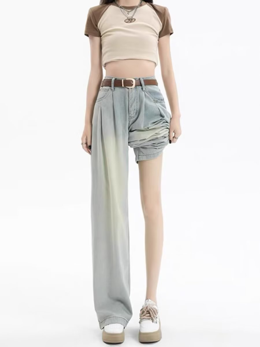 复古阔腿牛仔裤女夏季2025年新款高腰显瘦遮跨设计感梨形身材裤子